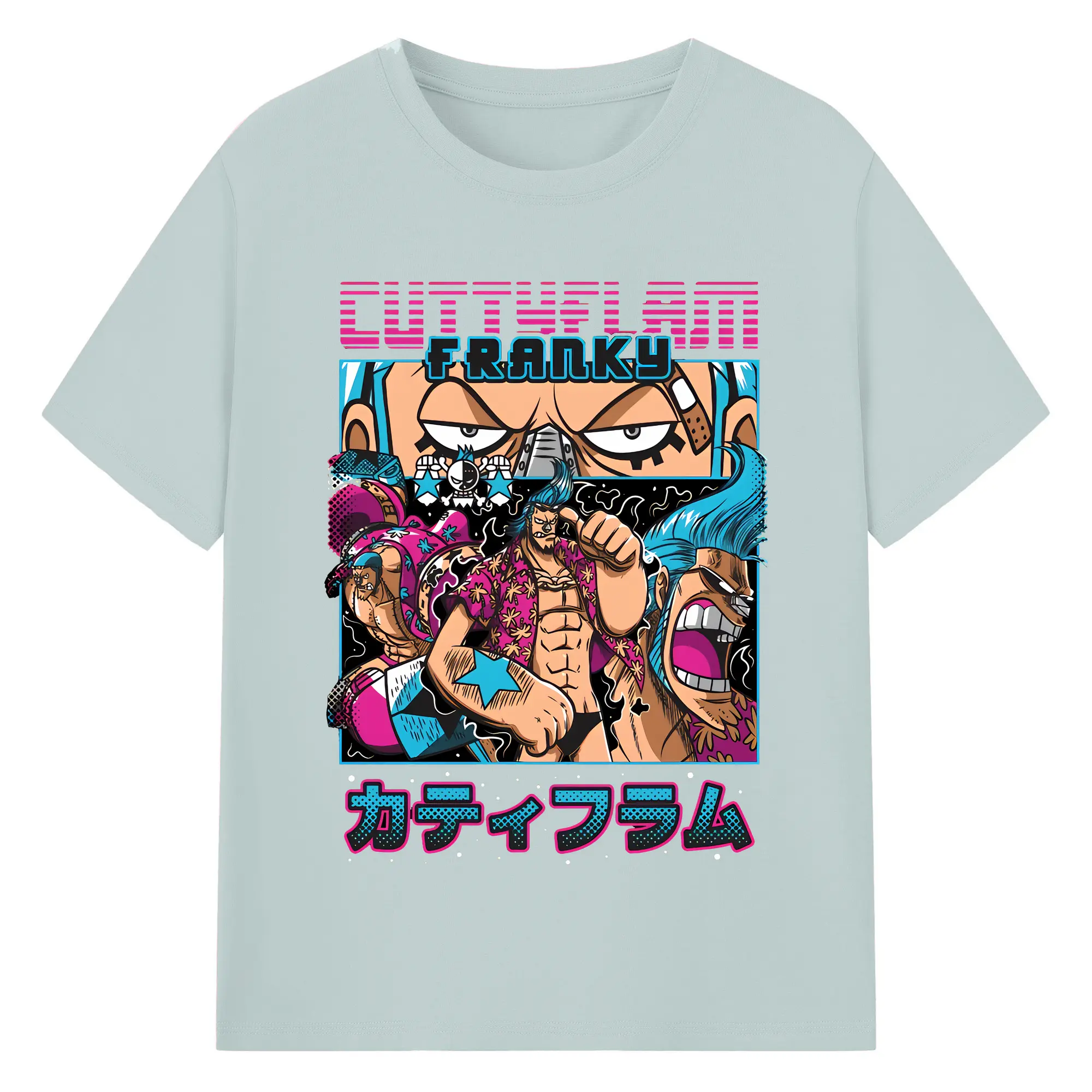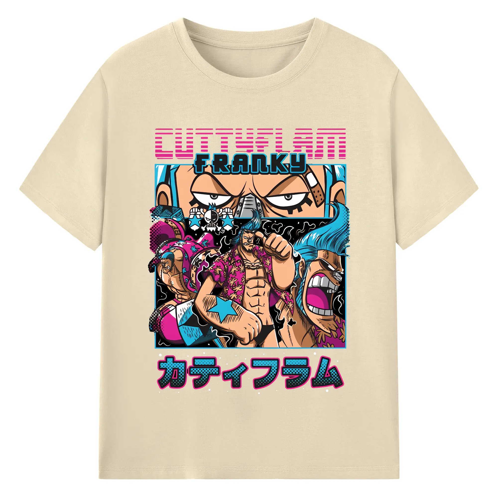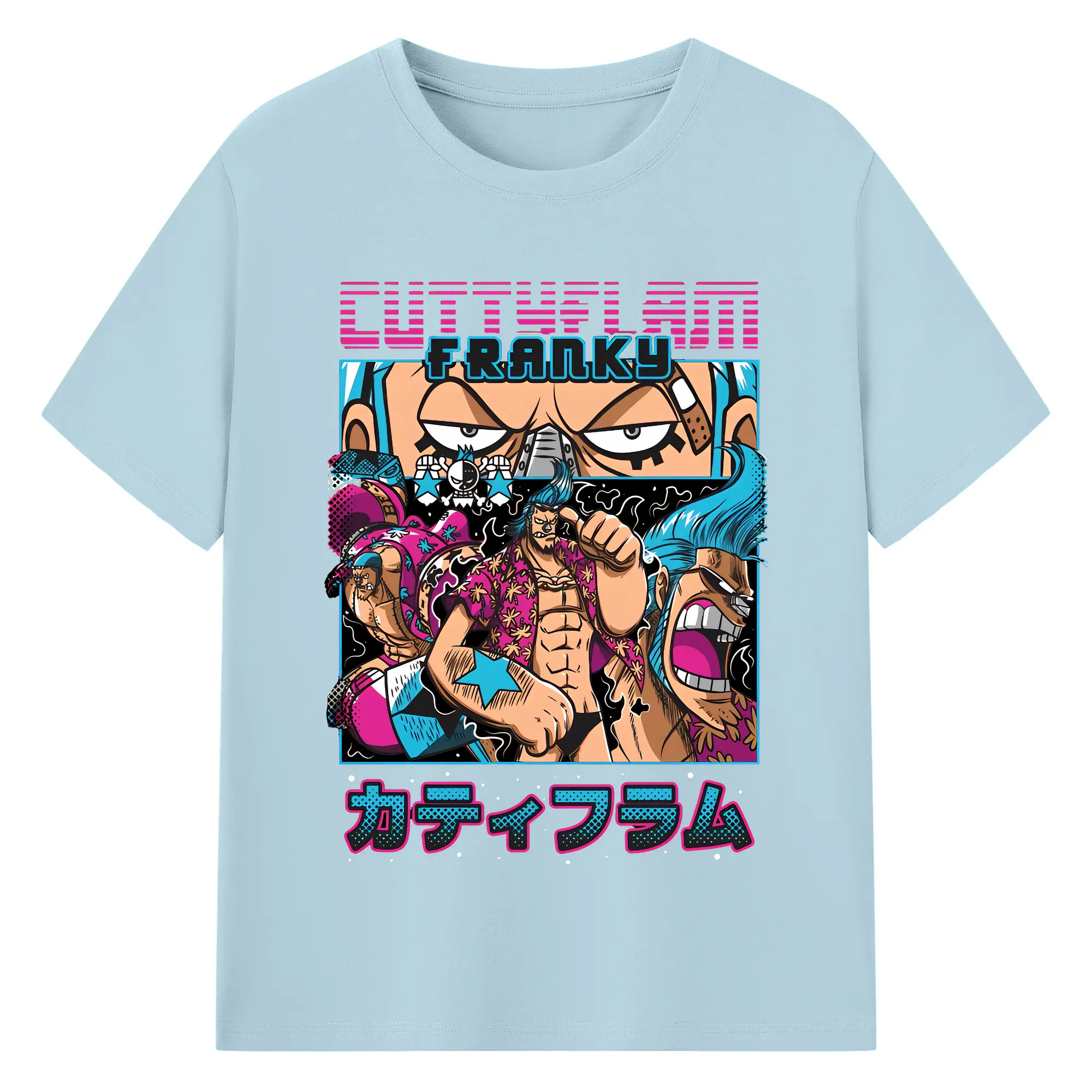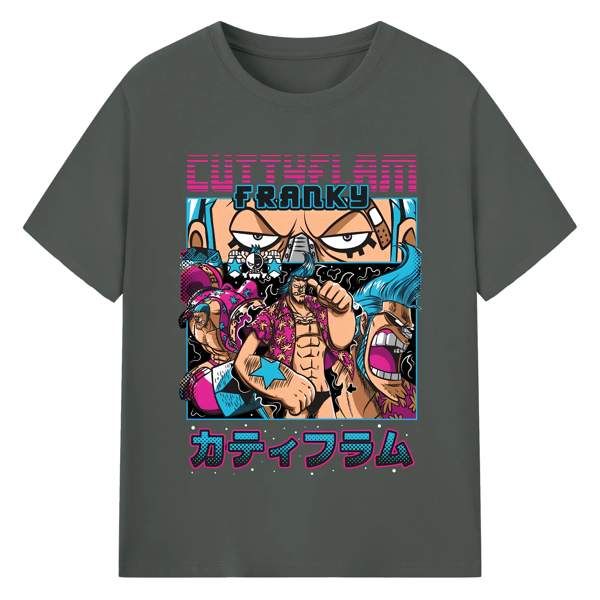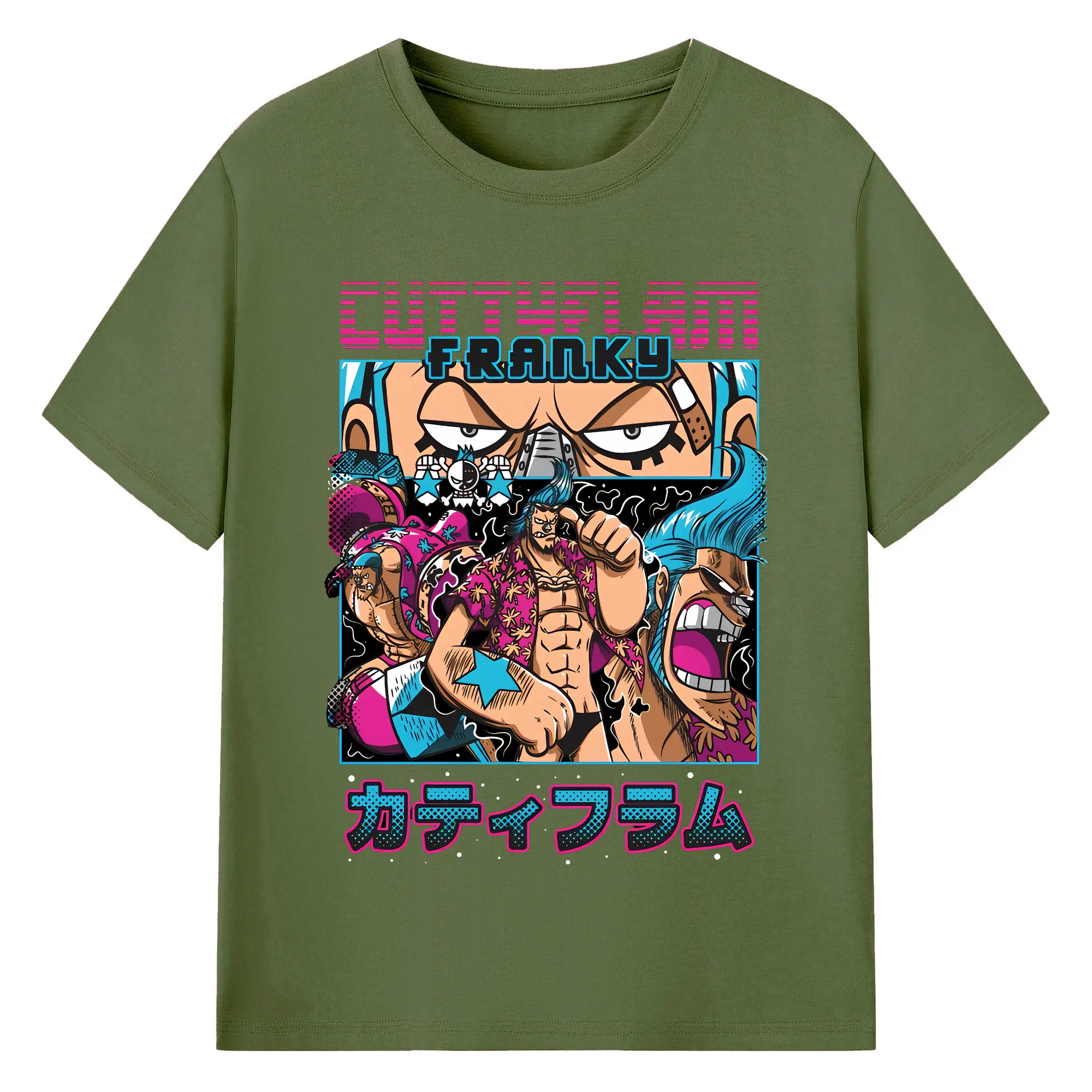 ワンピース グッズ フランキー - 綿100% 半袖Tシャツ ・ バックプリント ・ 快適 通気性 ・ 日常使い 散歩 スポーツ用