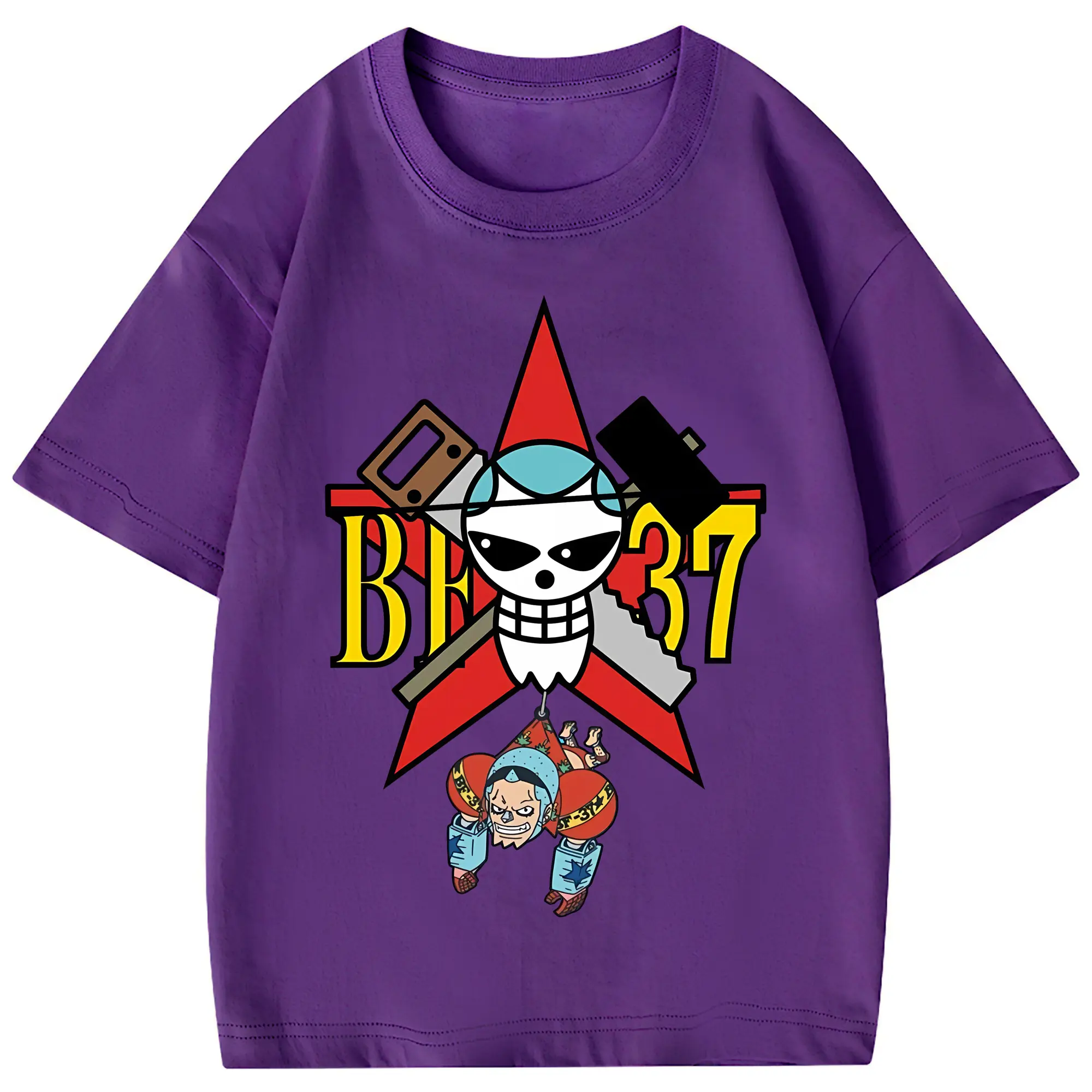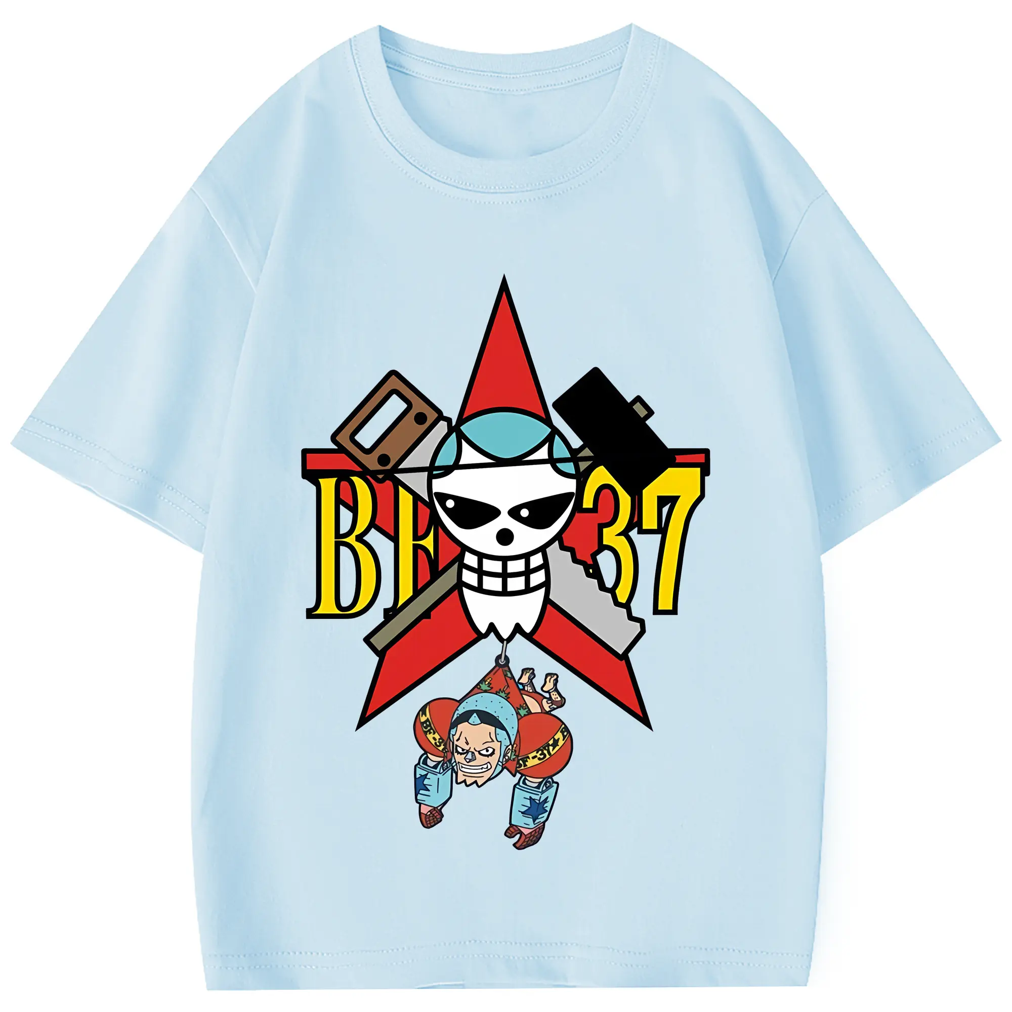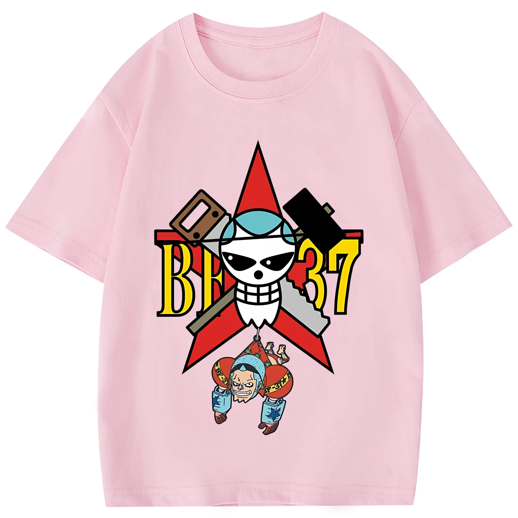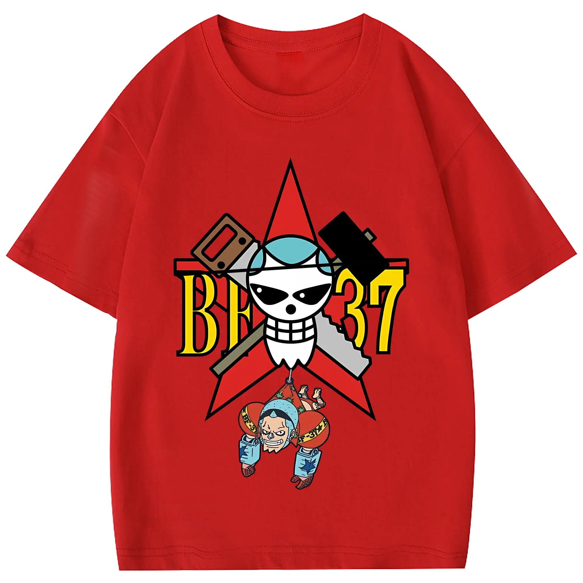 ワンピース グッズ フランキー - 綿100% 半袖Tシャツ ・ フロントプリント ・ 快適 通気性 ・ 日常使い 散歩 スポーツ用