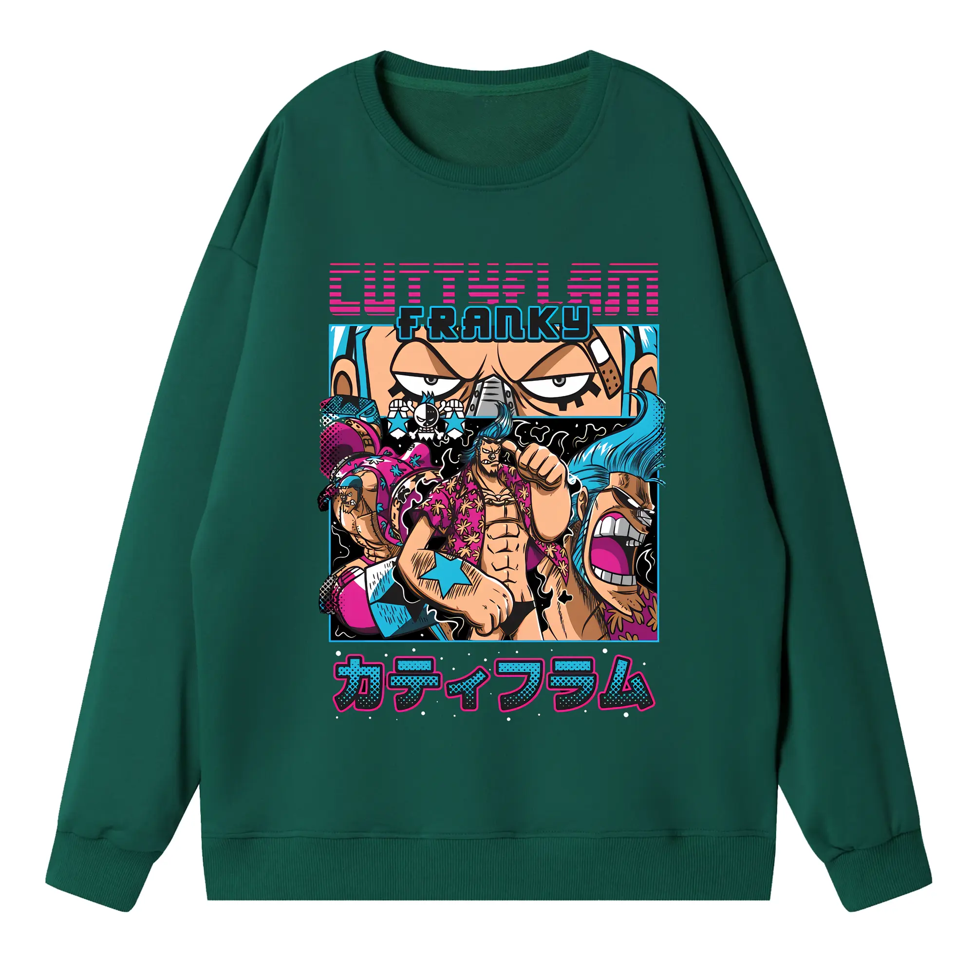 ワンピース グッズ フランキー - 高品質 クルーネック スウェット ・ コットン59% ポリエステル41% ・ ユニセックス 長袖 トレーナー ・ カジュアル デイリー スポーツ 散歩用
