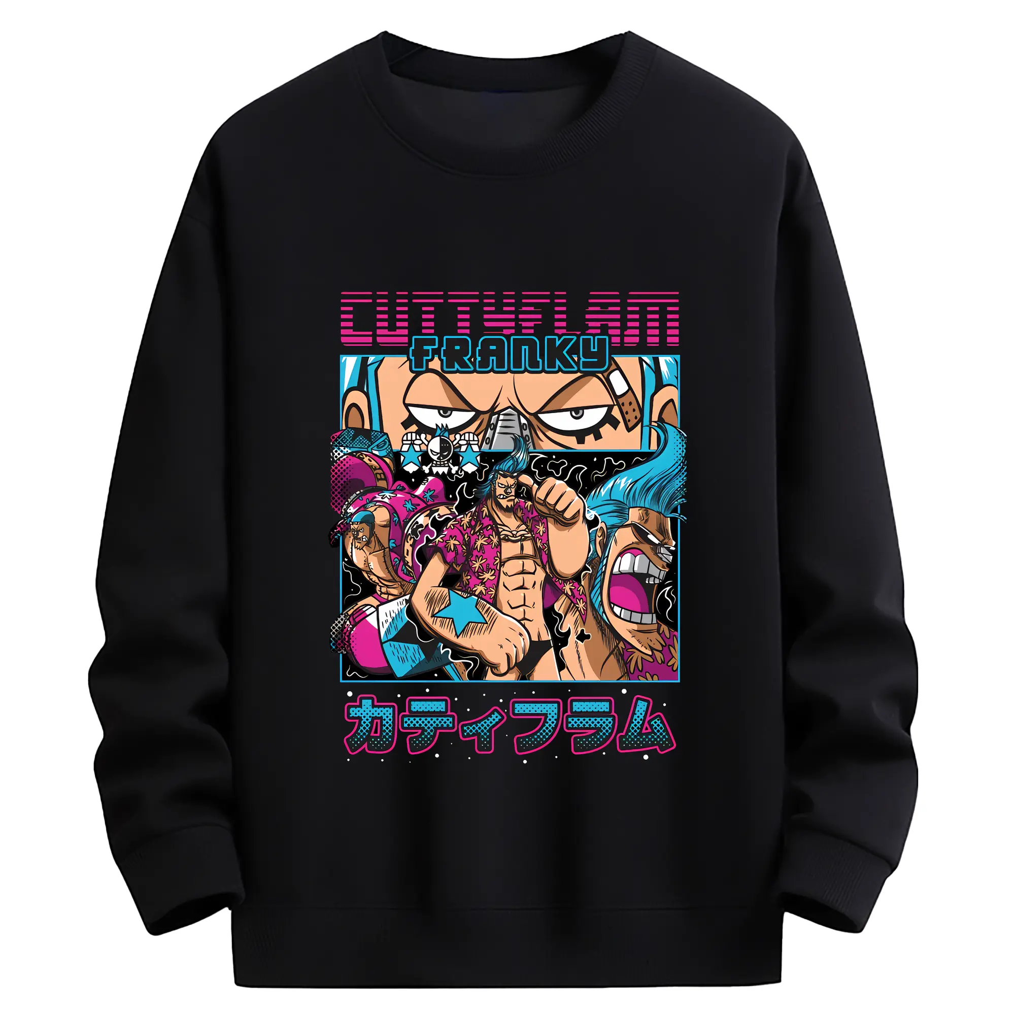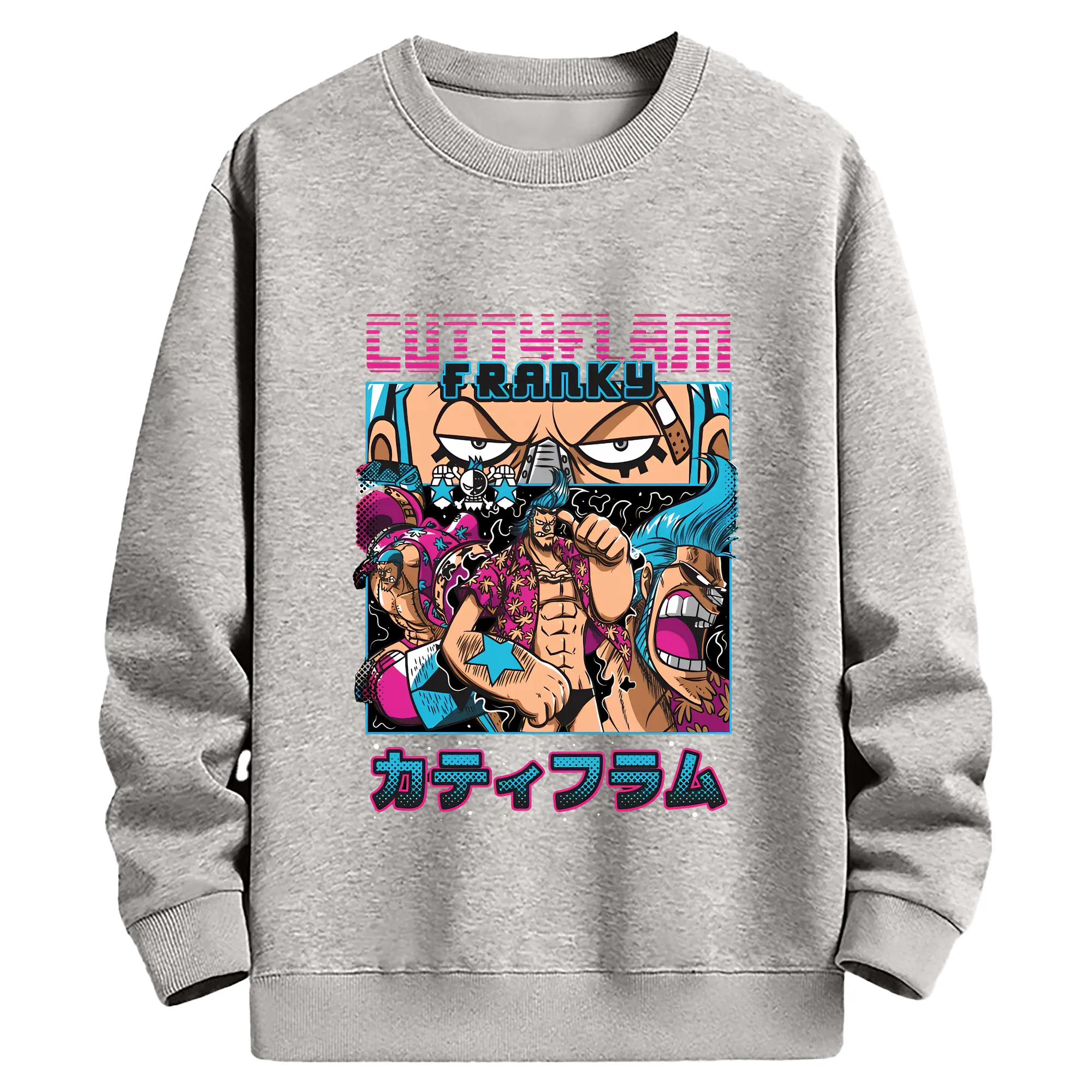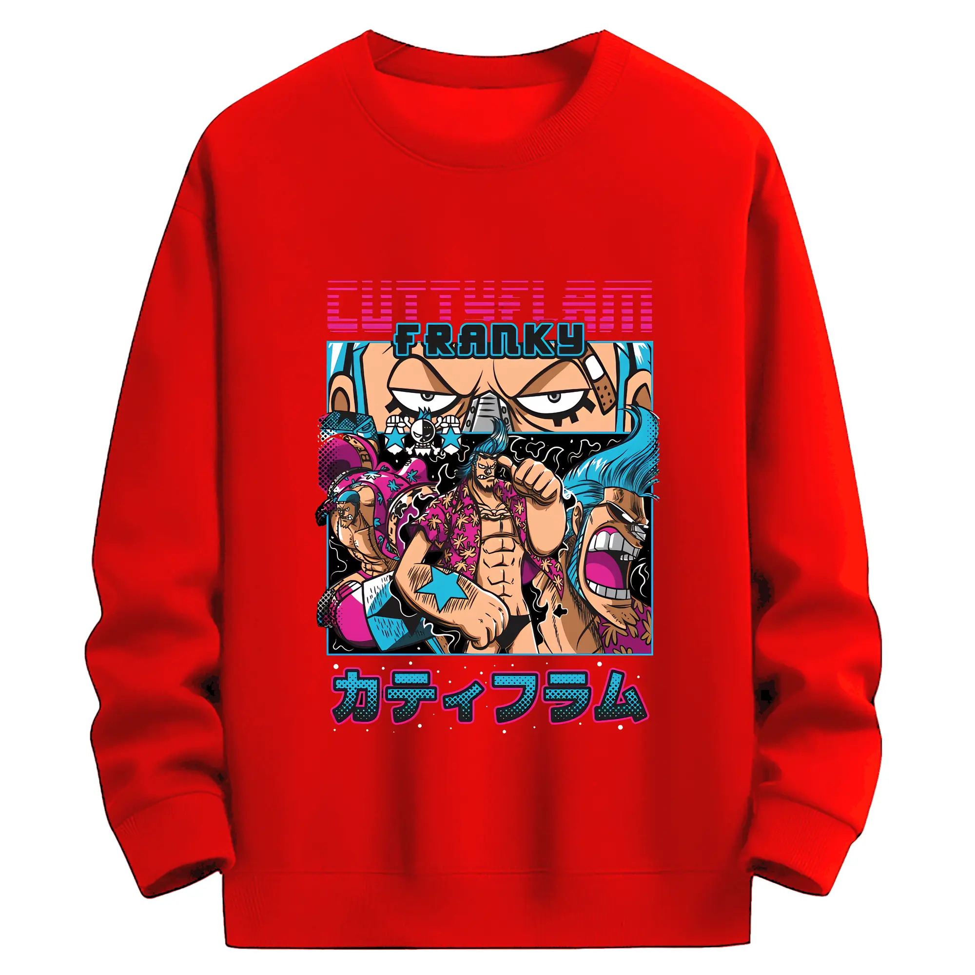 ワンピース グッズ フランキー - 高品質 クルーネック スウェット ・ コットン59% ポリエステル41% ・ ユニセックス 長袖 トレーナー ・ カジュアル デイリー スポーツ 散歩用
