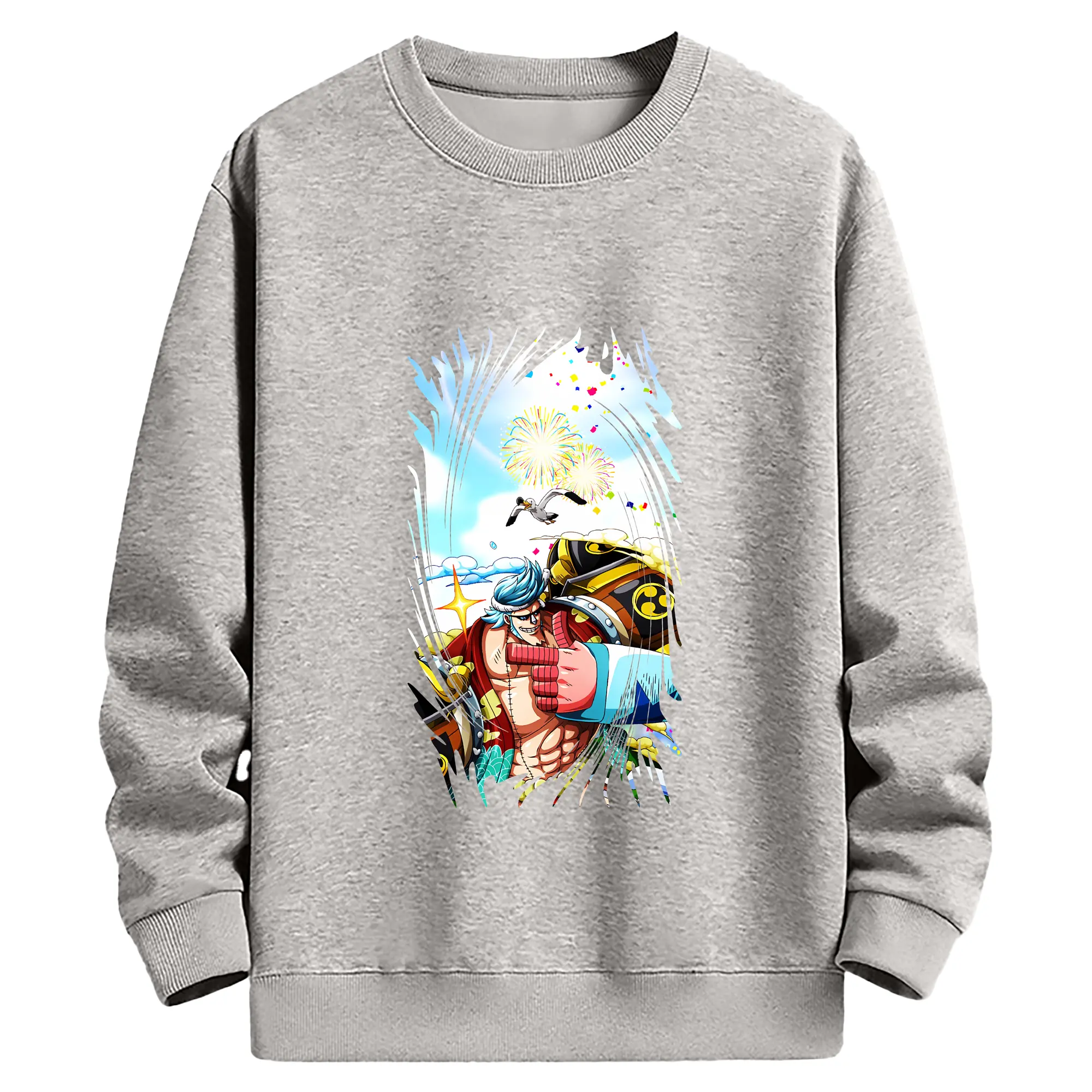 ワンピース グッズ フランキー - 高品質 クルーネック スウェット ・ コットン59% ポリエステル41% ・ ユニセックス 長袖 トレーナー ・ カジュアル デイリー スポーツ 散歩用