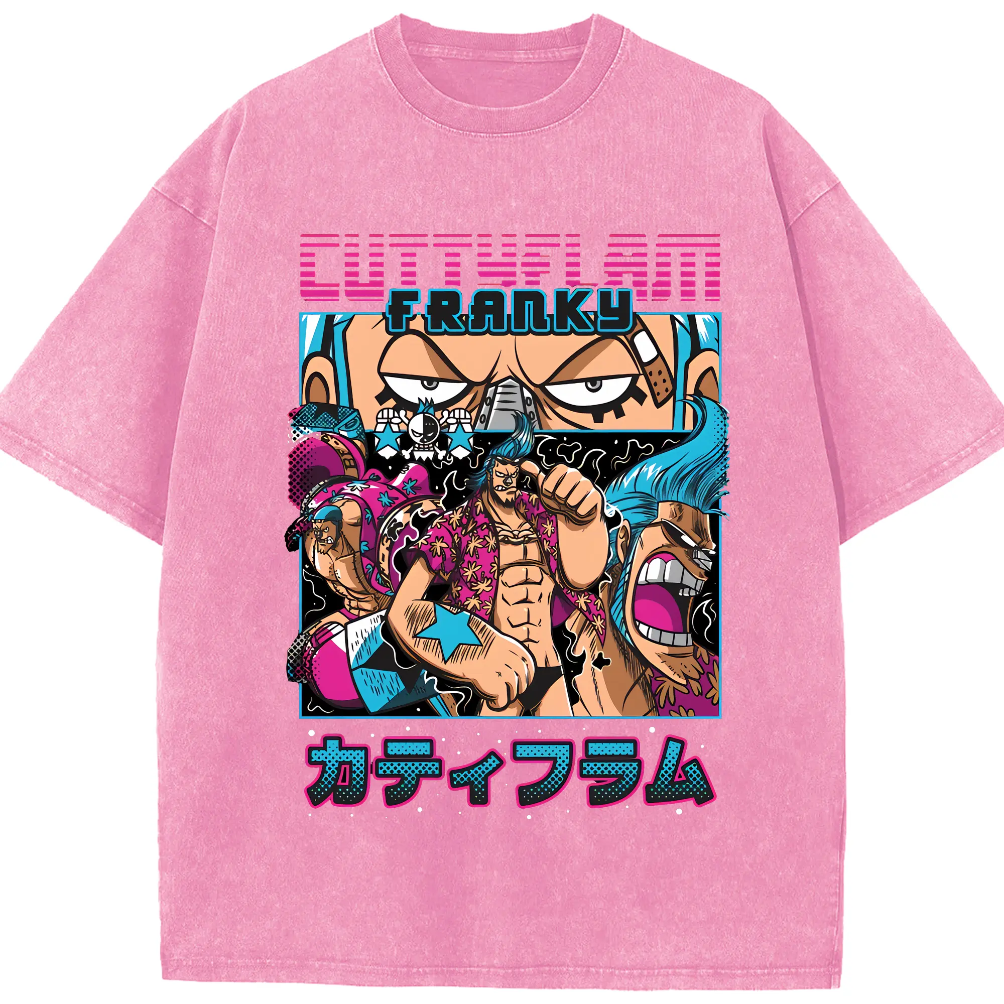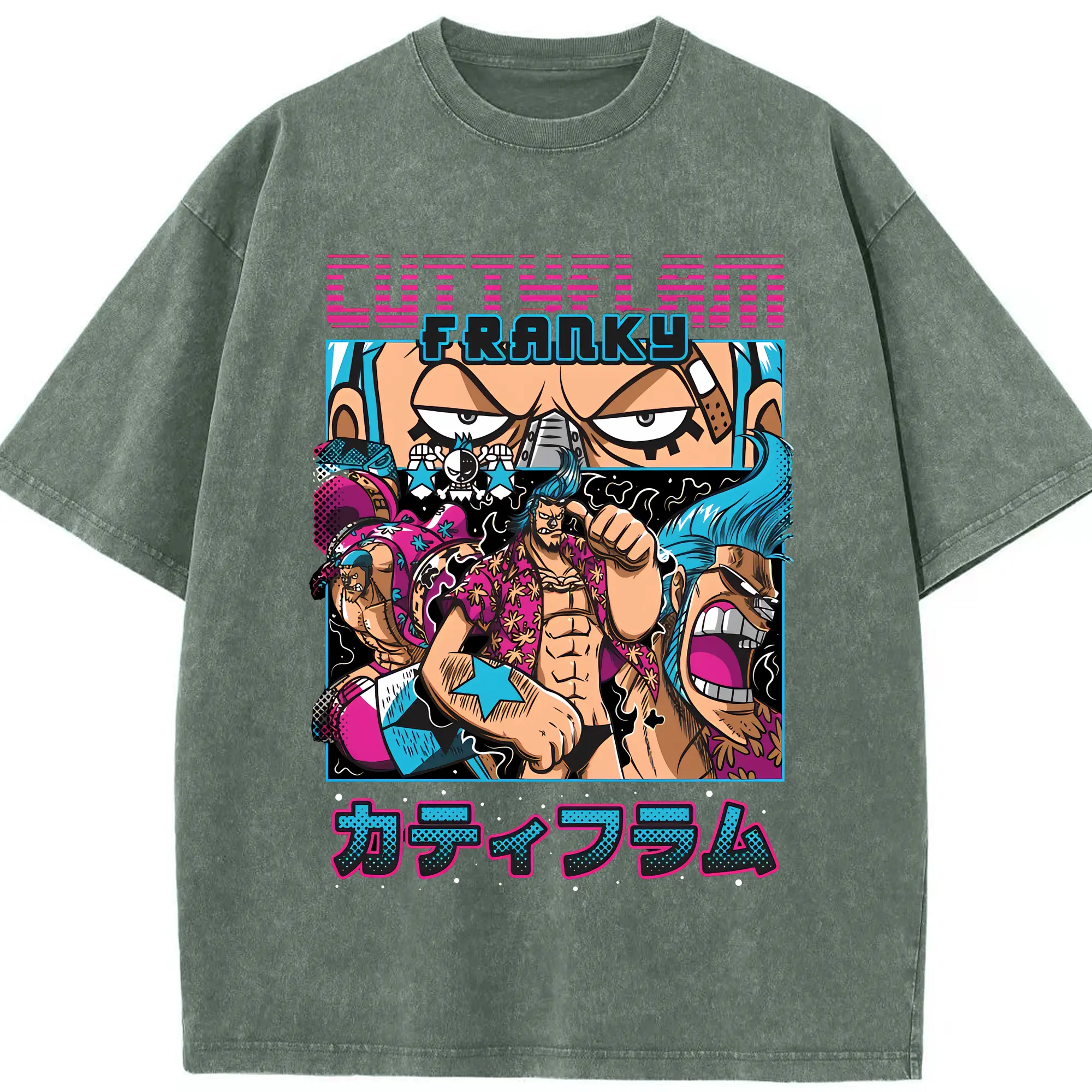 ワンピース グッズ フランキー - 綿100% 半袖Tシャツ ・ フロントプリント ・ 快適 通気性 ・ 日常使い 散歩 スポーツ用