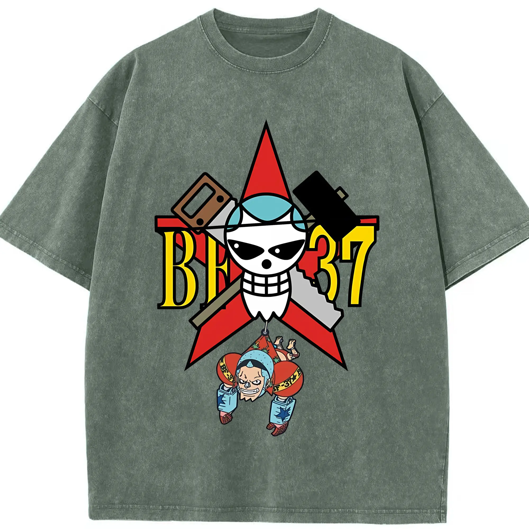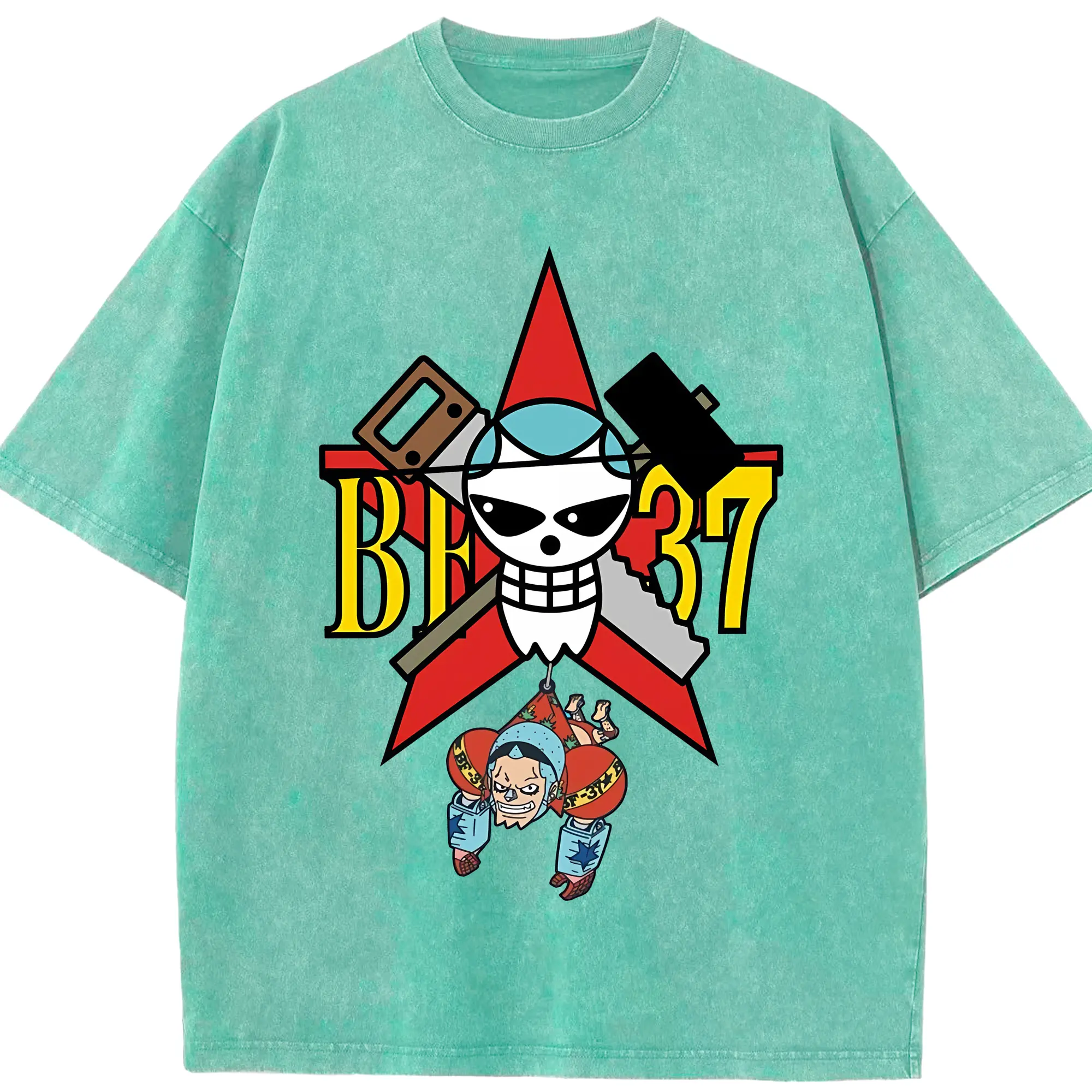 ワンピース グッズ フランキー - 綿100% 半袖Tシャツ ・ フロントプリント ・ 快適 通気性 ・ 日常使い 散歩 スポーツ用