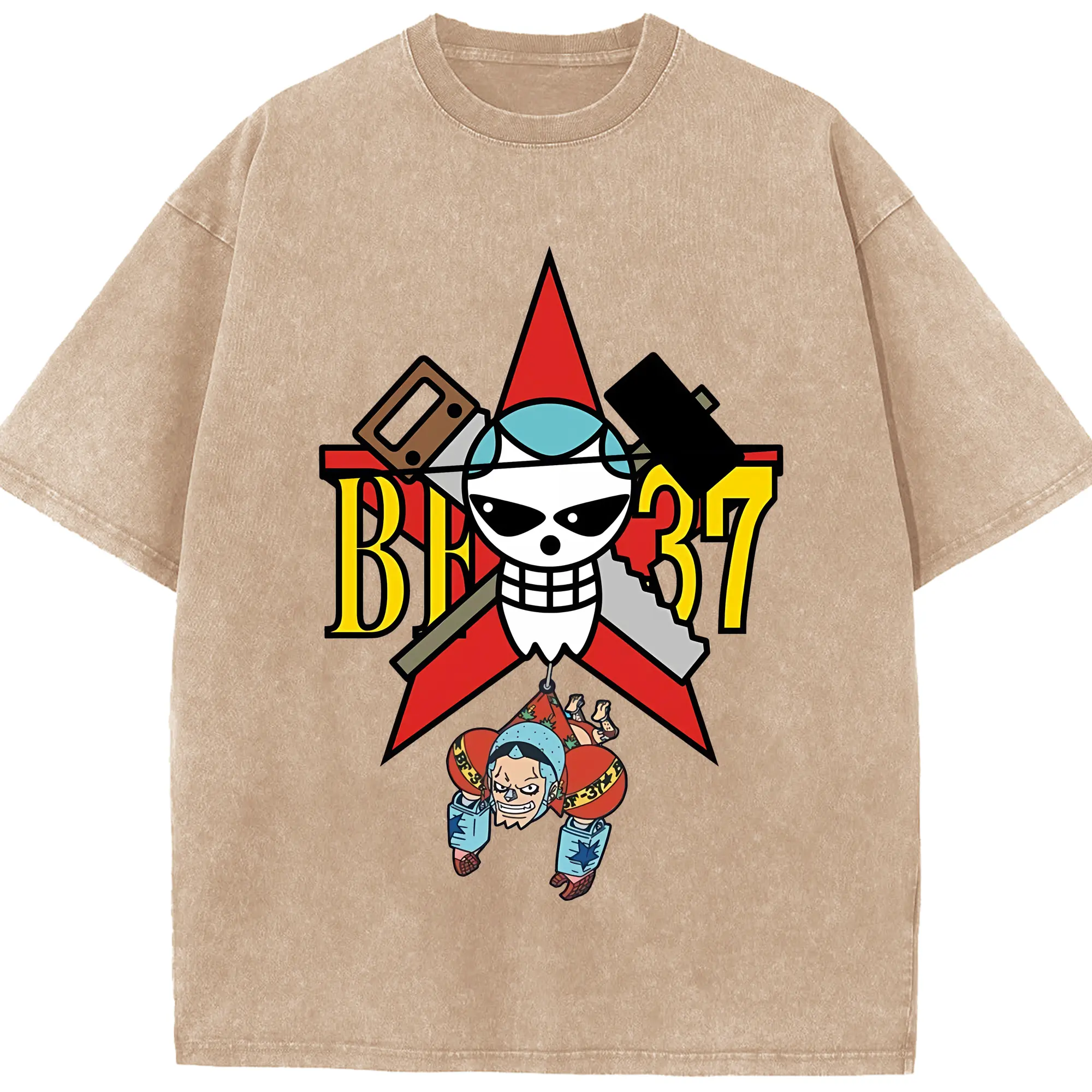 ワンピース グッズ フランキー - 綿100% ヴィンテージ風 半袖Tシャツ ・ 背面プリント ・ 柔らか肌触り ・ 通気性 快適 ・ スポーツ カジュアル 外出用