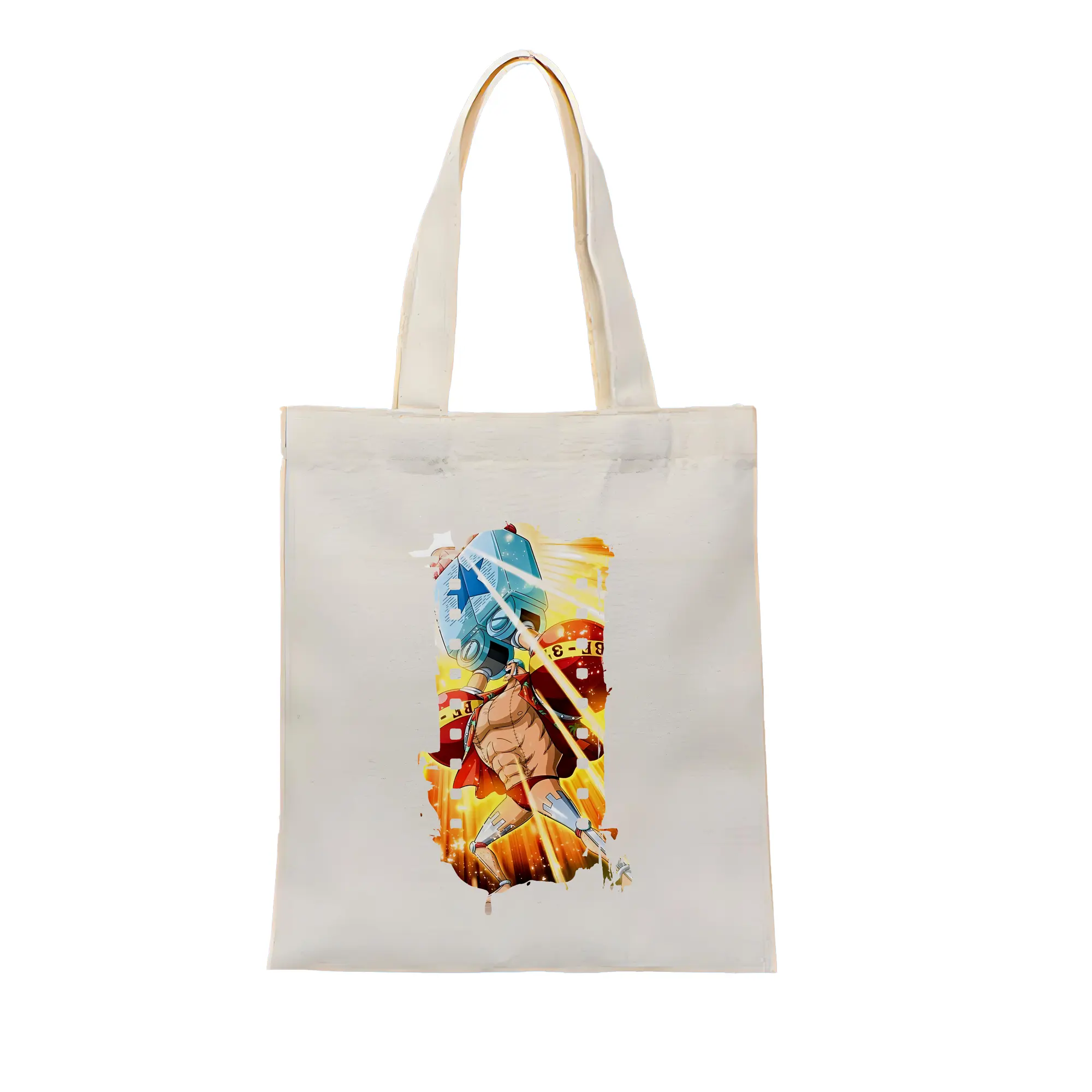 ワンピース グッズ フランキー - 縦型キャンバス手提げバッグ(トートバッグ) ・ キャンバス素材 ・ ショッピング用 ・ 軽量 丈夫 お手入れ簡単