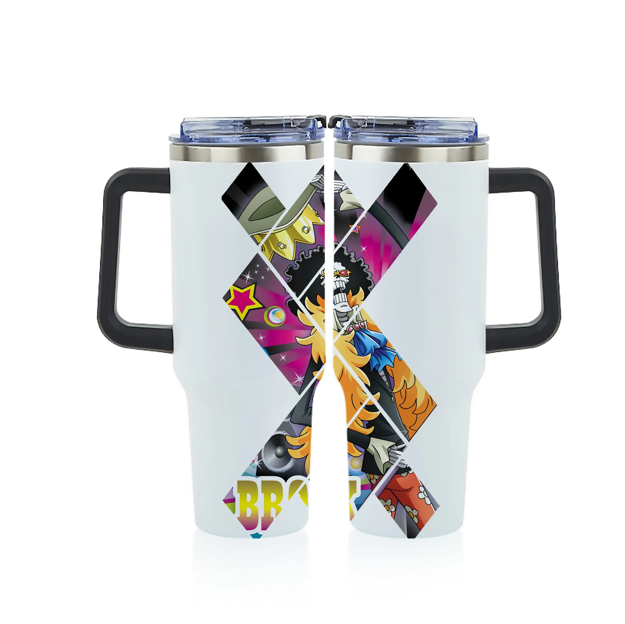 ワンピース グッズ ブルック - 1200mL フルプリント車用タンブラー ・ 304ステンレス 内側 ・ 201ステンレス 外側 ・ 保温 保冷 ・ 通勤 ドライブ アウトドア用