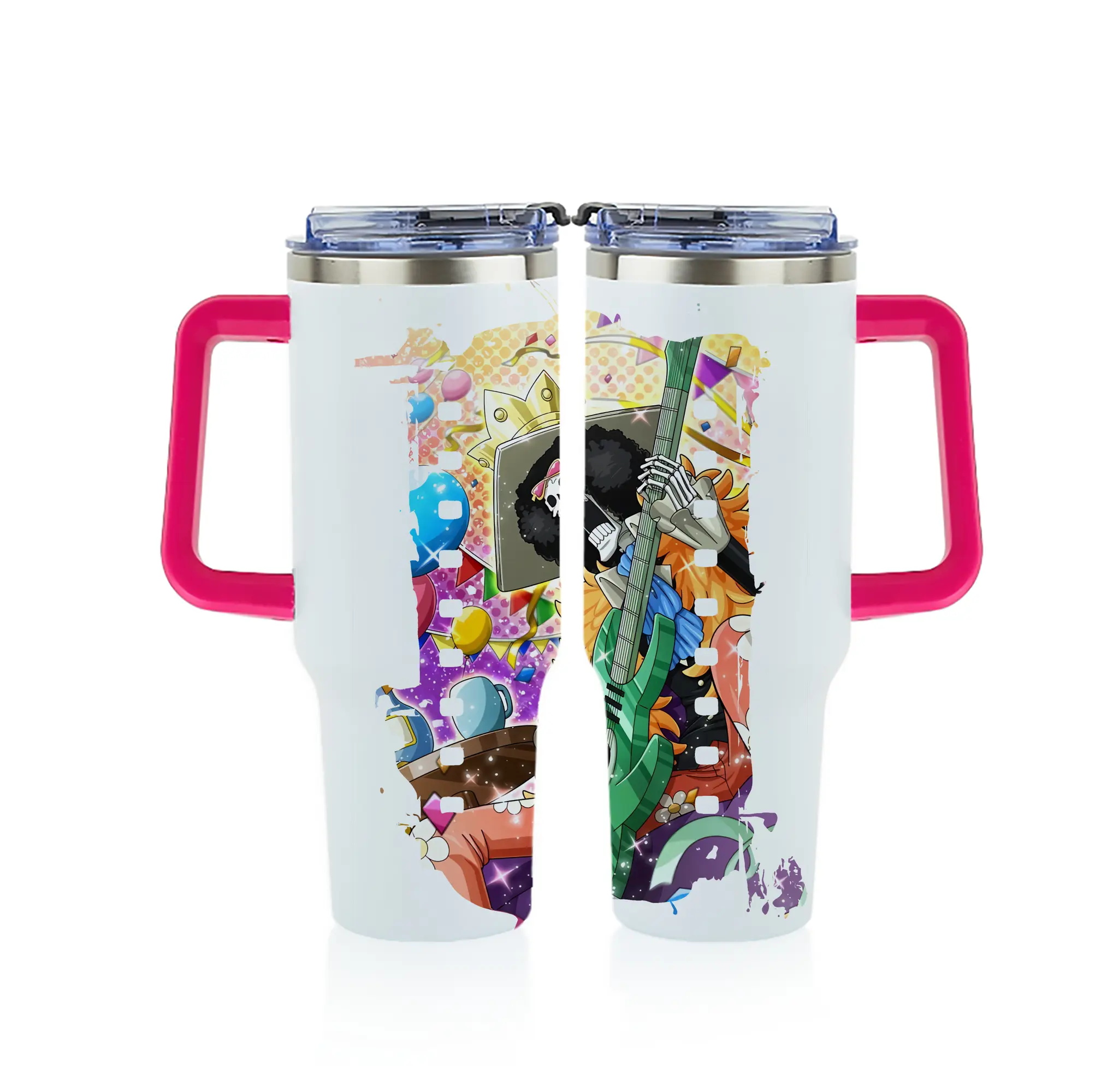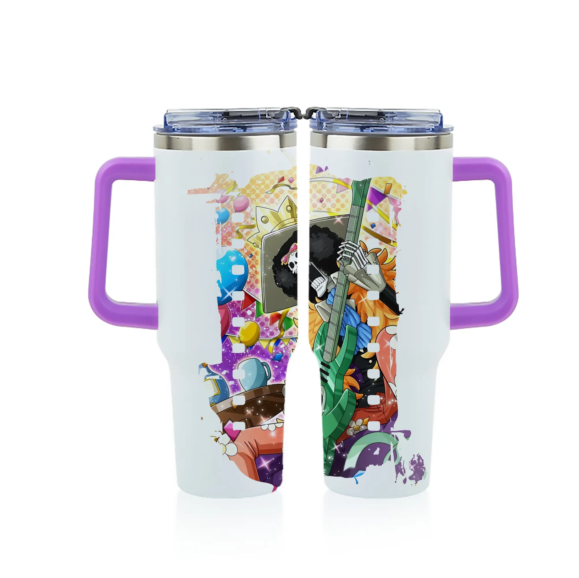 ワンピース グッズ ブルック - 1200mL フルプリント車用タンブラー ・ 304ステンレス 内側 ・ 201ステンレス 外側 ・ 保温 保冷 ・ 通勤 ドライブ アウトドア用