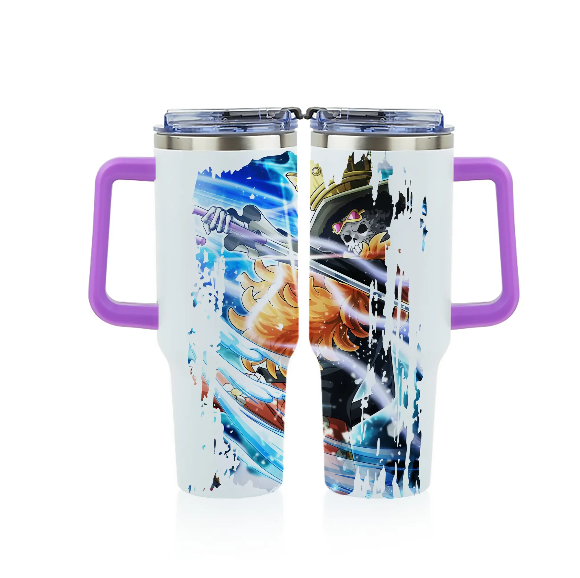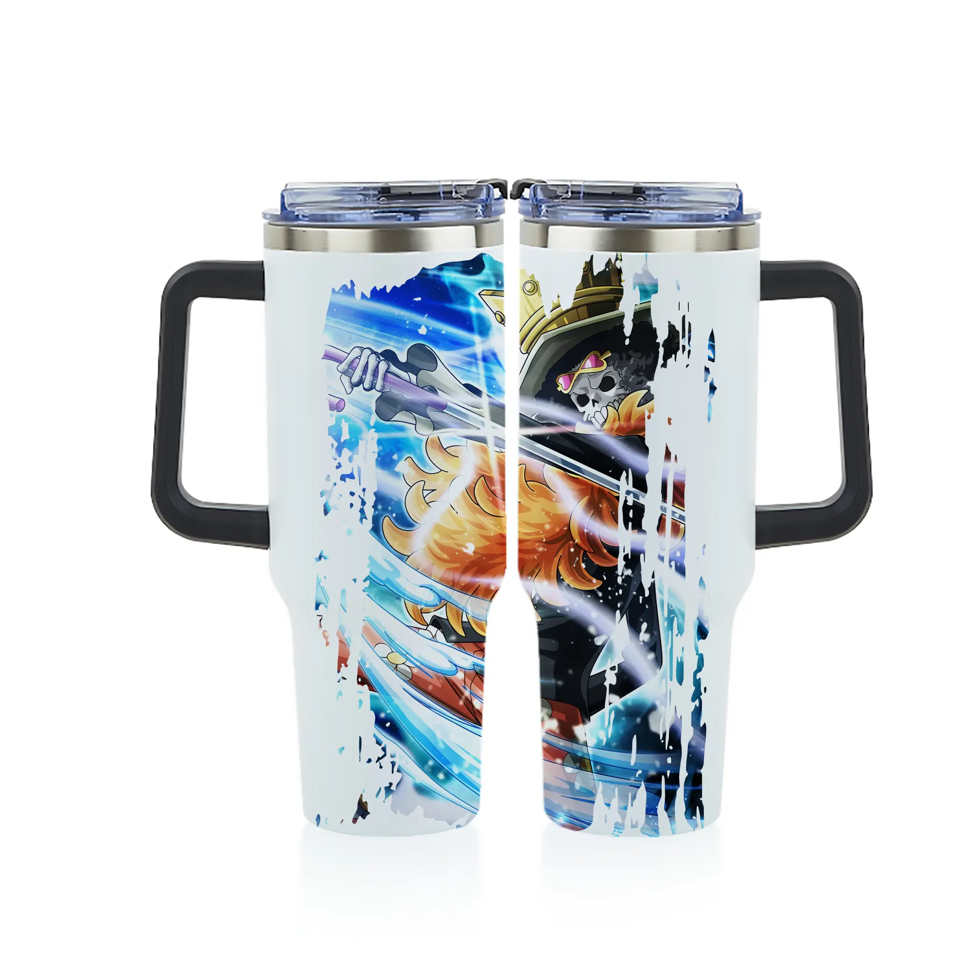 ワンピース グッズ ブルック - 1200mL フルプリント車用タンブラー ・ 304ステンレス 内側 ・ 201ステンレス 外側 ・ 保温 保冷 ・ 通勤 ドライブ アウトドア用