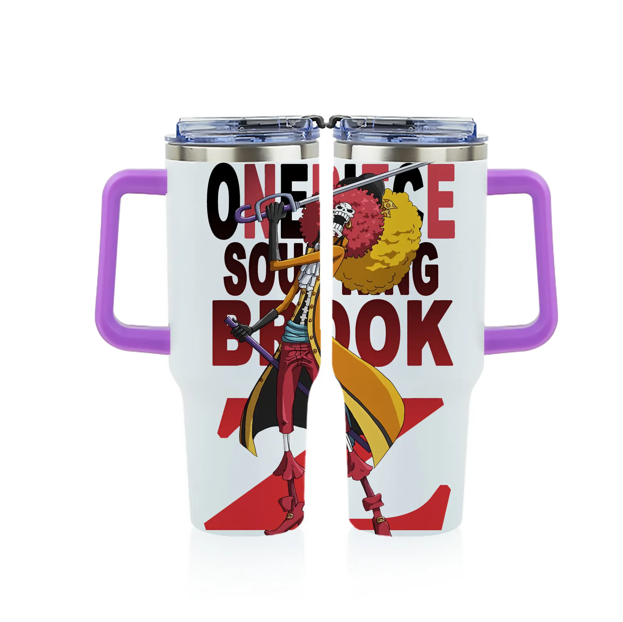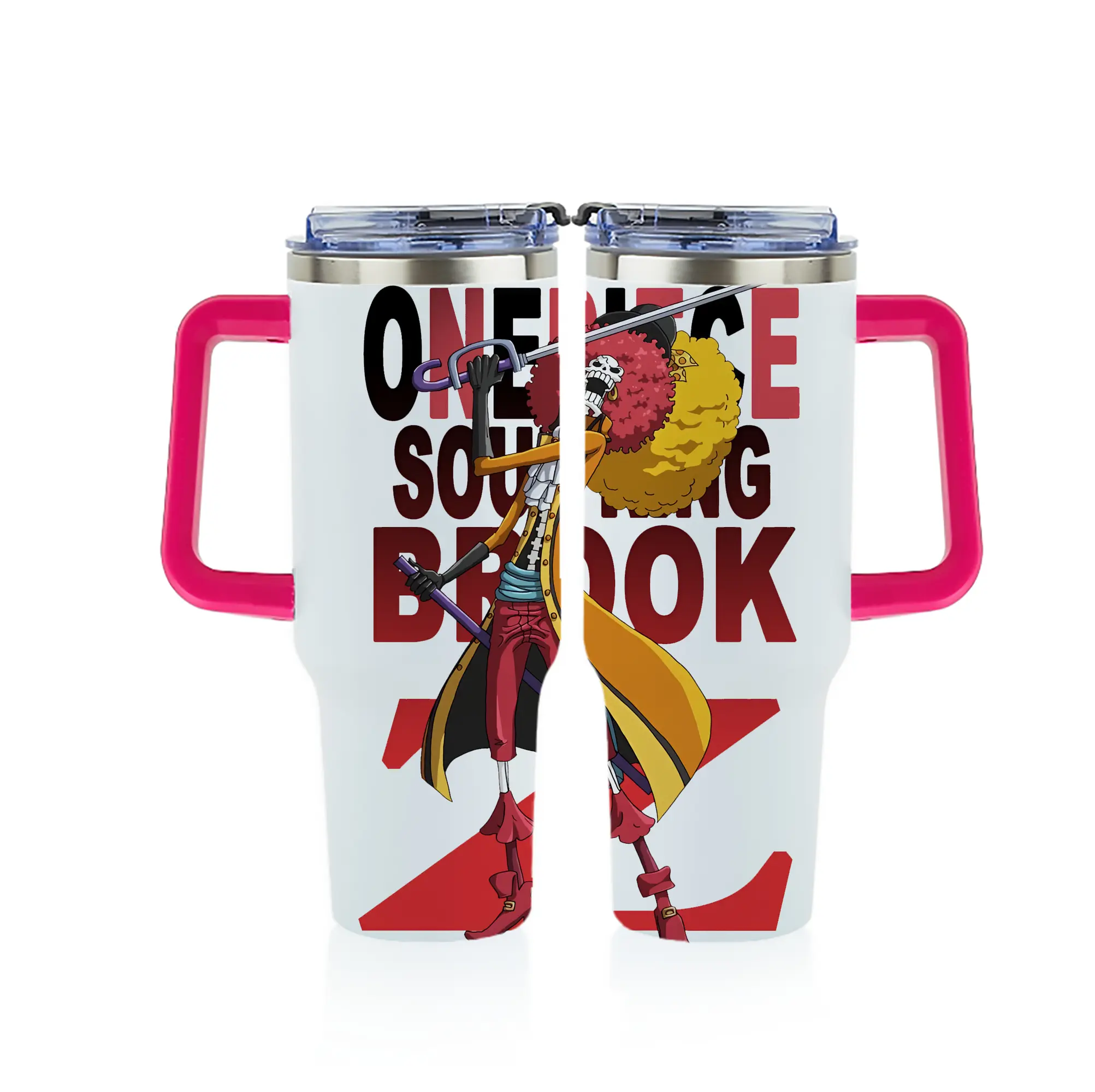 ワンピース グッズ ブルック - 1200mL フルプリント車用タンブラー ・ 304ステンレス 内側 ・ 201ステンレス 外側 ・ 保温 保冷 ・ 通勤 ドライブ アウトドア用