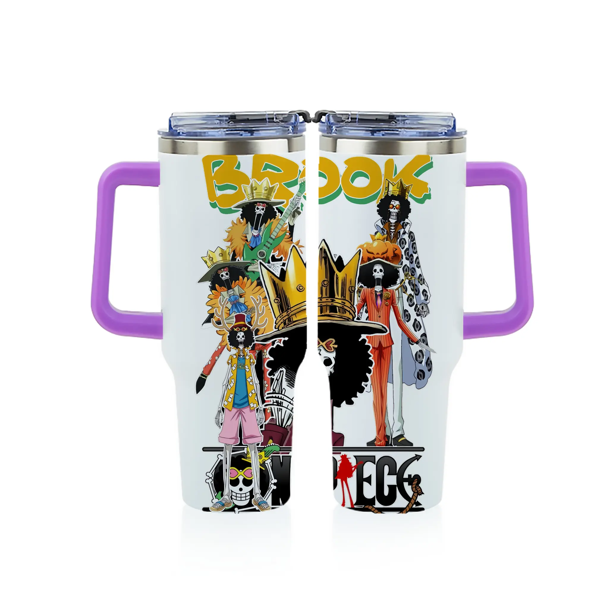 ワンピース グッズ ブルック - 1200mL フルプリント車用タンブラー ・ 304ステンレス 内側 ・ 201ステンレス 外側 ・ 保温 保冷 ・ 通勤 ドライブ アウトドア用
