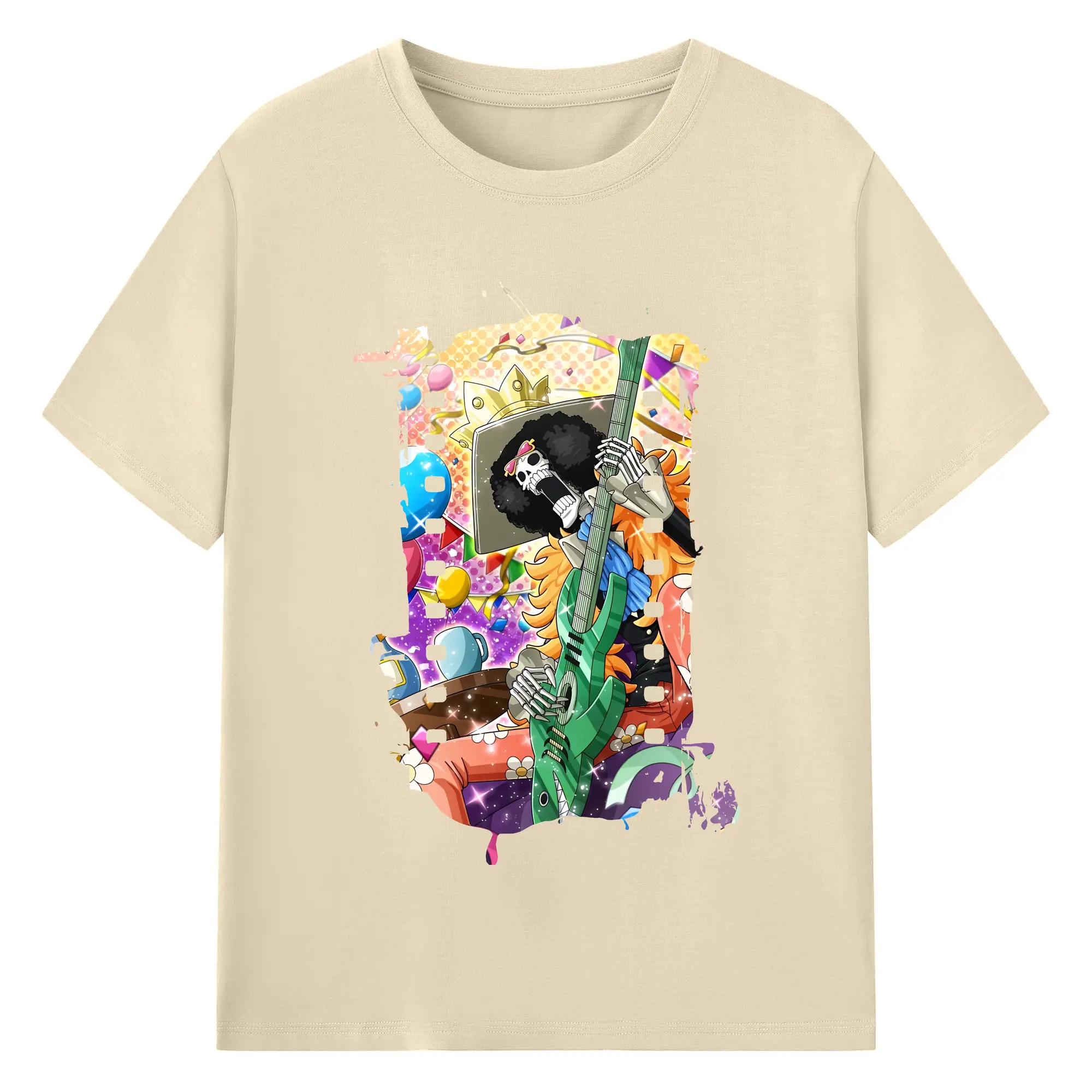 ワンピース グッズ ブルック - 綿100% ヴィンテージ風 半袖Tシャツ ・ フロントプリント ・ 柔らか肌触り ・ 通気性 快適 ・ スポーツ カジュアル 外出用
