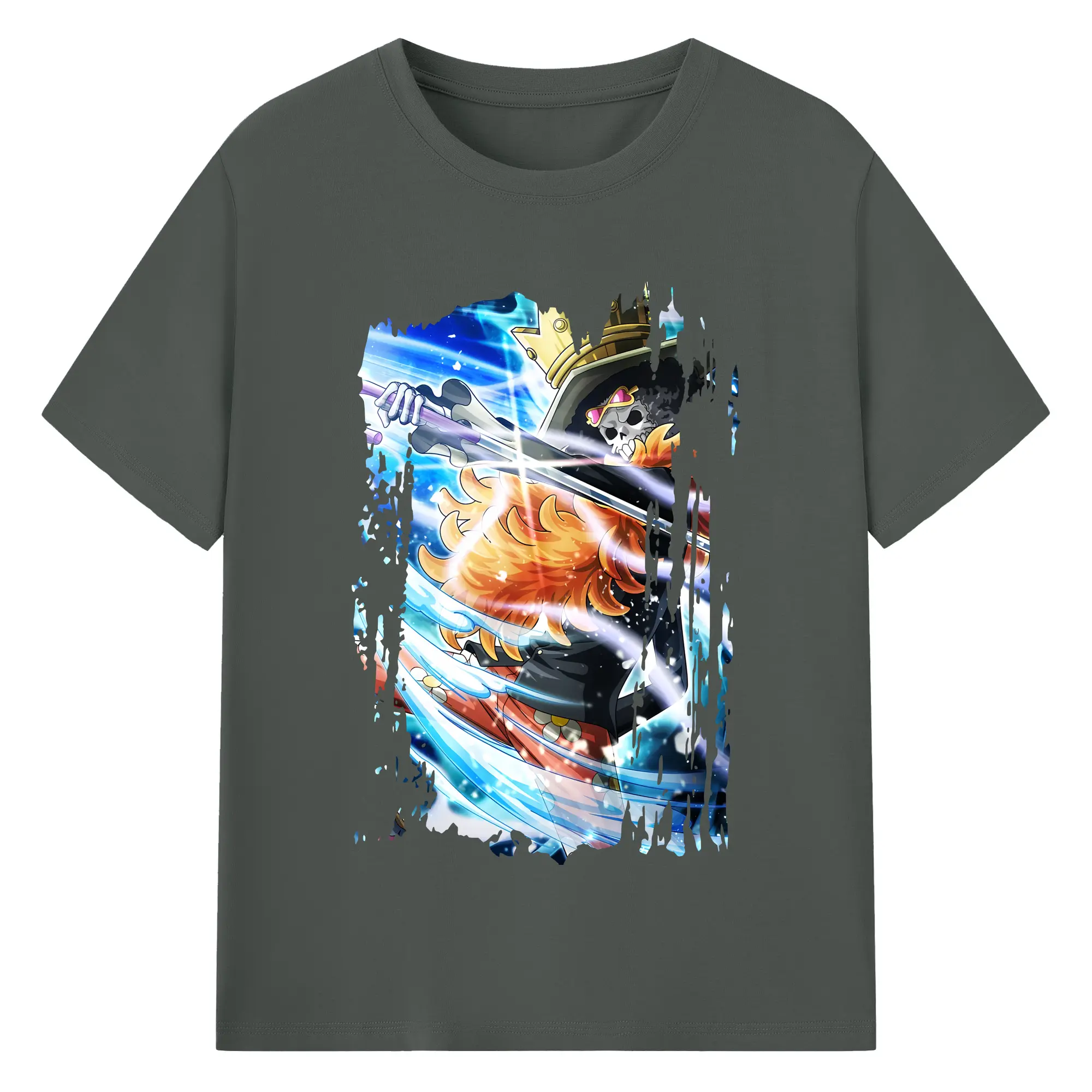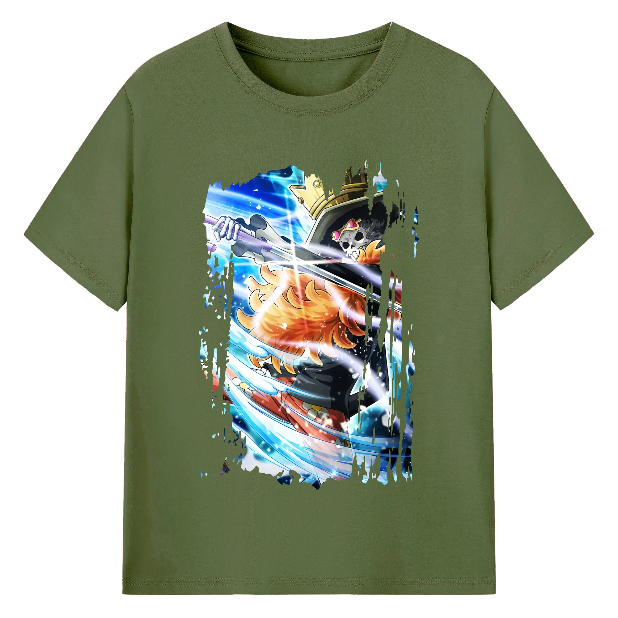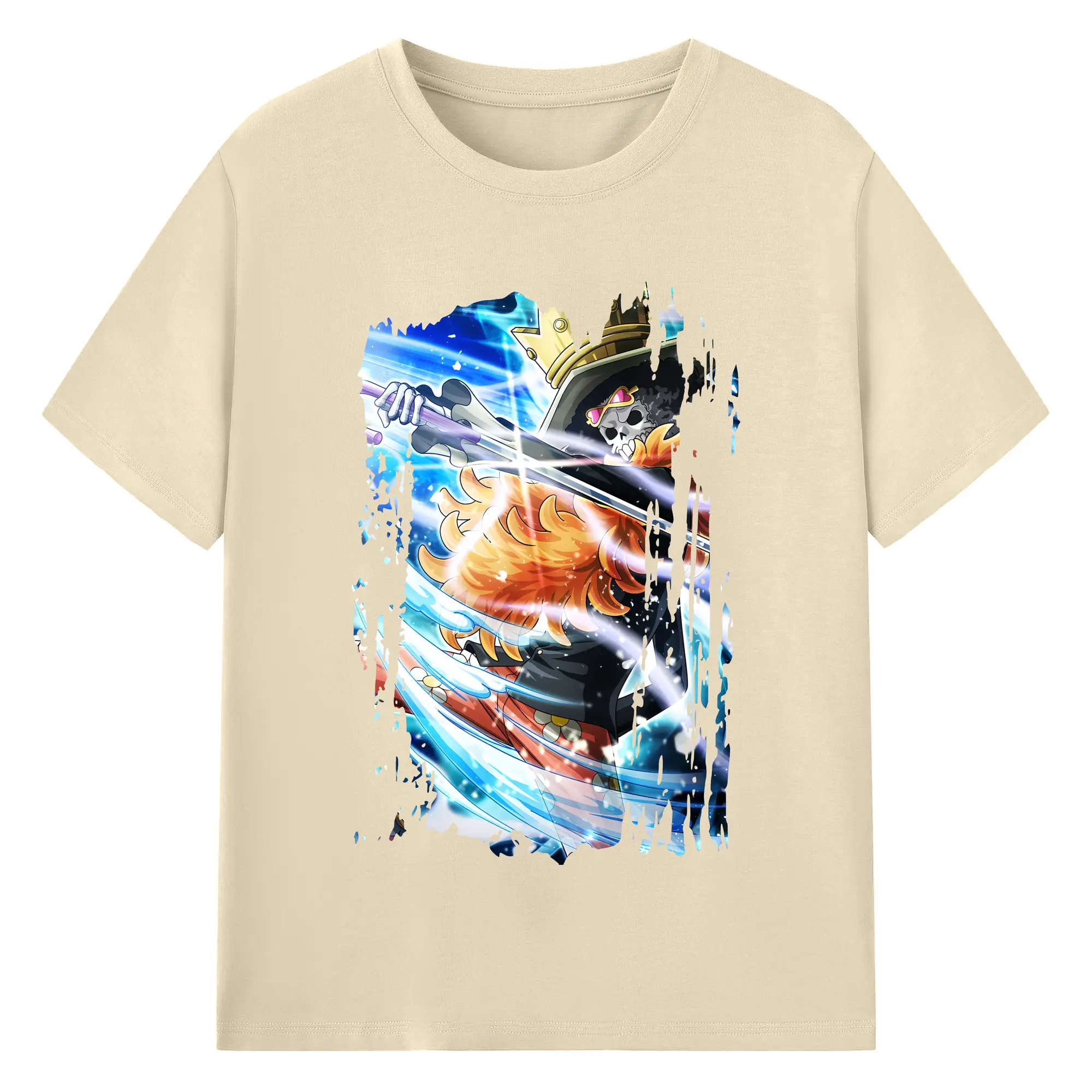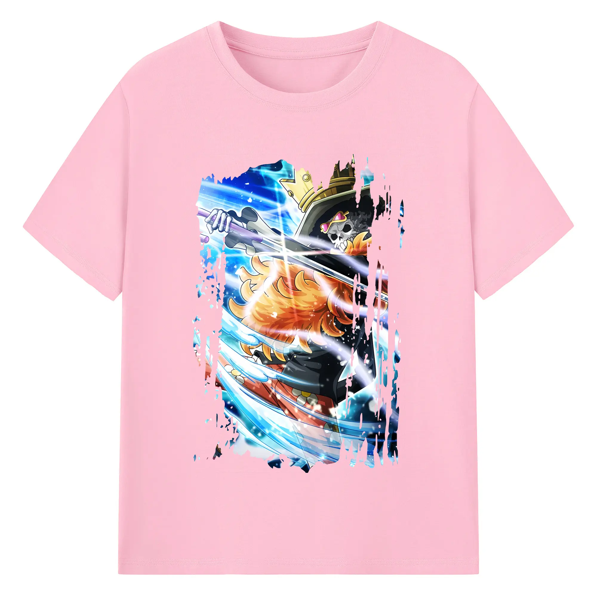 ワンピース グッズ ブルック - 綿100% ヴィンテージ風 半袖Tシャツ ・ フロントプリント ・ 柔らか肌触り ・ 通気性 快適 ・ スポーツ カジュアル 外出用