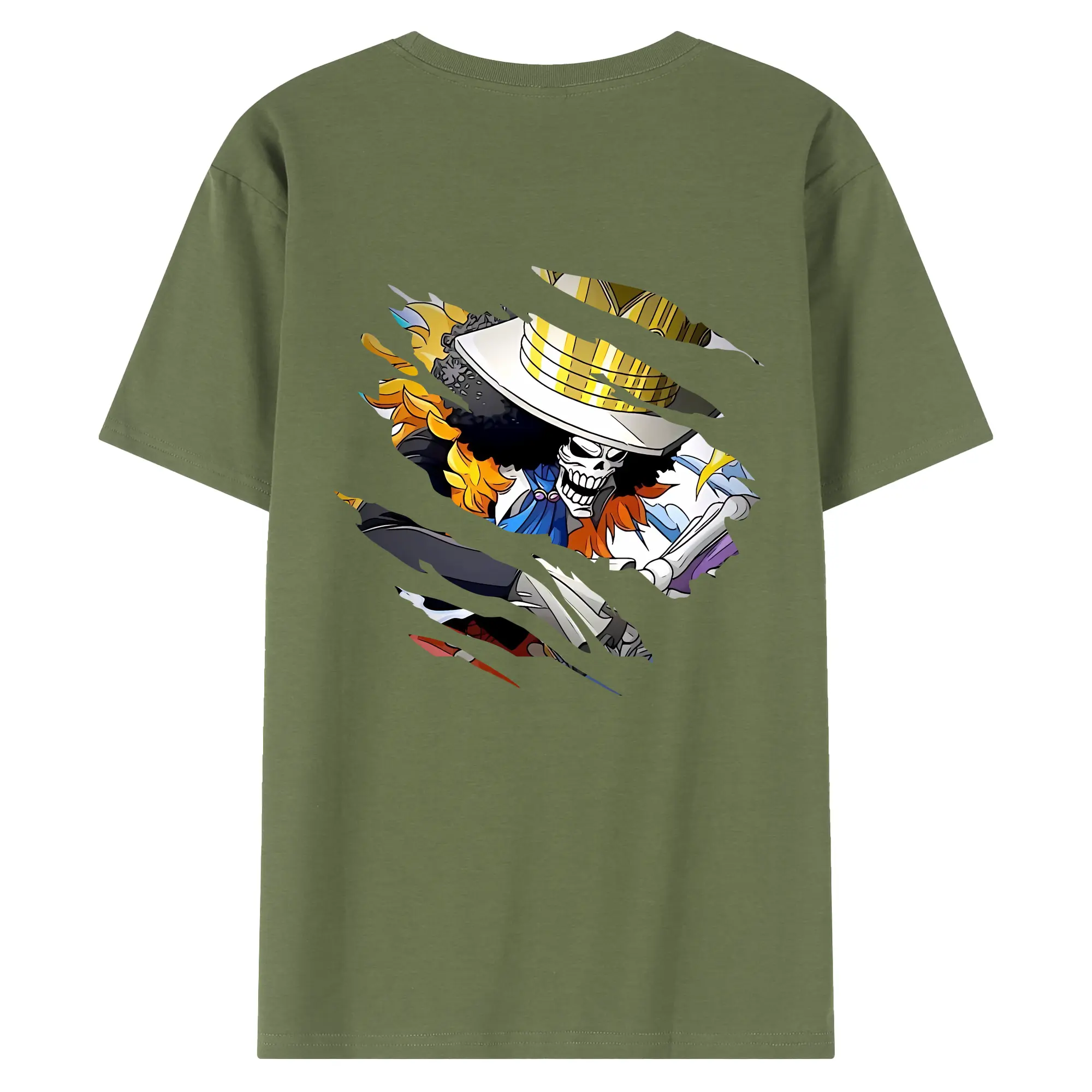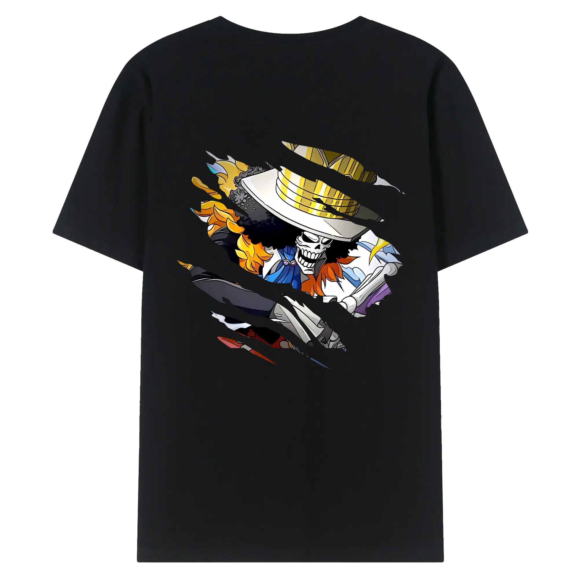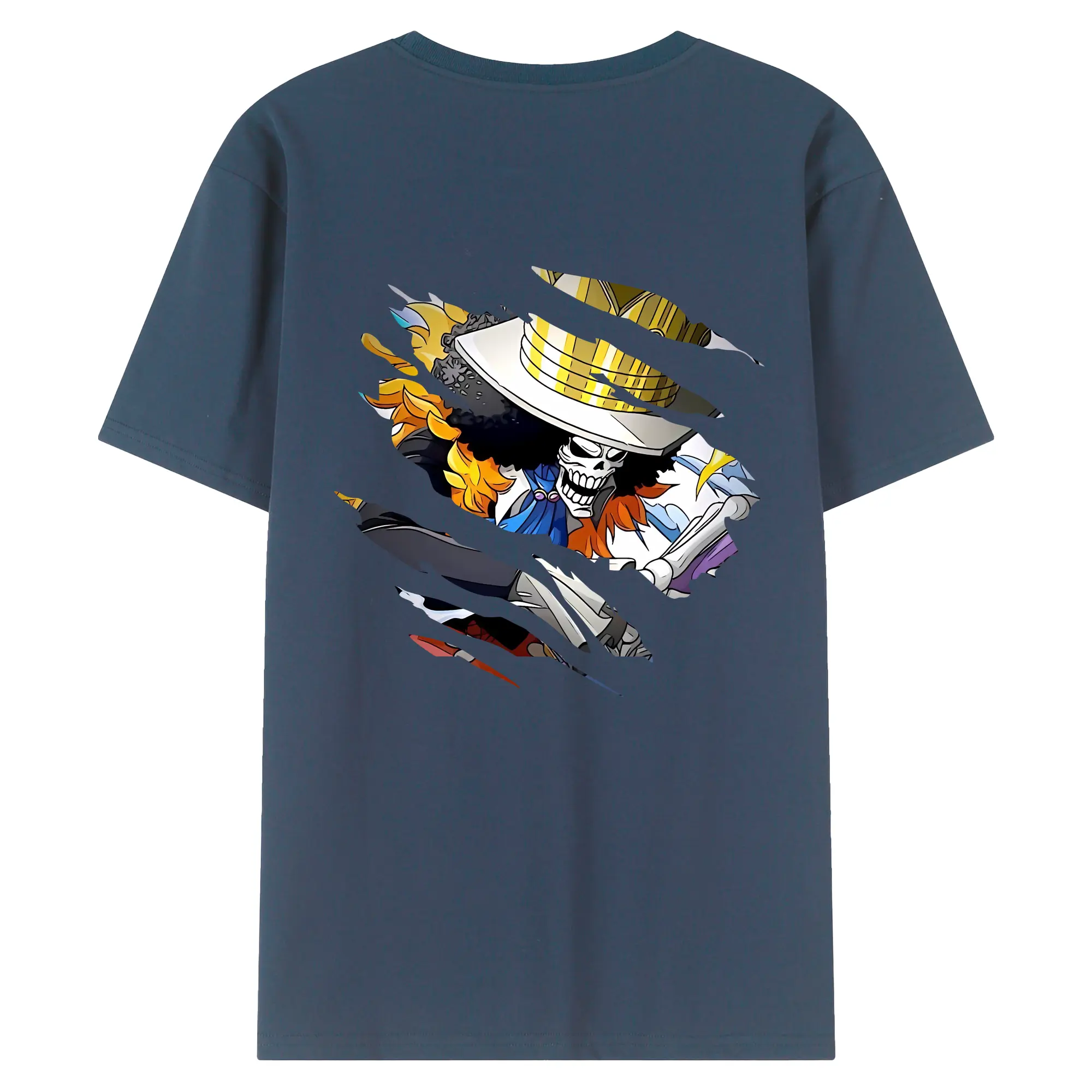 ワンピース グッズ ブルック - 綿100% ヴィンテージ風 半袖Tシャツ ・ 背面プリント ・ 柔らか肌触り ・ 通気性 快適 ・ スポーツ カジュアル 外出用