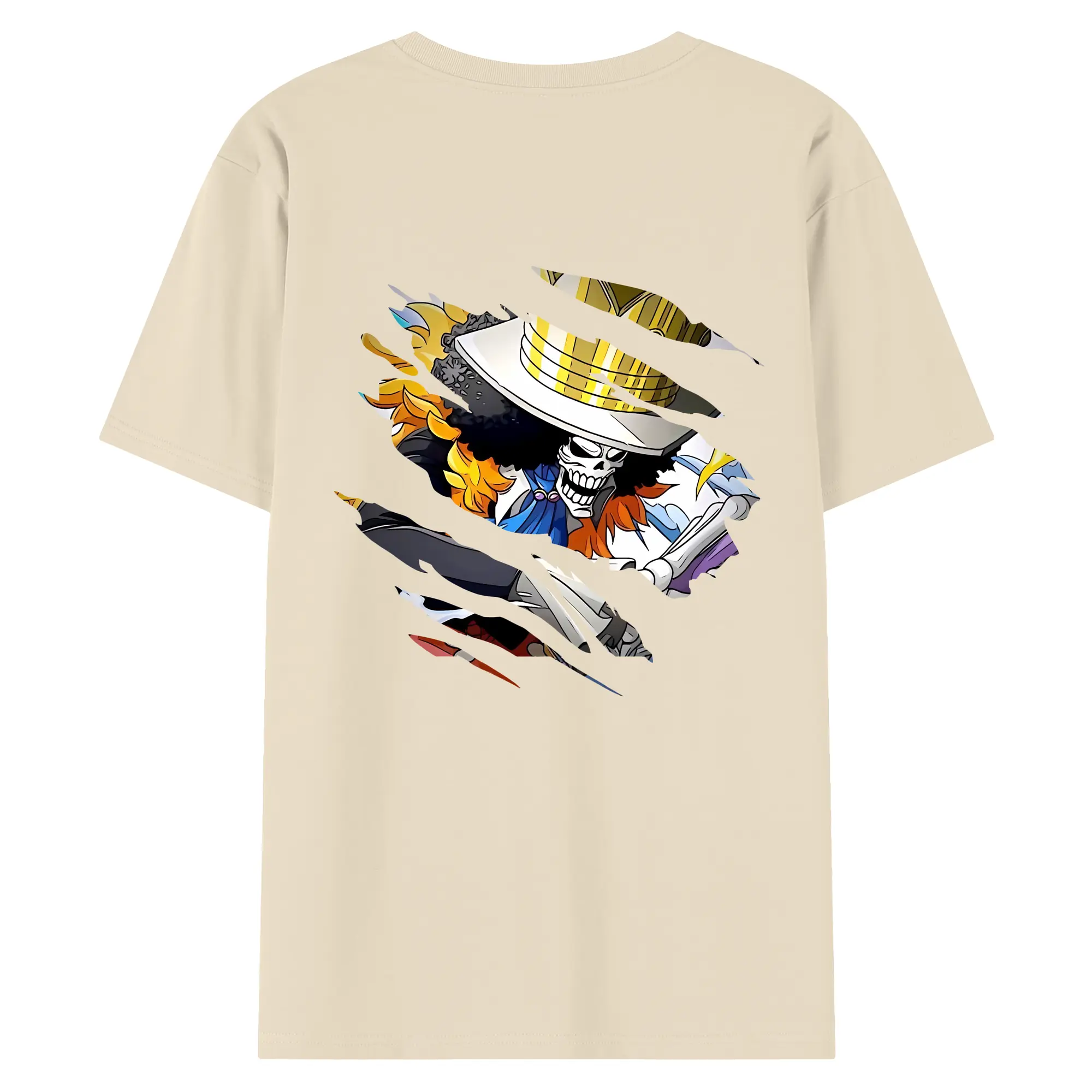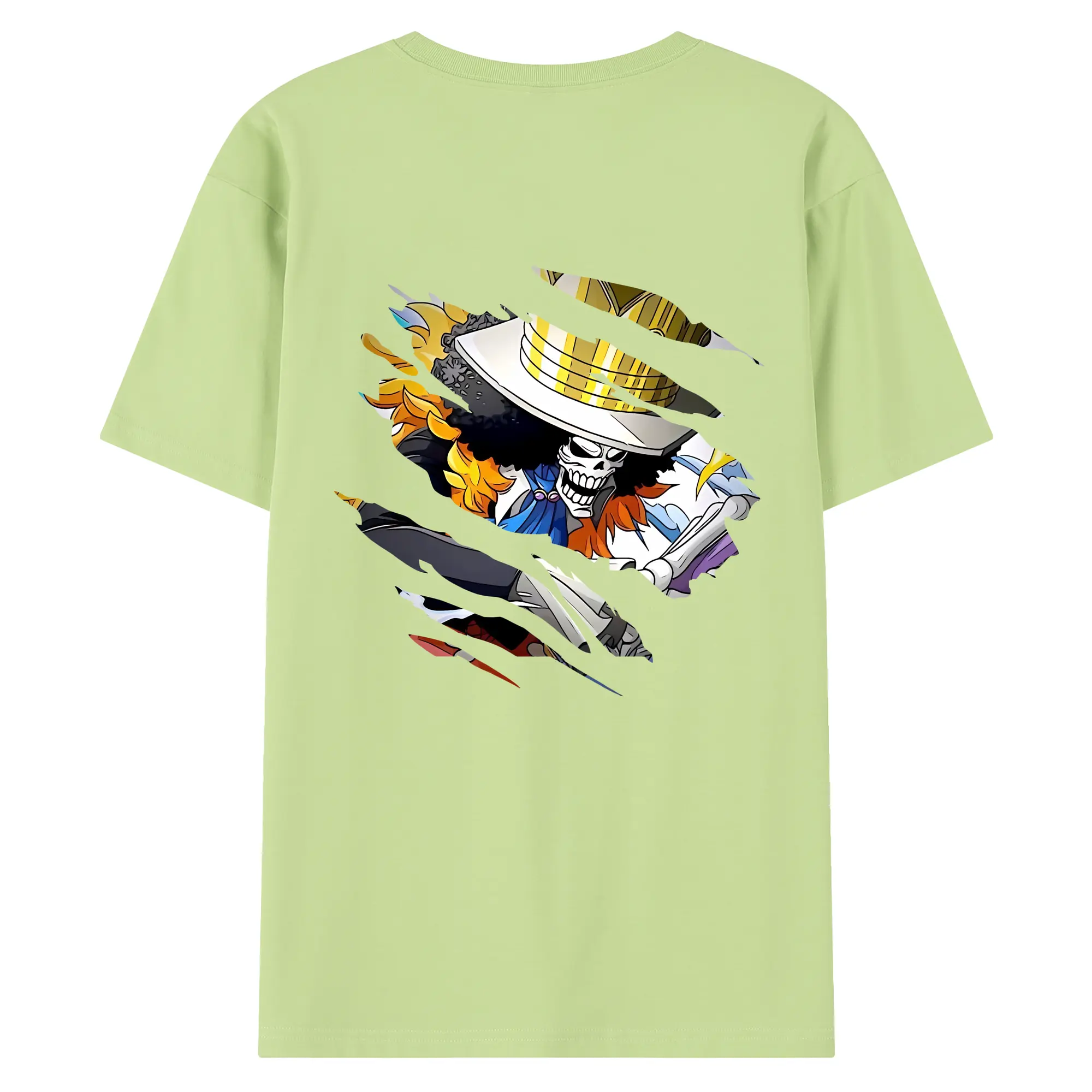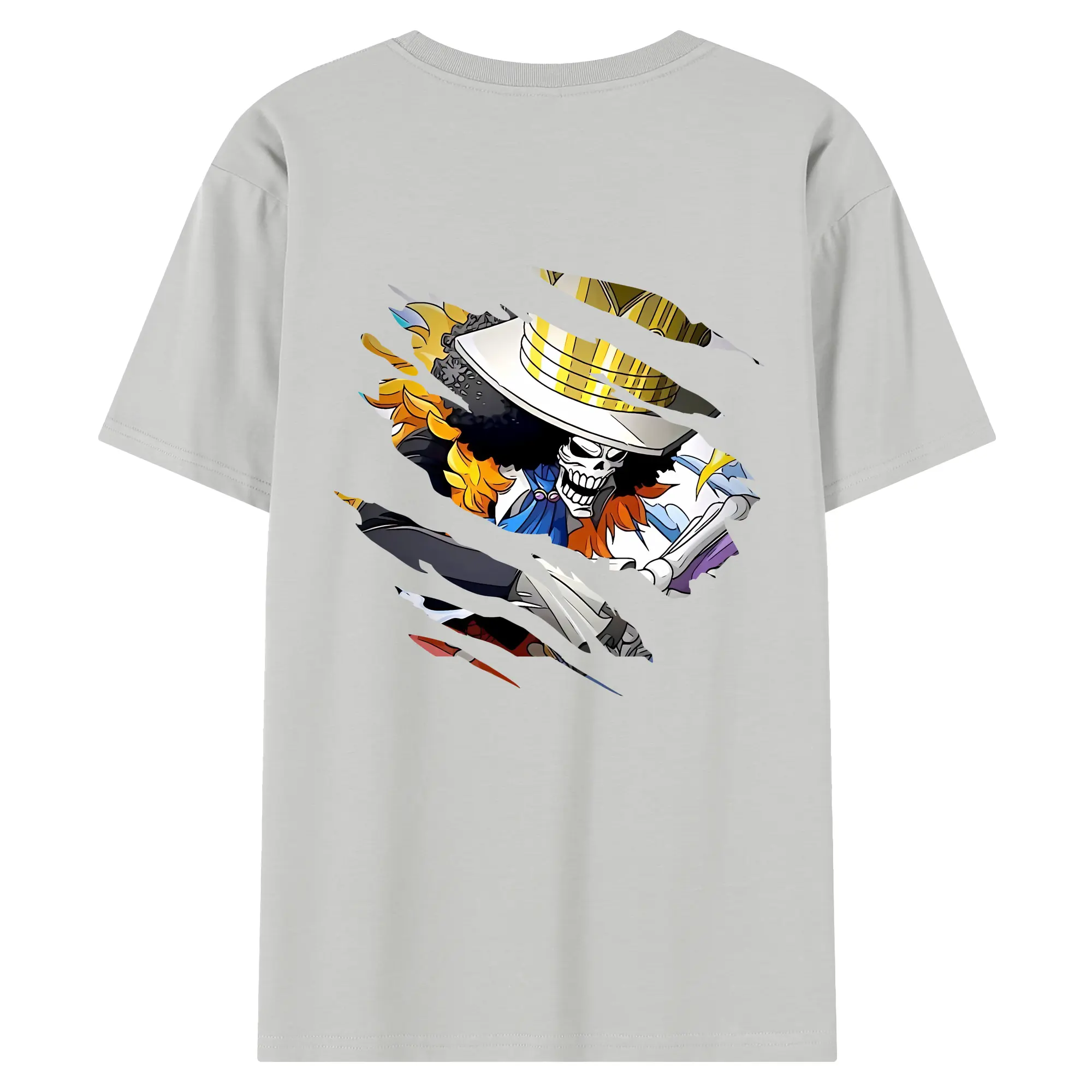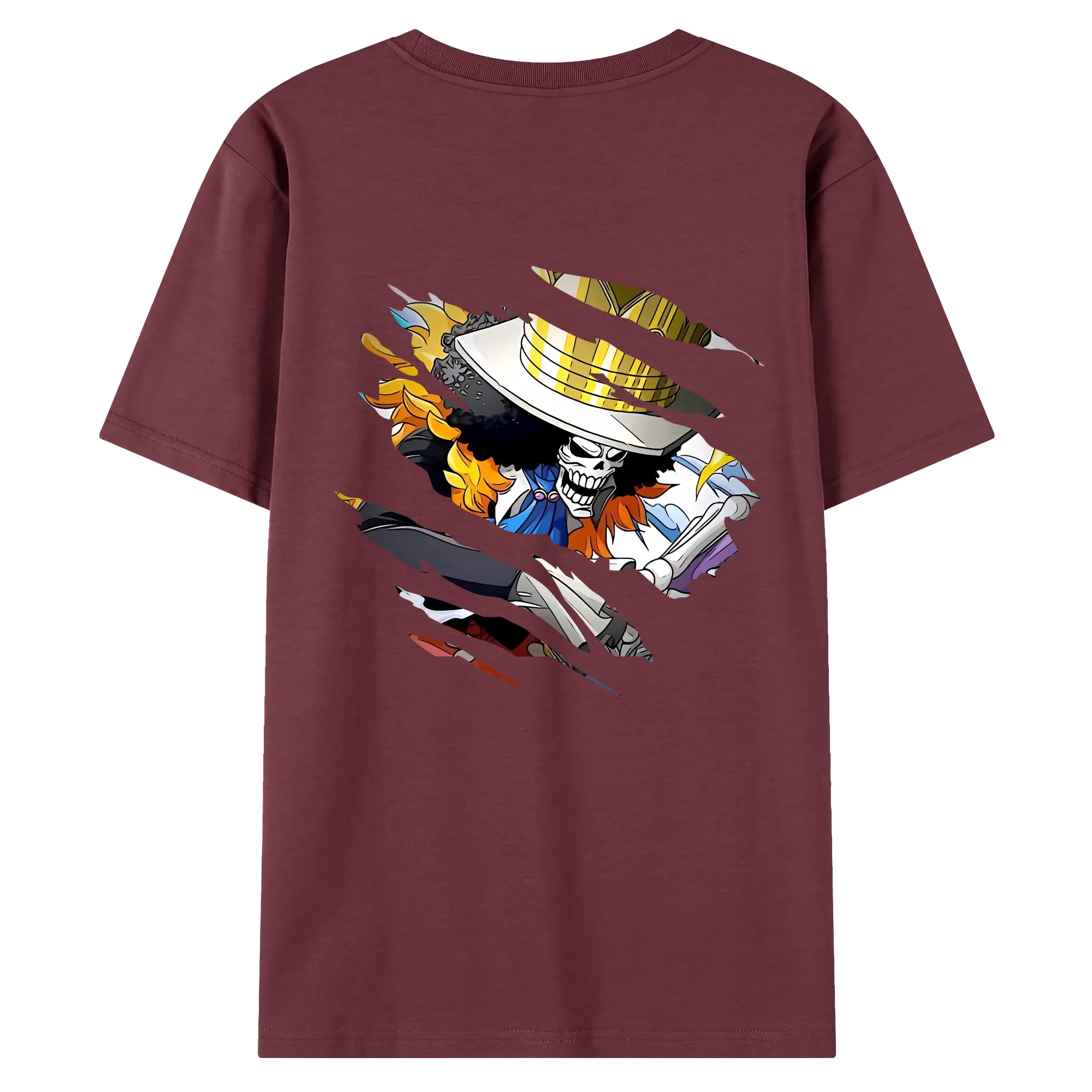 ワンピース グッズ ブルック - 綿100% ヴィンテージ風 半袖Tシャツ ・ 背面プリント ・ 柔らか肌触り ・ 通気性 快適 ・ スポーツ カジュアル 外出用