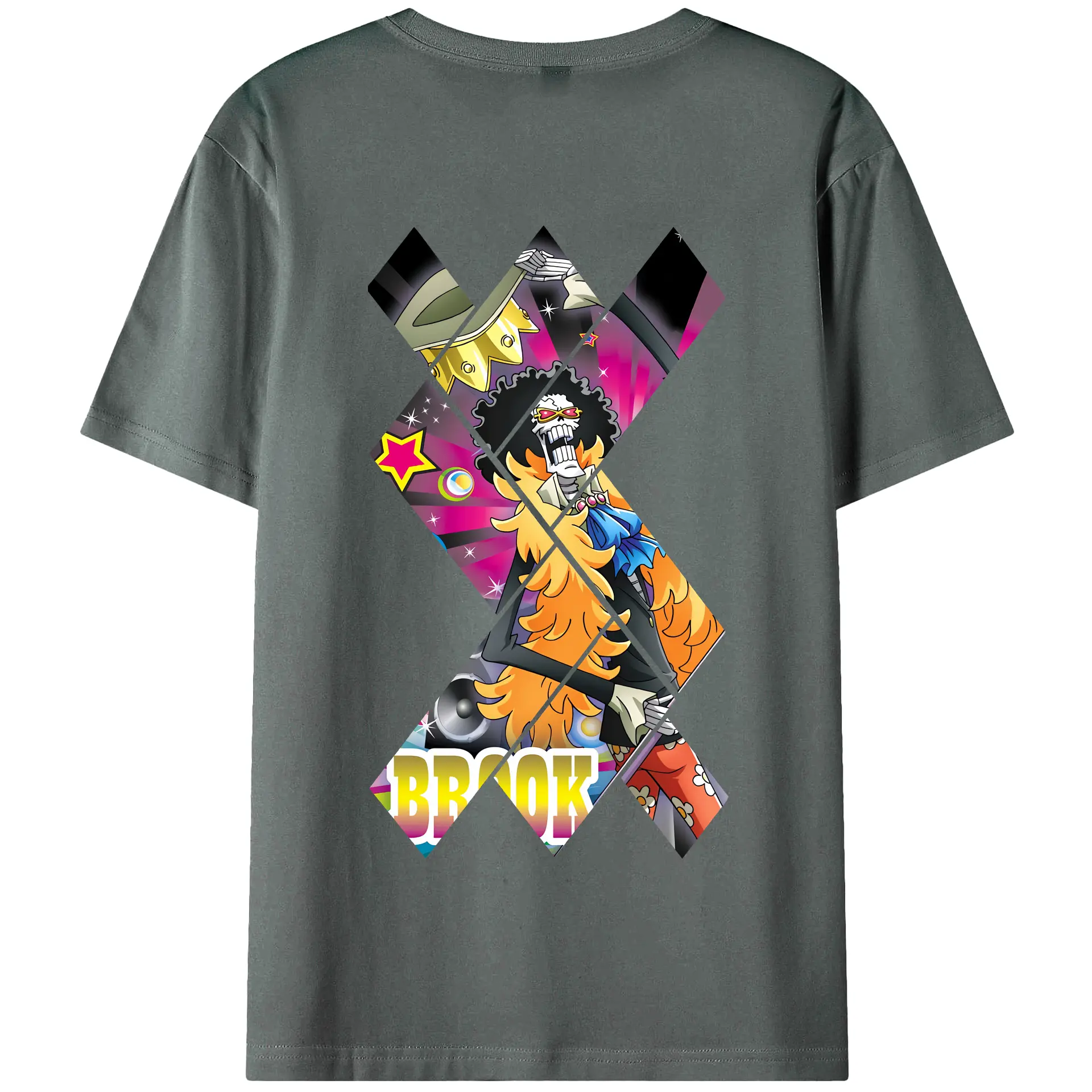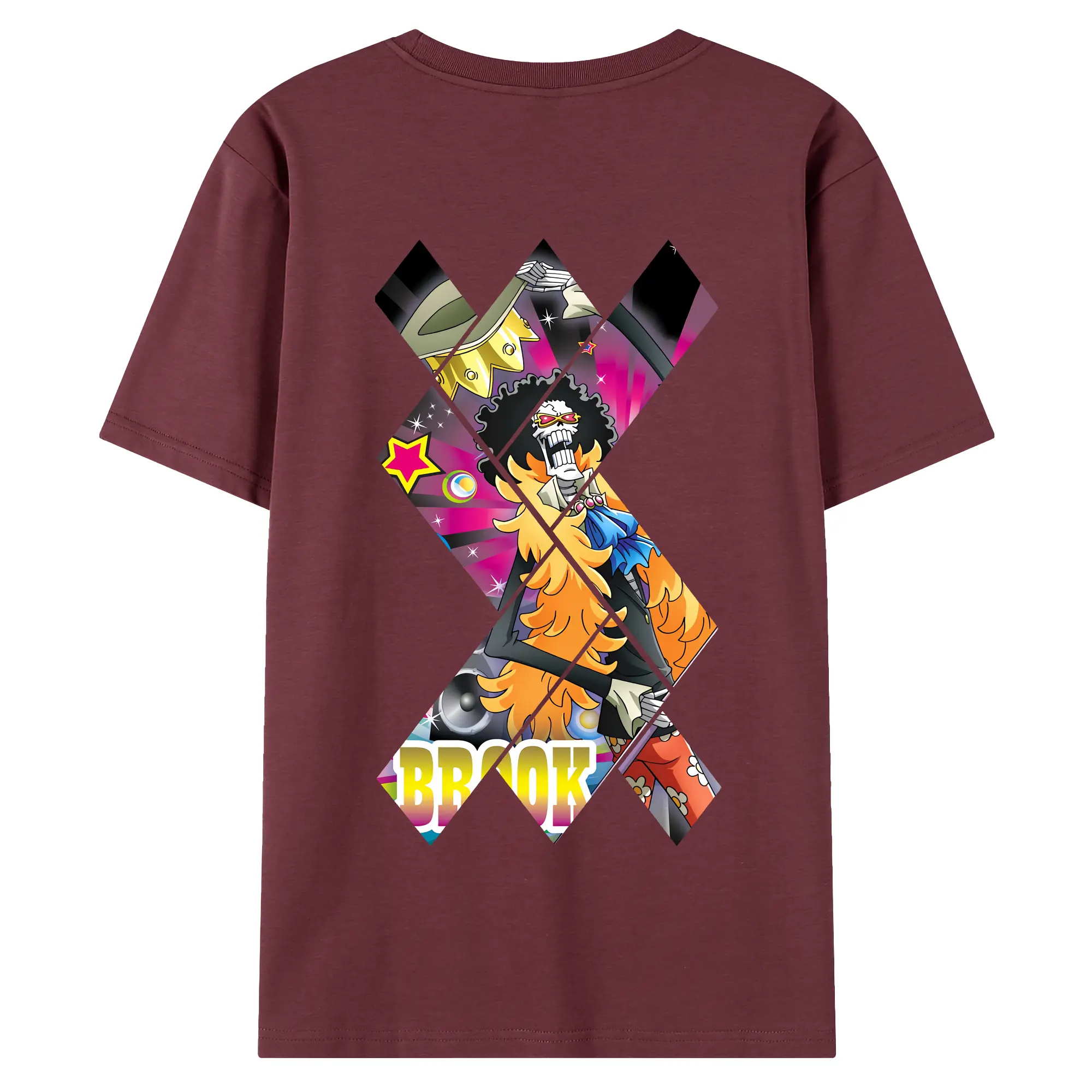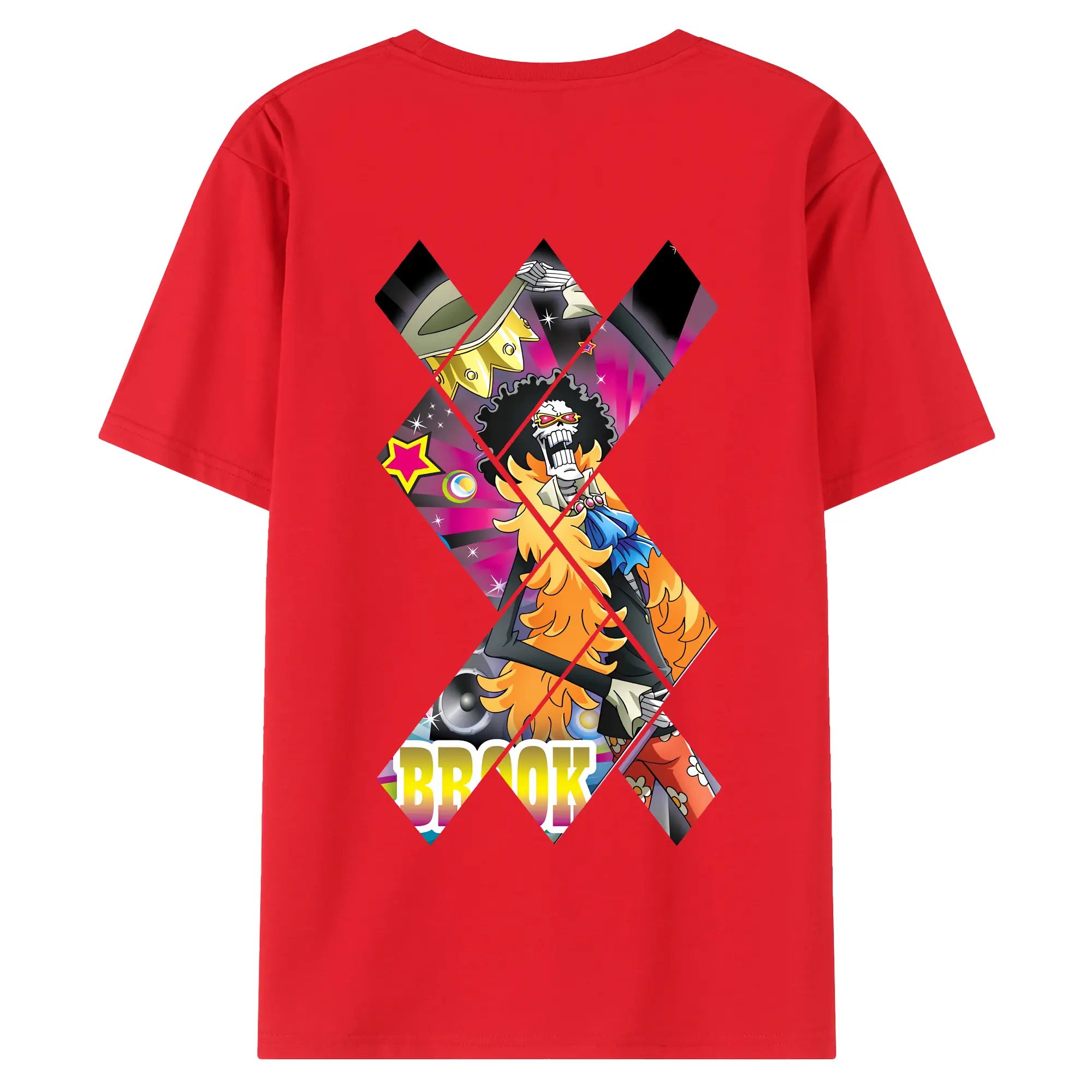 ワンピース グッズ ブルック - 綿100% ヴィンテージ風 半袖Tシャツ ・ 背面プリント ・ 柔らか肌触り ・ 通気性 快適 ・ スポーツ カジュアル 外出用