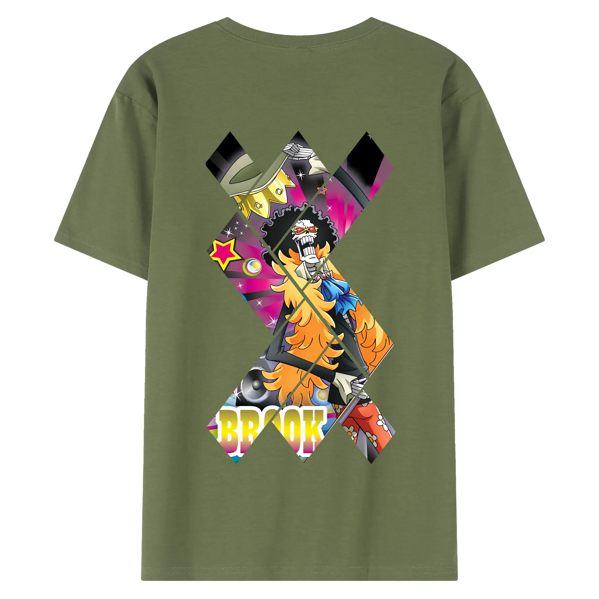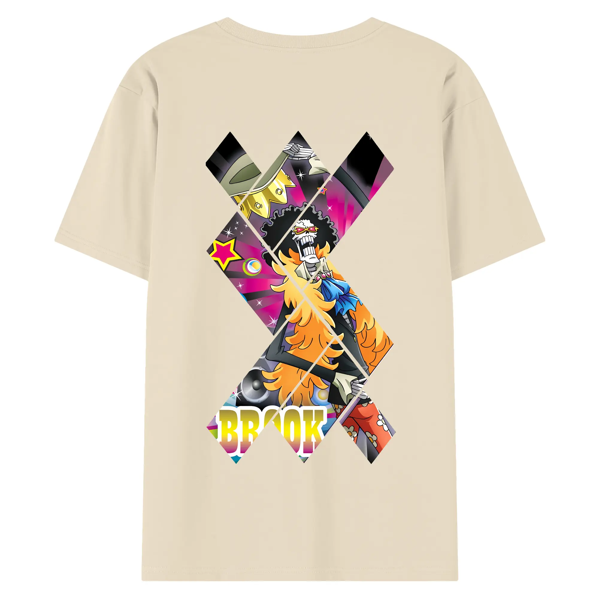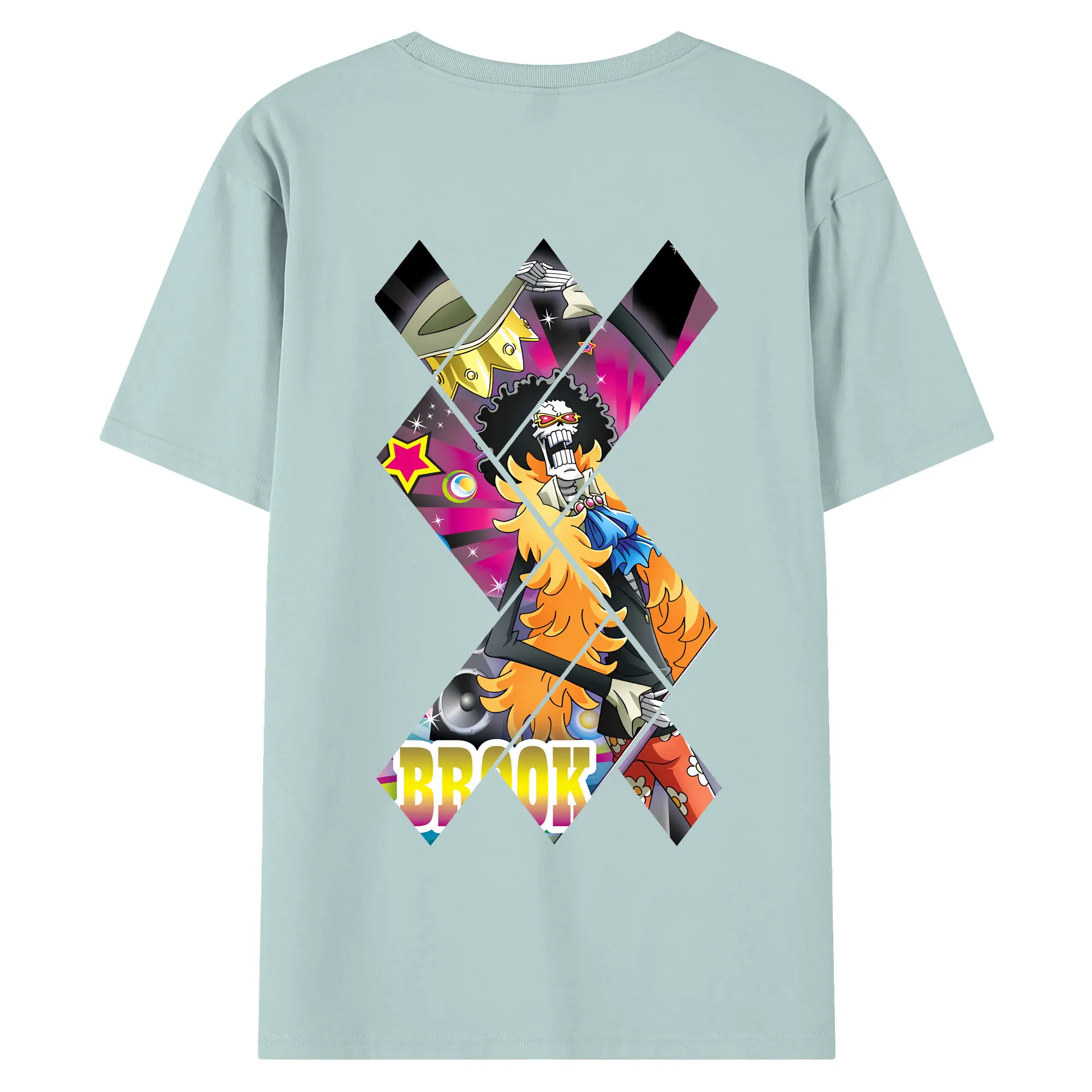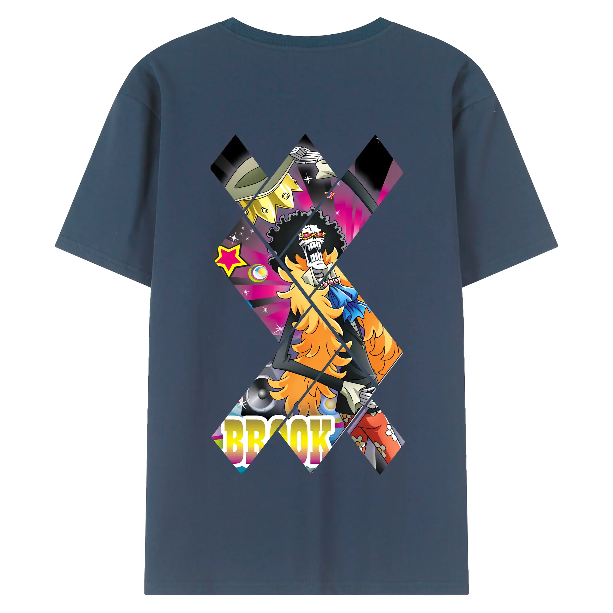 ワンピース グッズ ブルック - 綿100% ヴィンテージ風 半袖Tシャツ ・ 背面プリント ・ 柔らか肌触り ・ 通気性 快適 ・ スポーツ カジュアル 外出用
