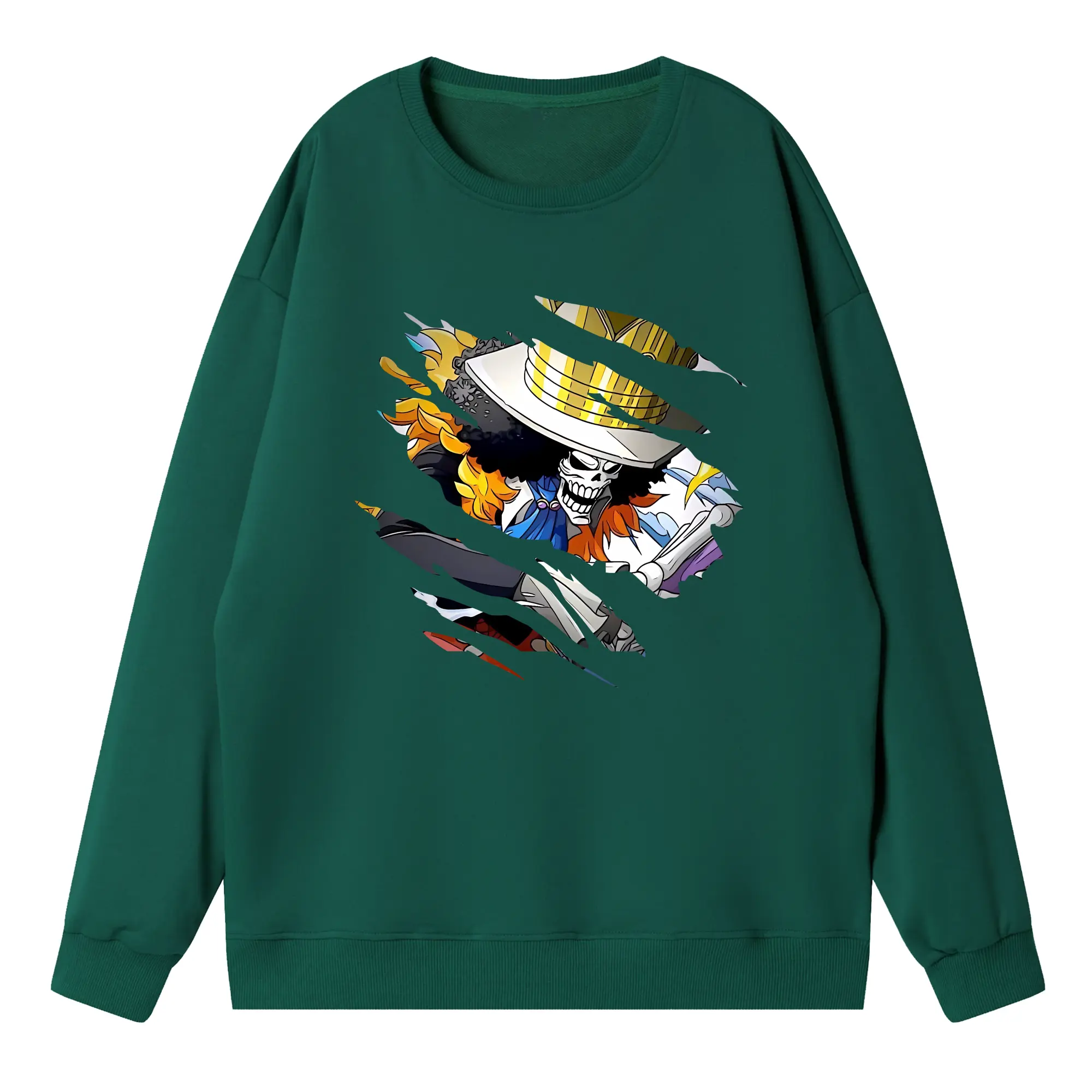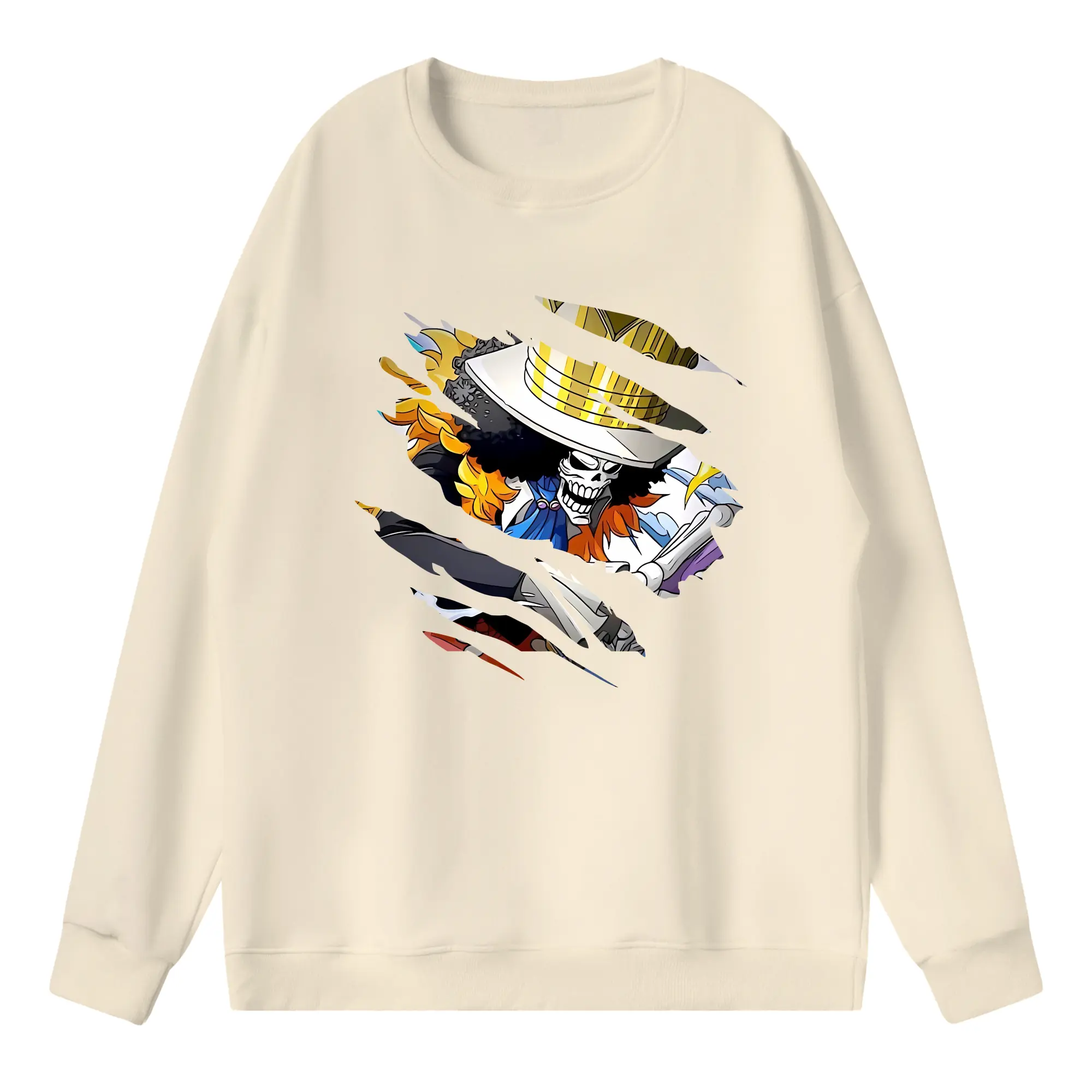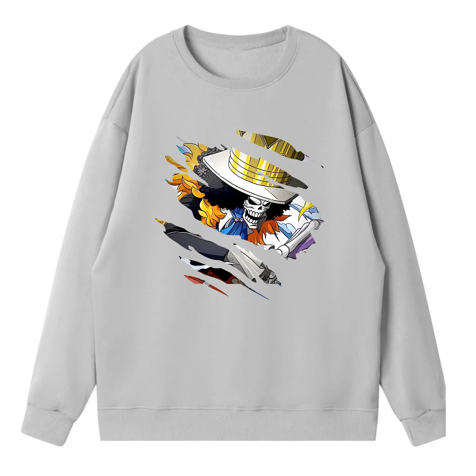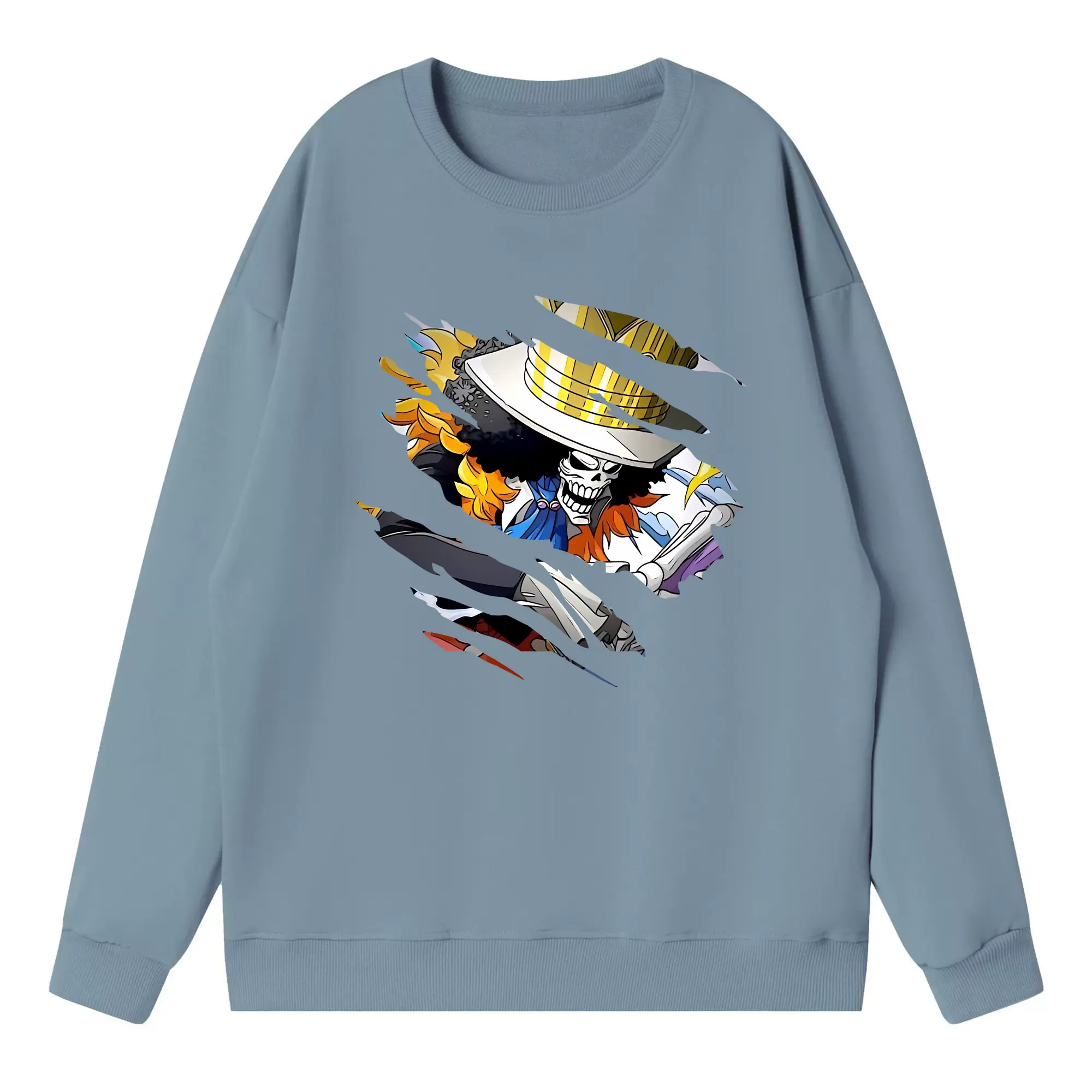 ワンピース グッズ ブルック - 高品質 クルーネック スウェット ・ コットン59% ポリエステル41% ・ ユニセックス 長袖 トレーナー ・ カジュアル デイリー スポーツ 散歩用