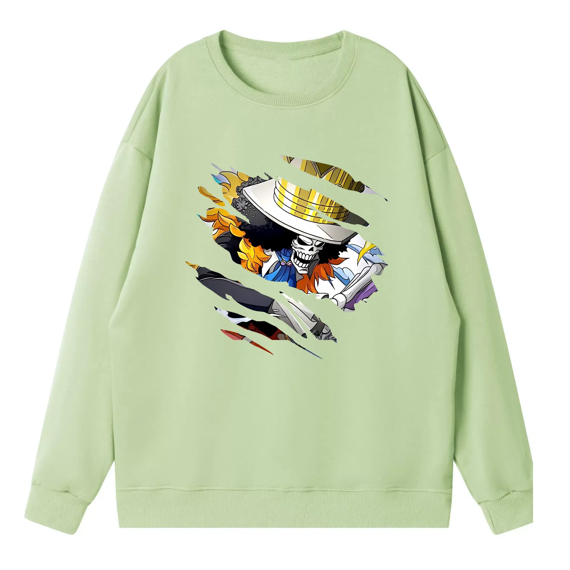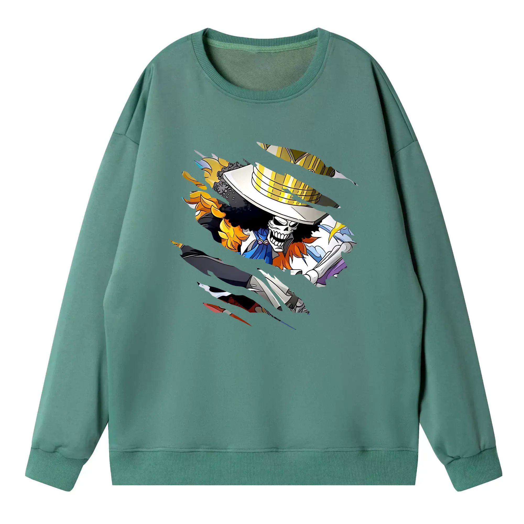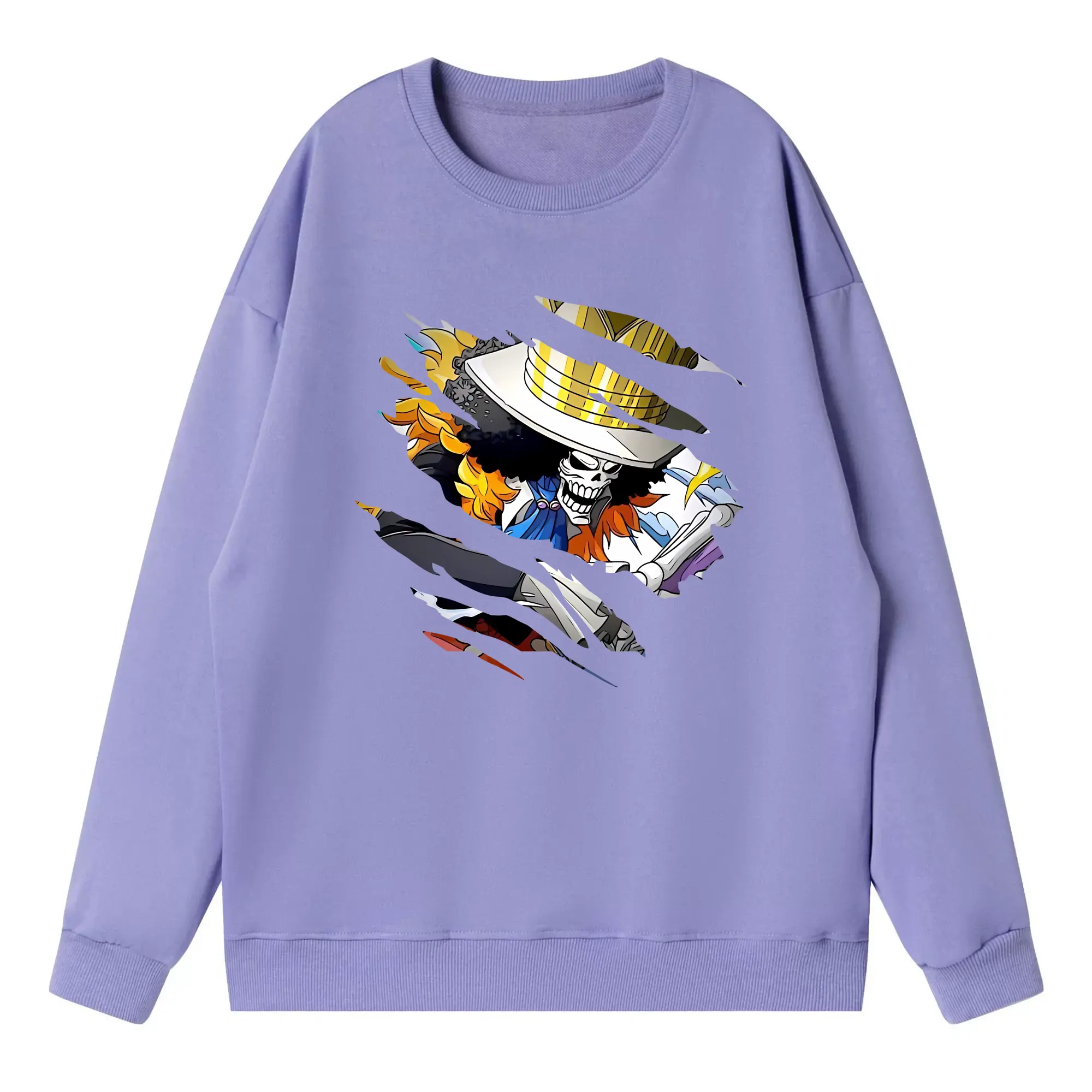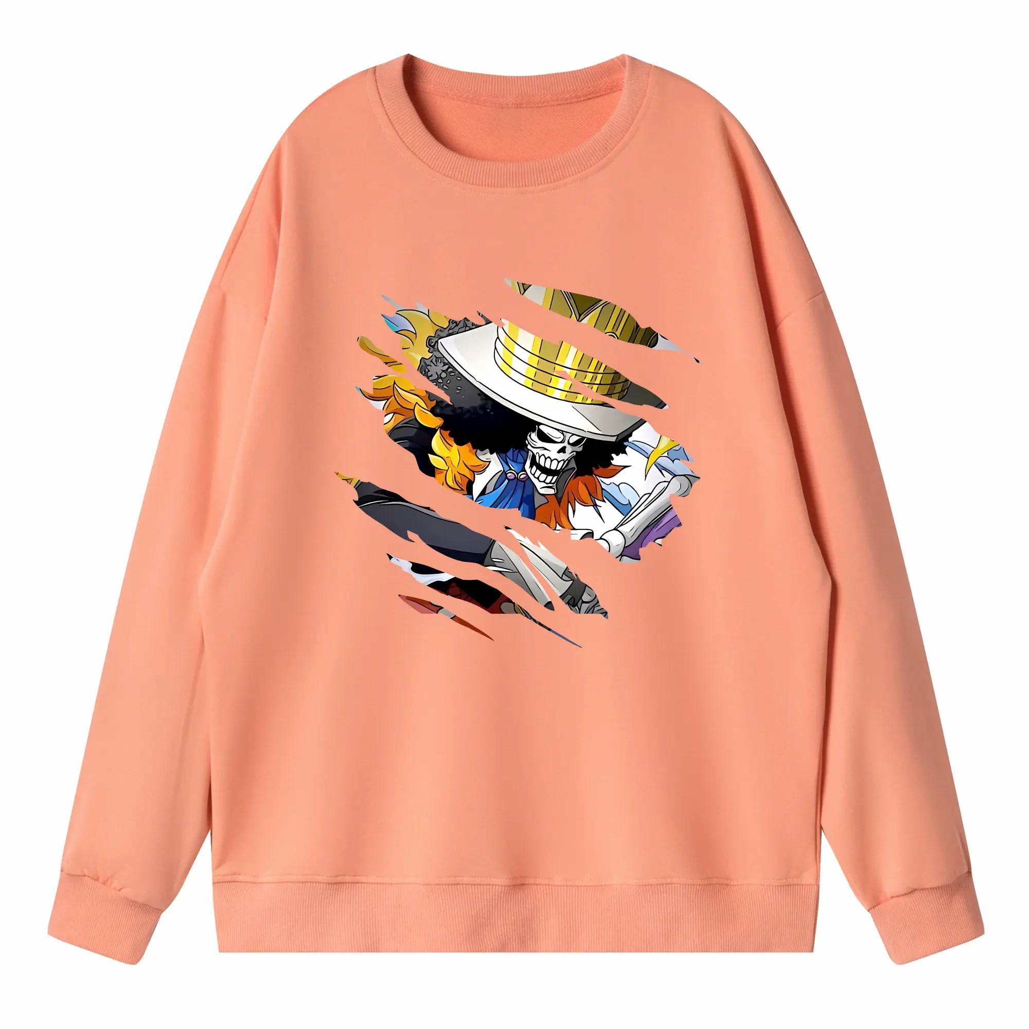 ワンピース グッズ ブルック - 高品質 クルーネック スウェット ・ コットン59% ポリエステル41% ・ ユニセックス 長袖 トレーナー ・ カジュアル デイリー スポーツ 散歩用