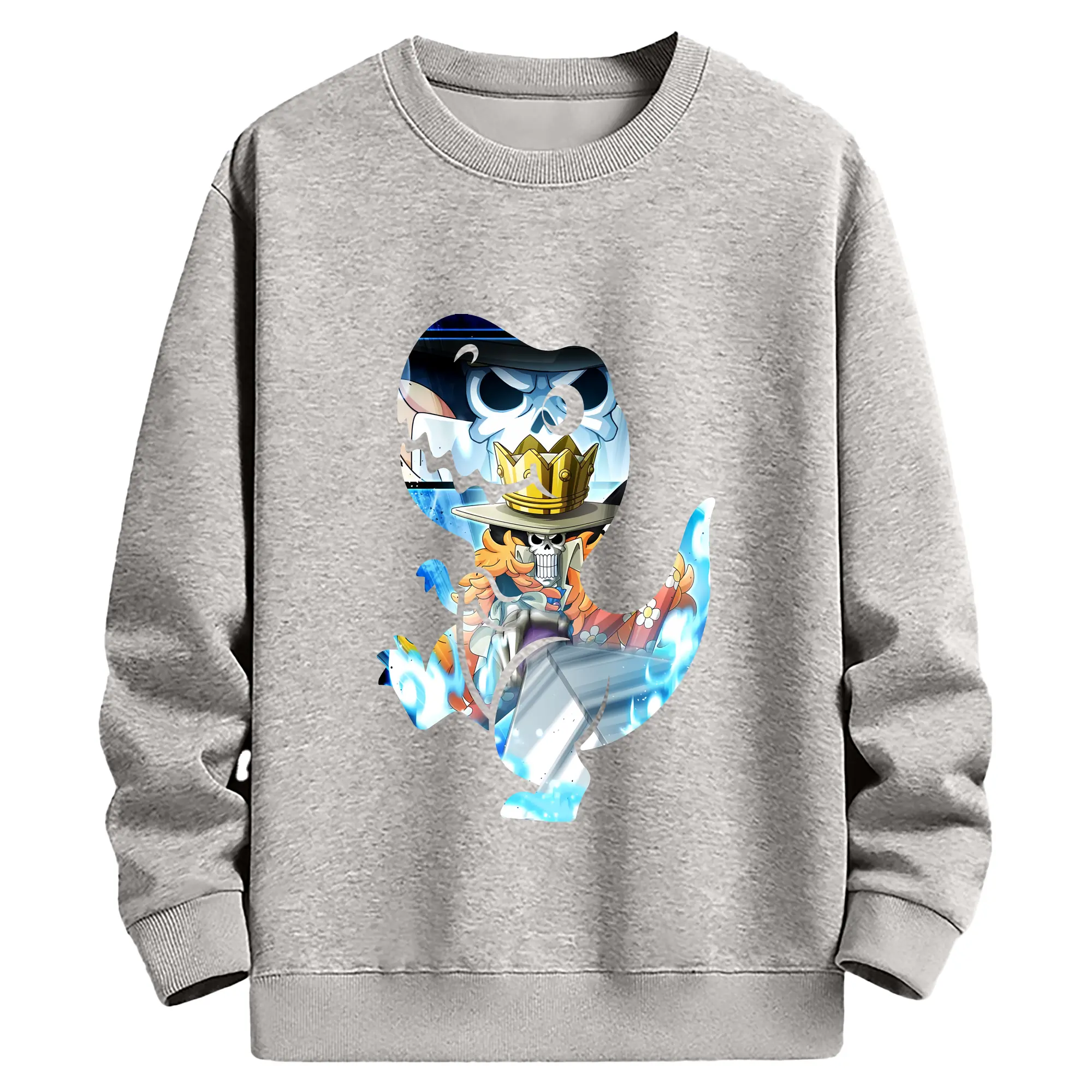 ワンピース グッズ ブルック - 高品質 クルーネック スウェット ・ コットン59% ポリエステル41% ・ ユニセックス 長袖 トレーナー ・ カジュアル デイリー スポーツ 散歩用