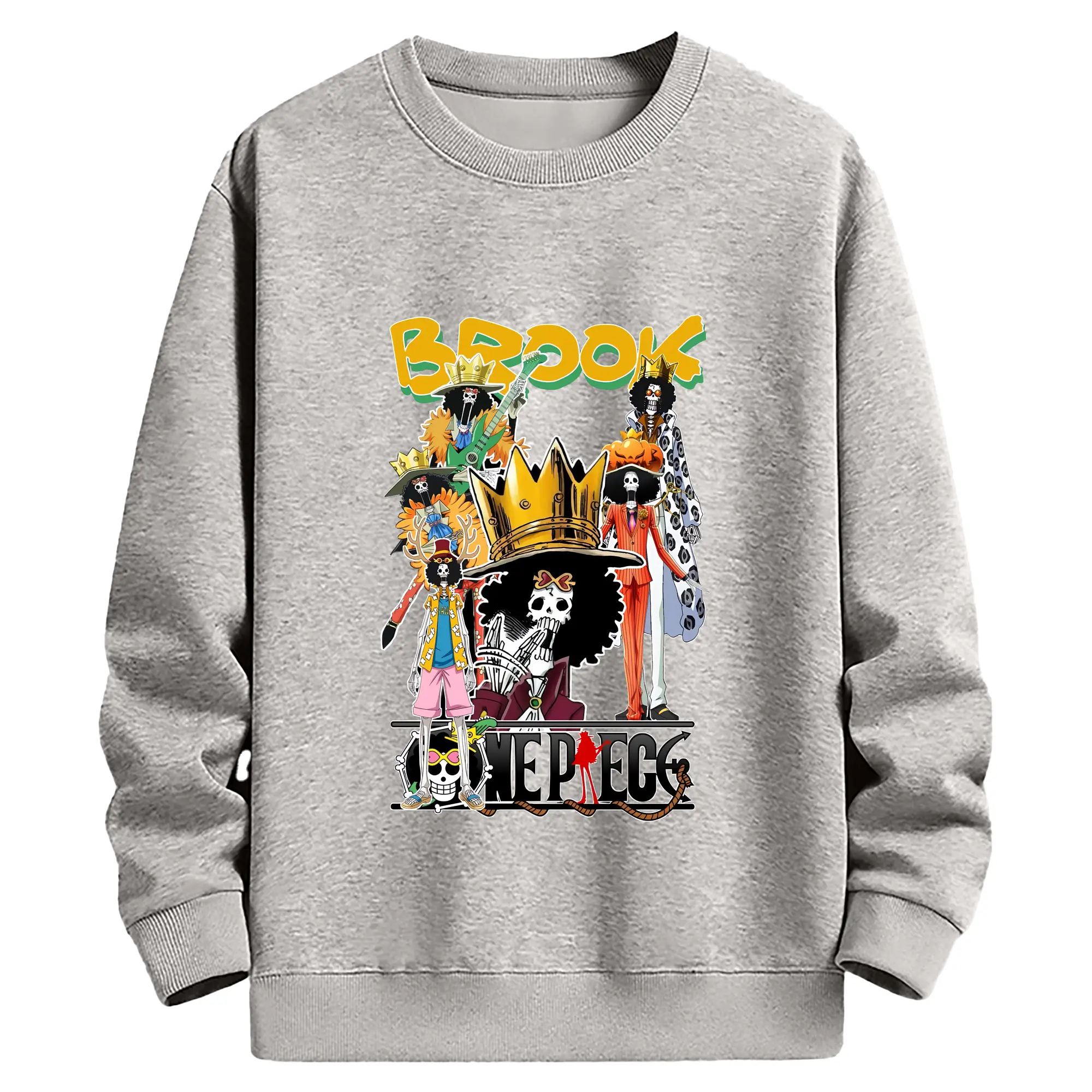 ワンピース グッズ ブルック - 高品質 クルーネック スウェット ・ コットン59% ポリエステル41% ・ ユニセックス 長袖 トレーナー ・ カジュアル デイリー スポーツ 散歩用