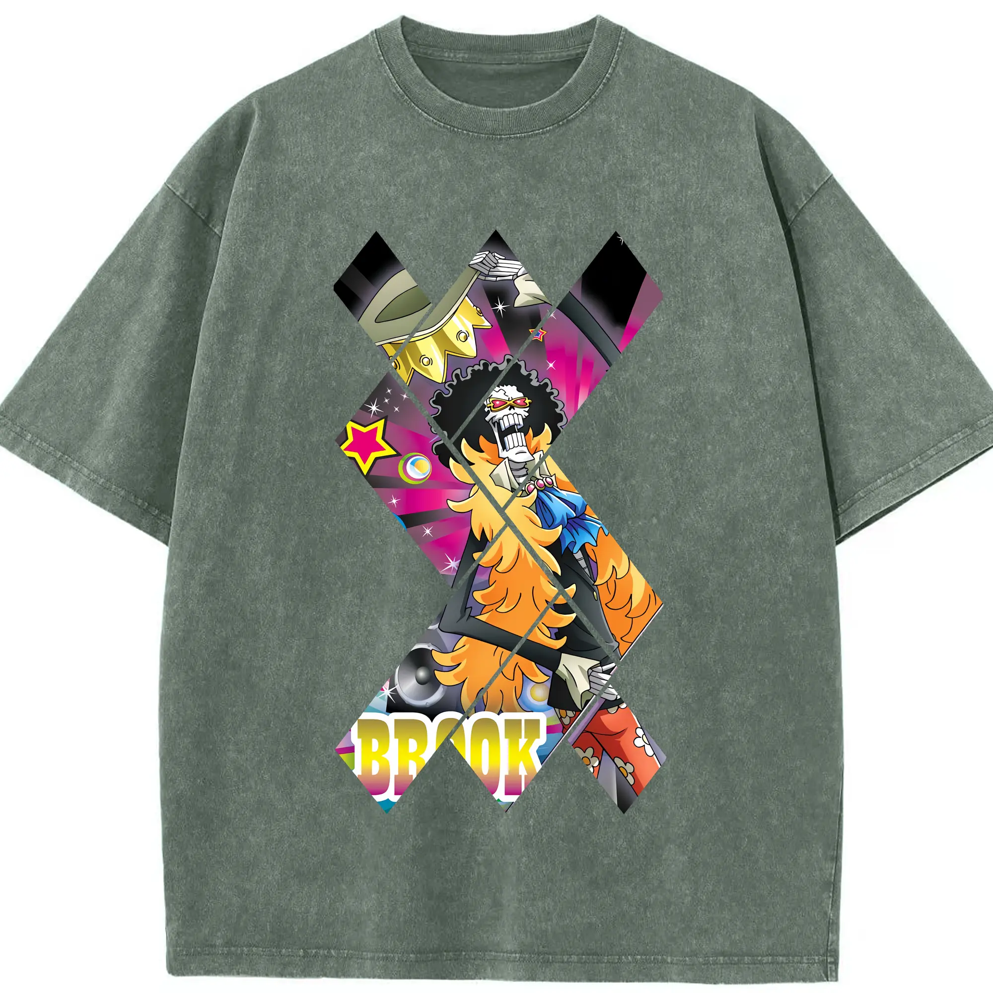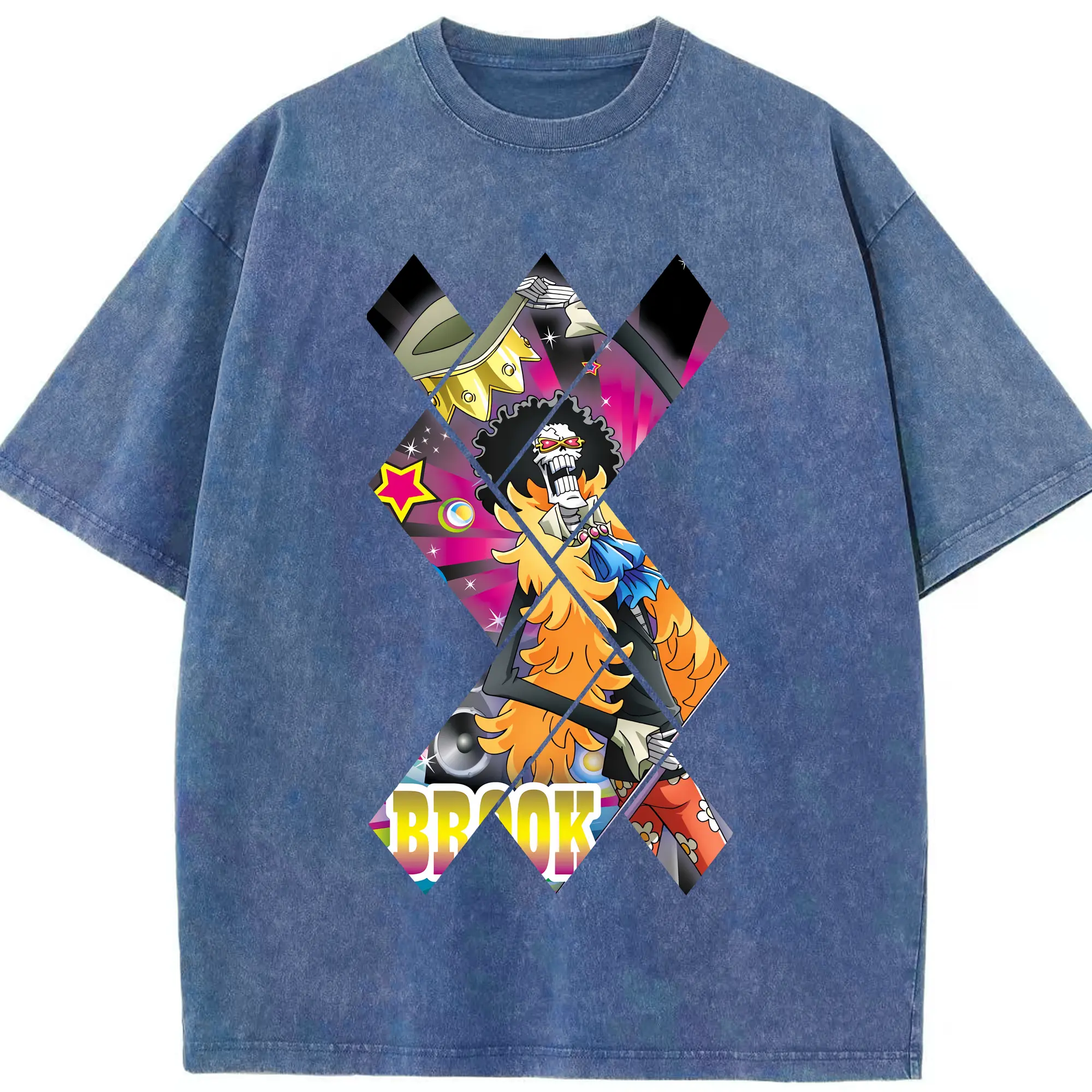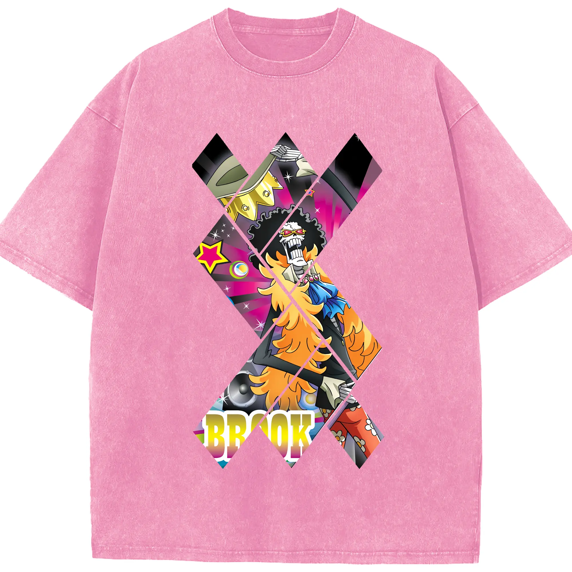 ワンピース グッズ ブルック - 綿100% ヴィンテージ風 半袖Tシャツ ・ 背面プリント ・ 柔らか肌触り ・ 通気性 快適 ・ スポーツ カジュアル 外出用