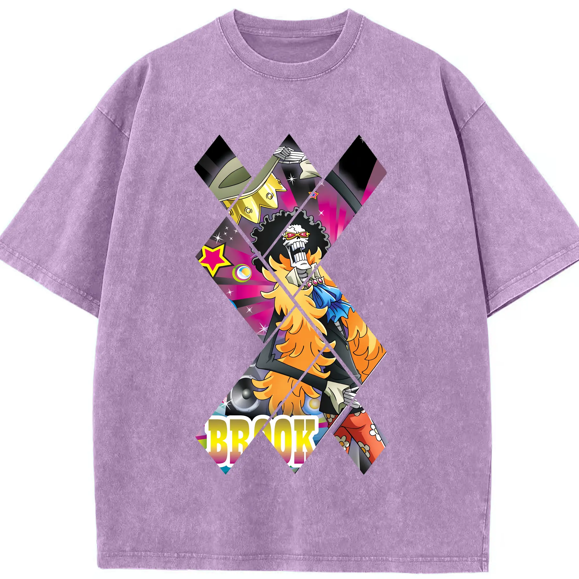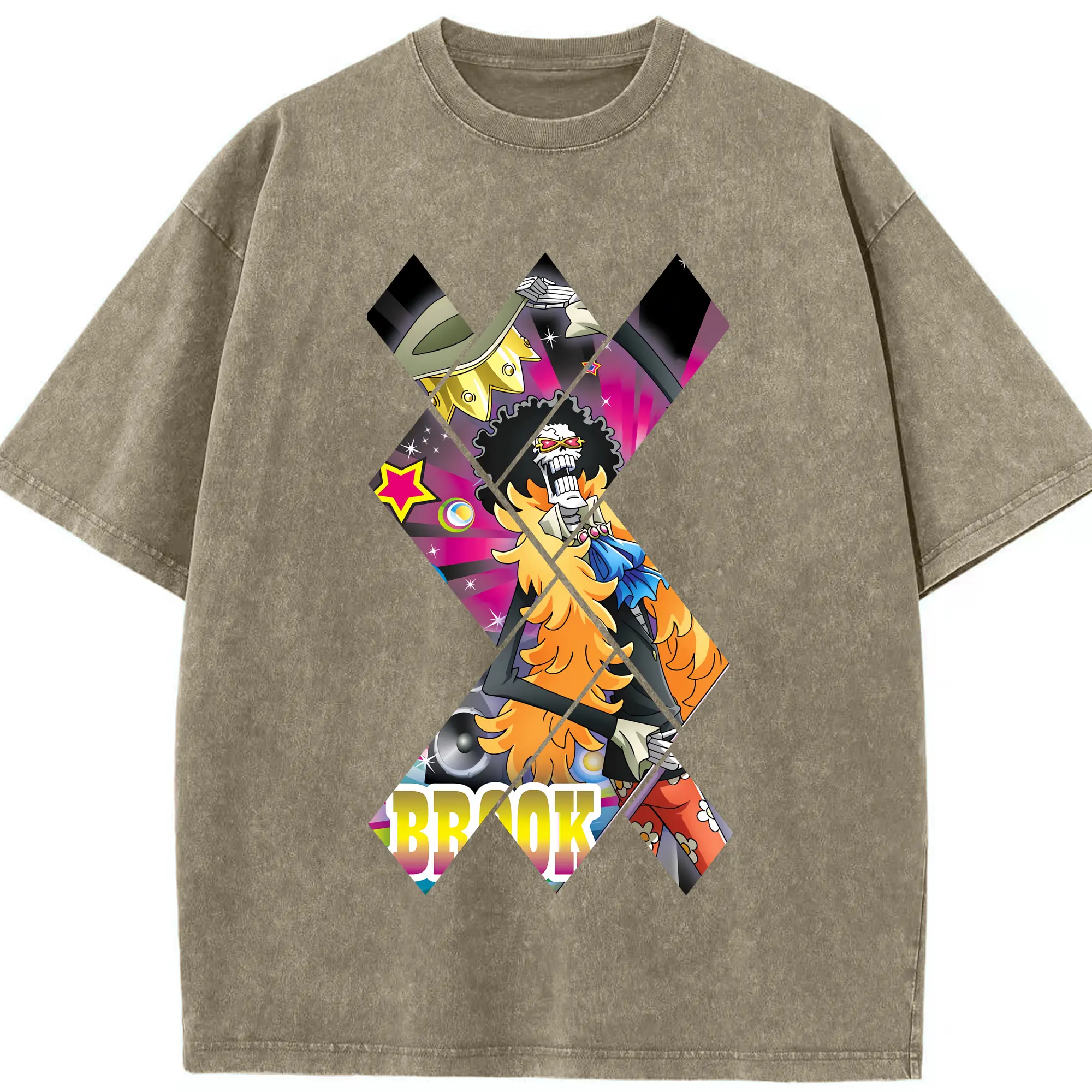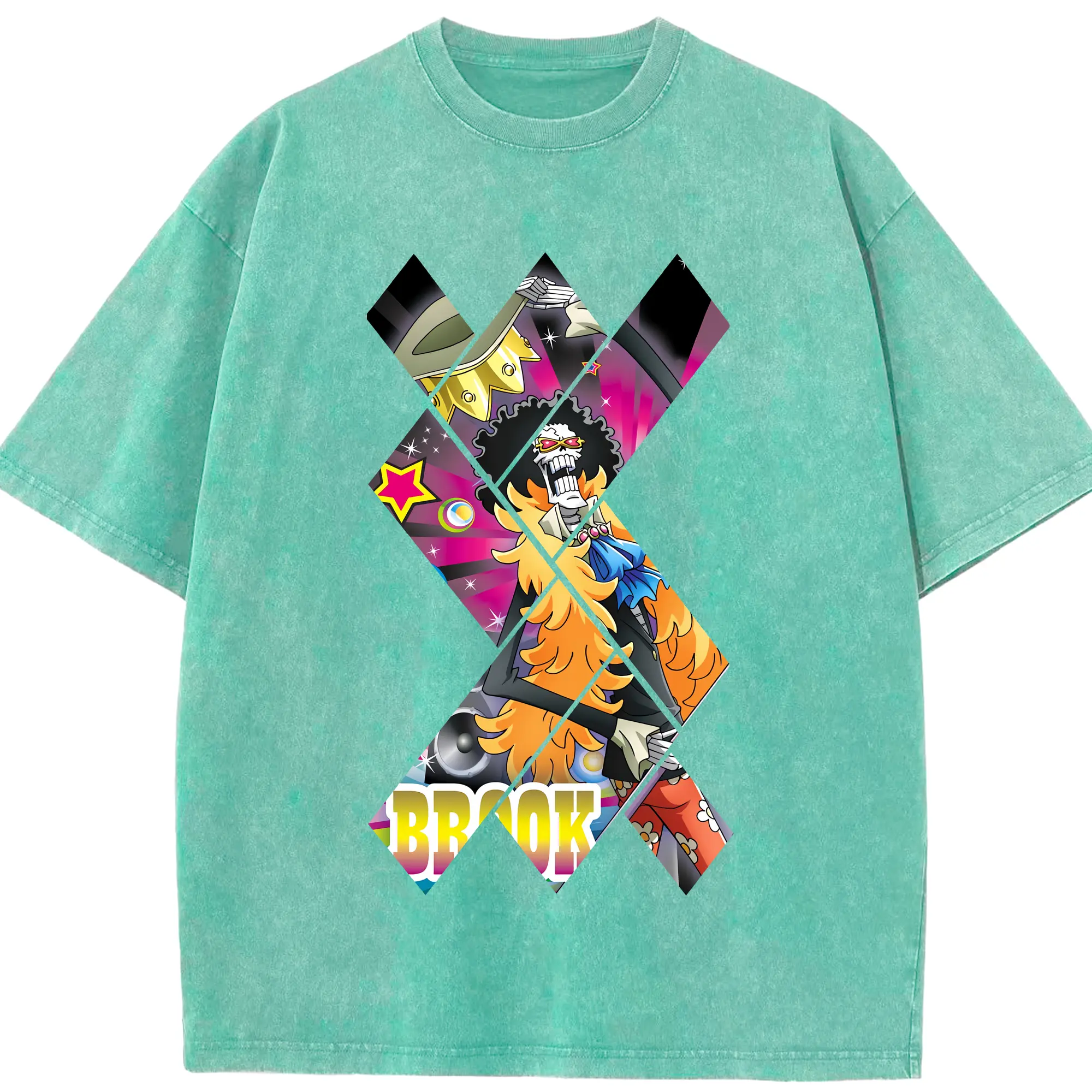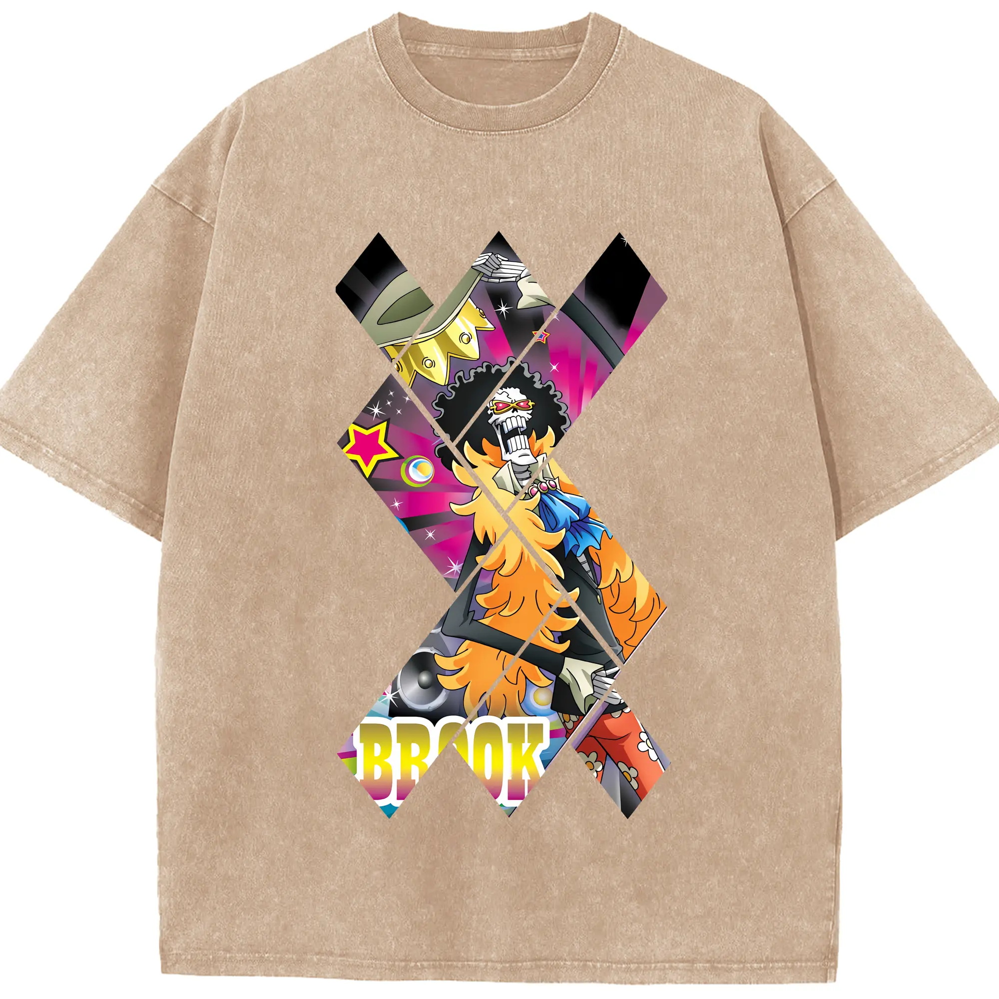 ワンピース グッズ ブルック - 綿100% ヴィンテージ風 半袖Tシャツ ・ 背面プリント ・ 柔らか肌触り ・ 通気性 快適 ・ スポーツ カジュアル 外出用