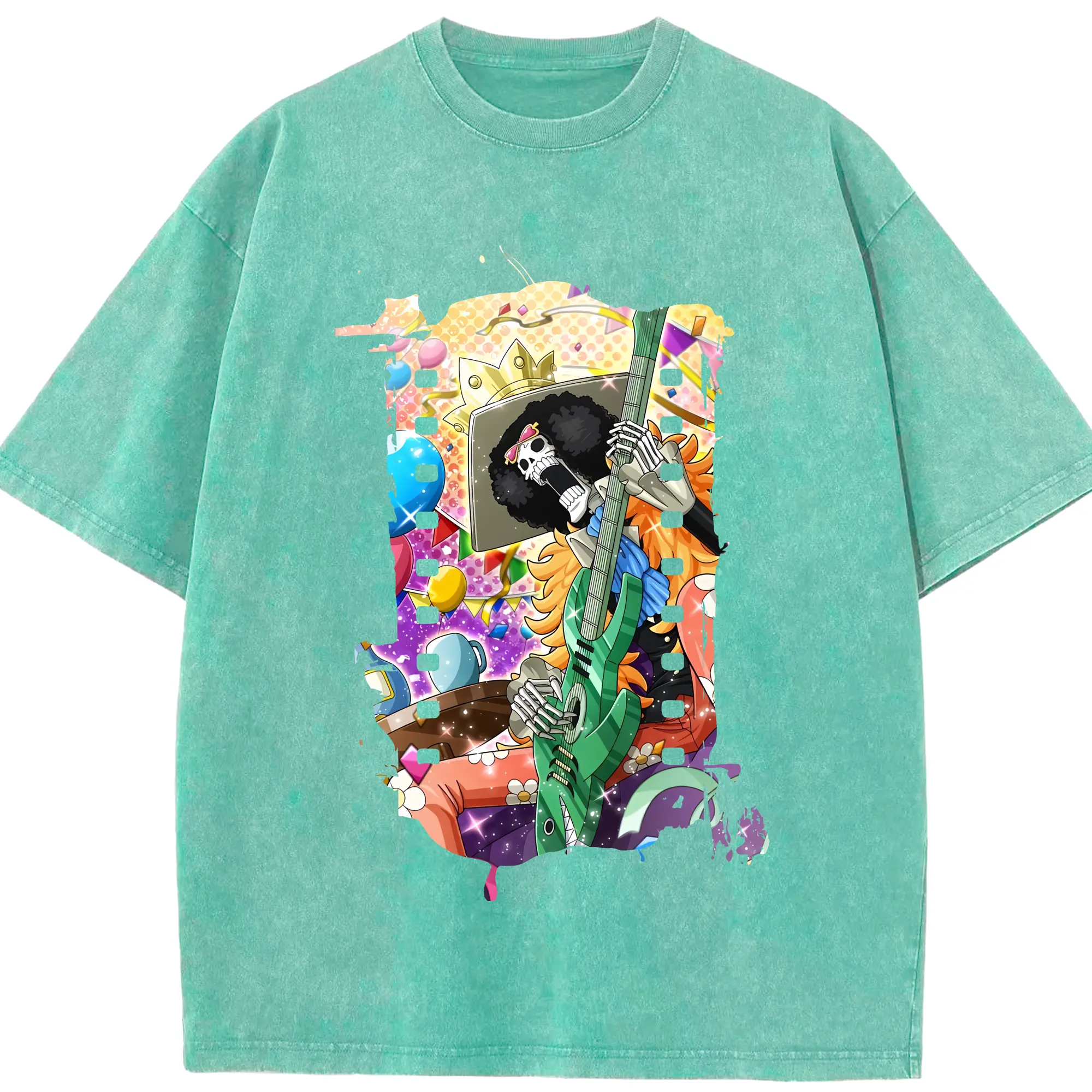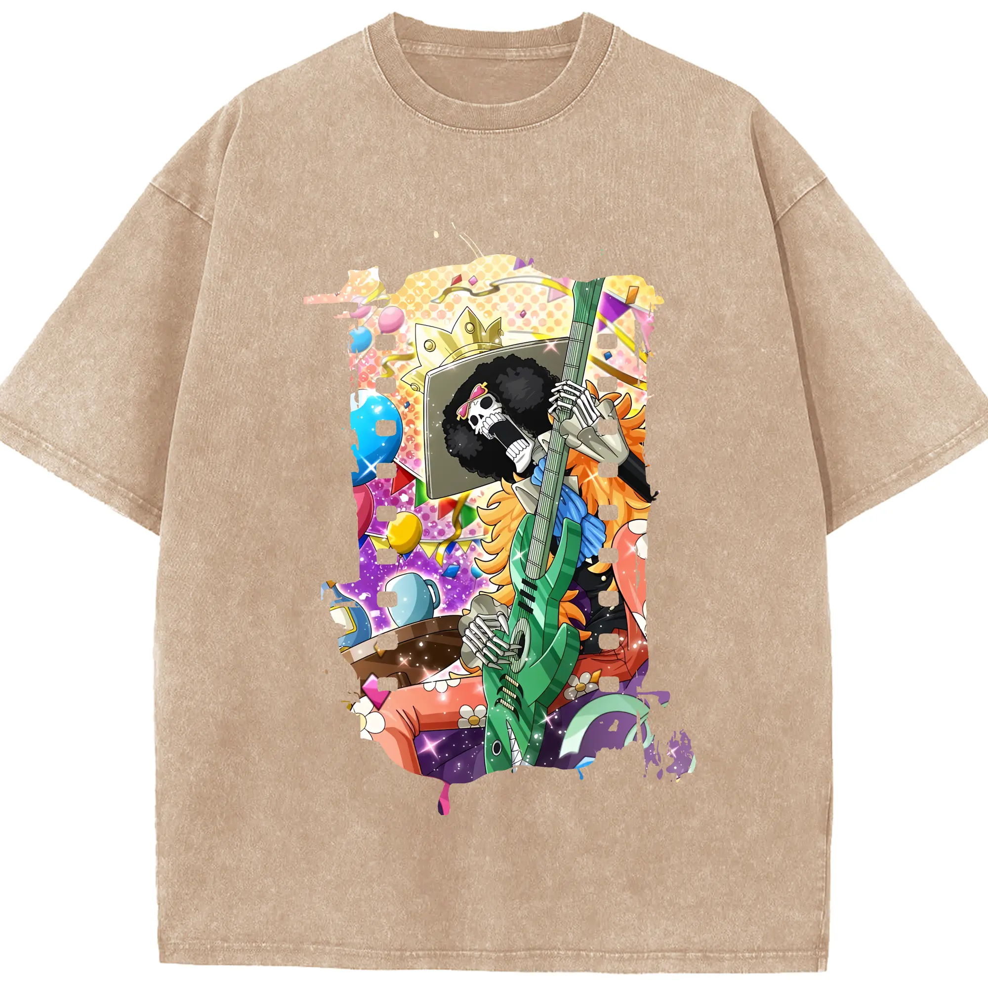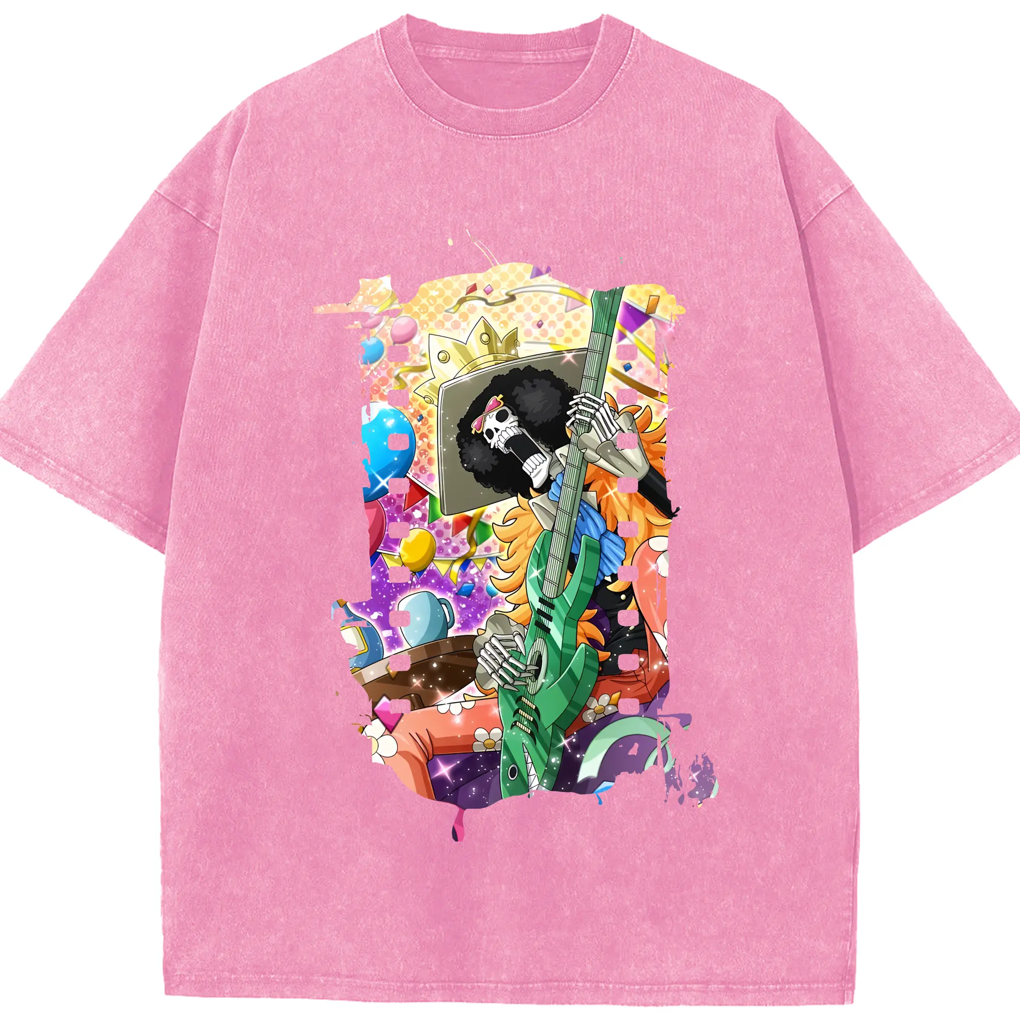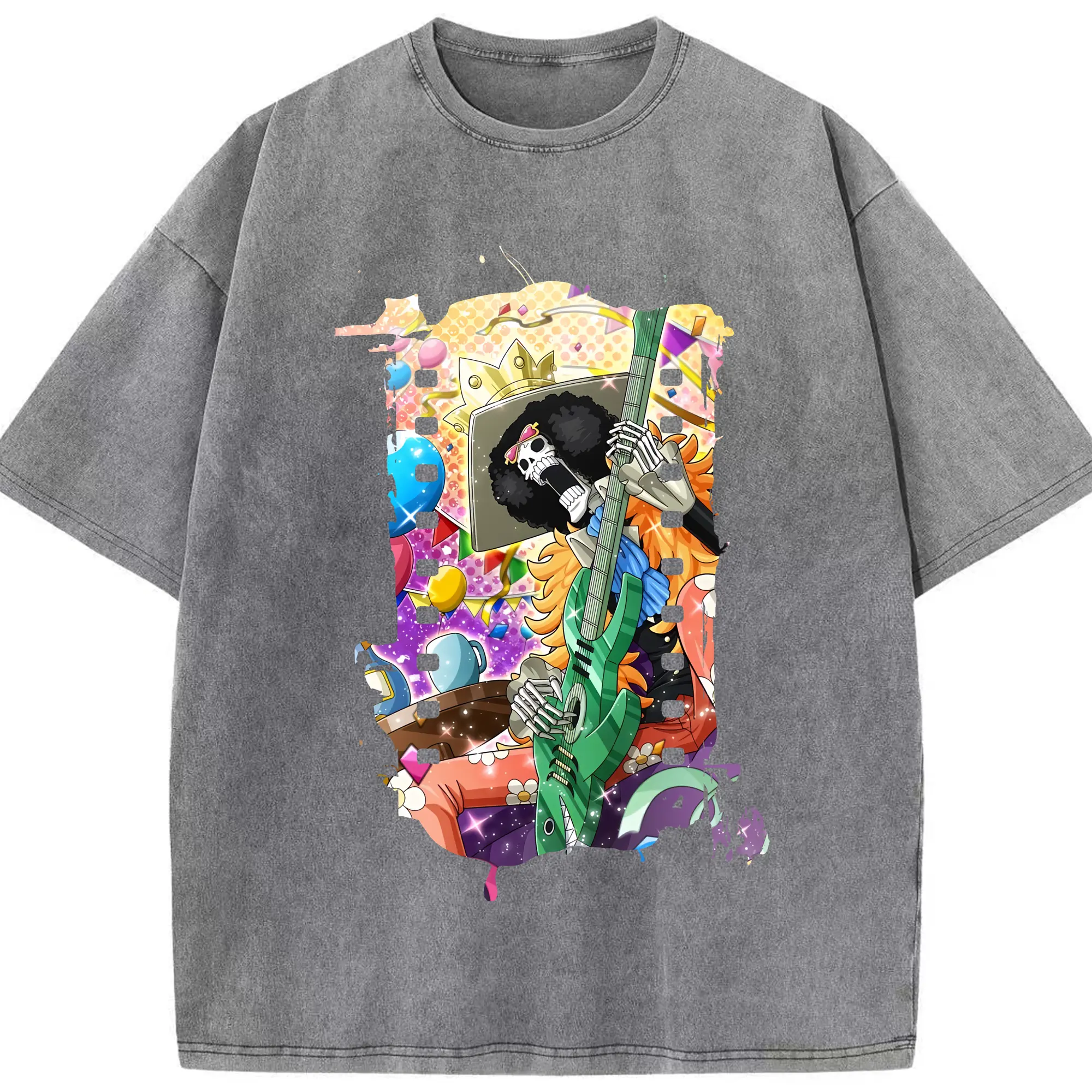 ワンピース グッズ ブルック - 綿100% ヴィンテージ風 半袖Tシャツ ・ 背面プリント ・ 柔らか肌触り ・ 通気性 快適 ・ スポーツ カジュアル 外出用