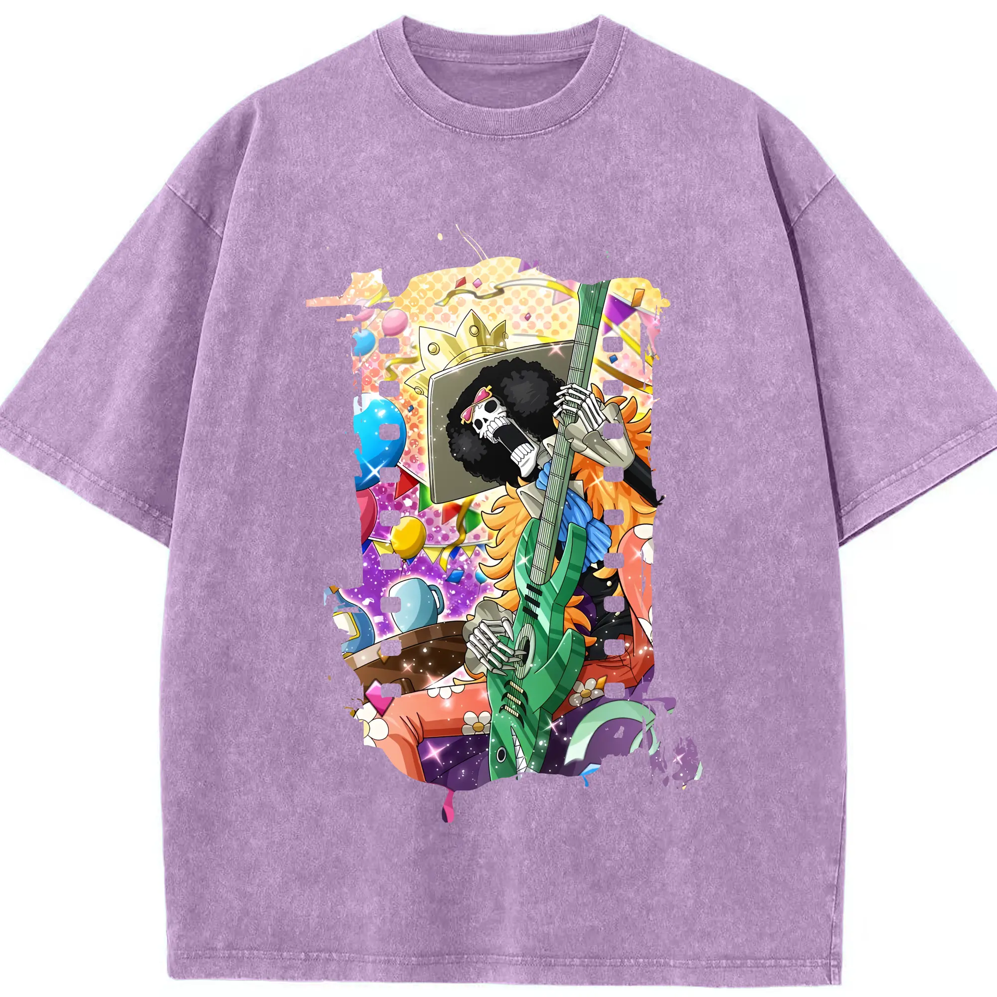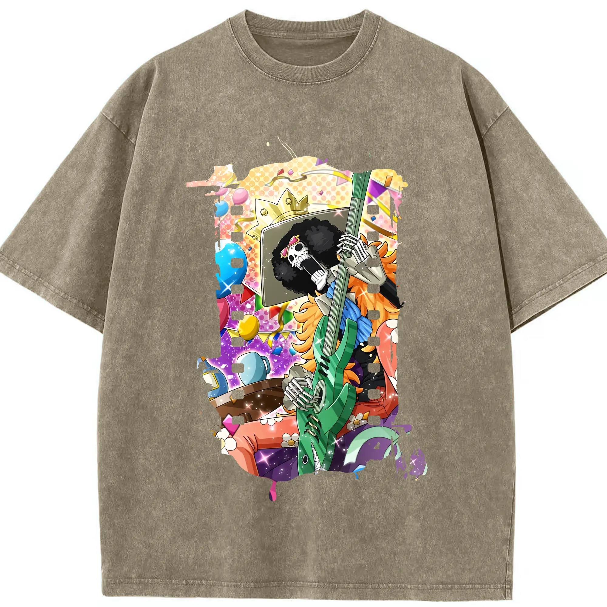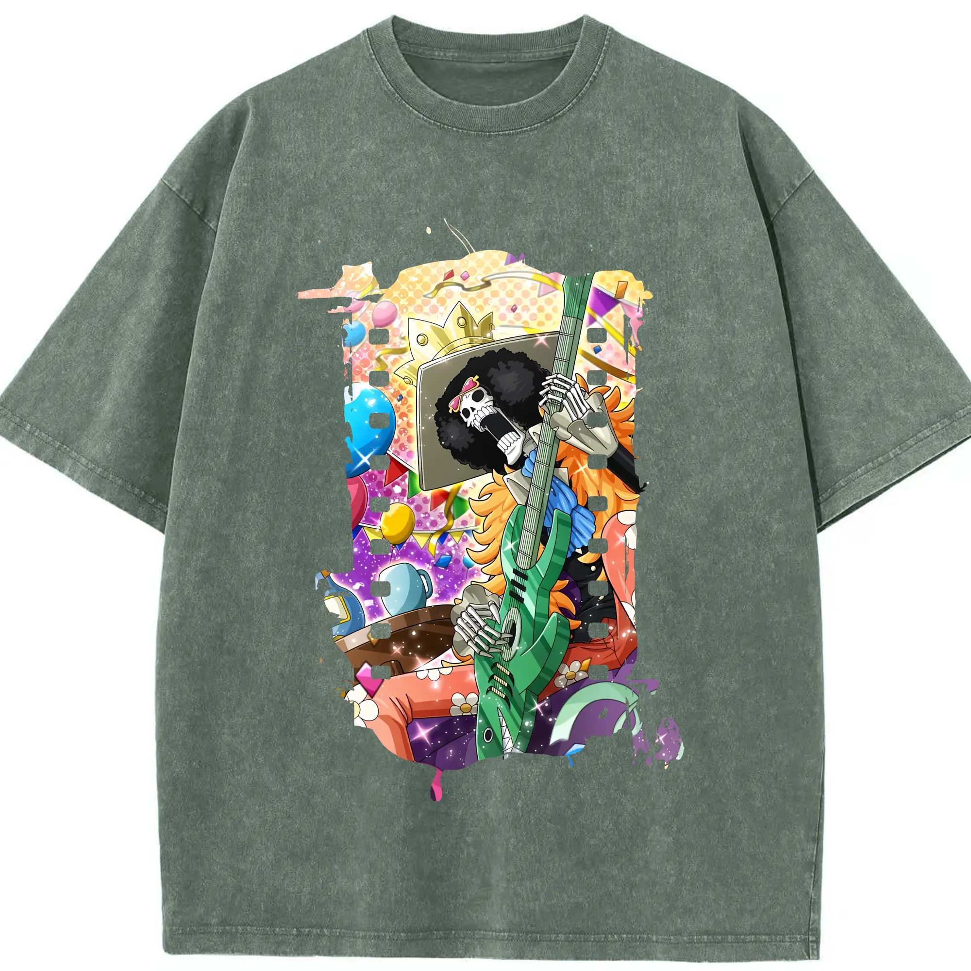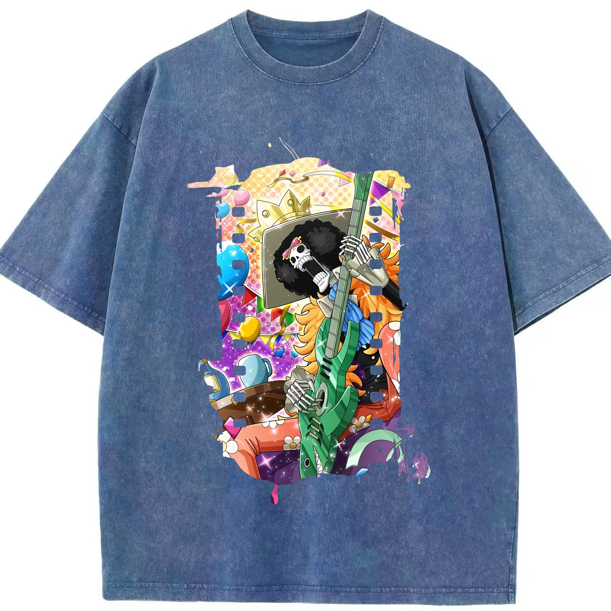 ワンピース グッズ ブルック - 綿100% ヴィンテージ風 半袖Tシャツ ・ 背面プリント ・ 柔らか肌触り ・ 通気性 快適 ・ スポーツ カジュアル 外出用
