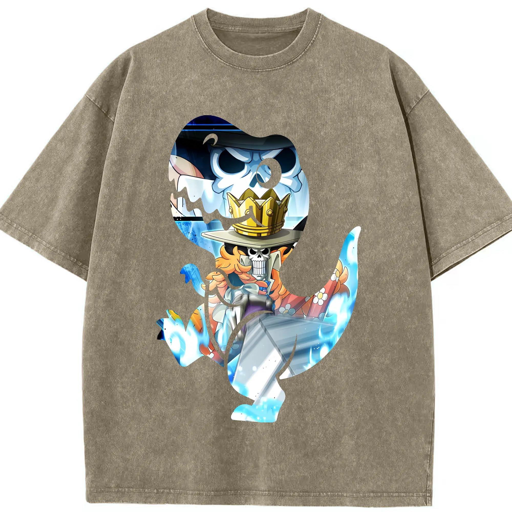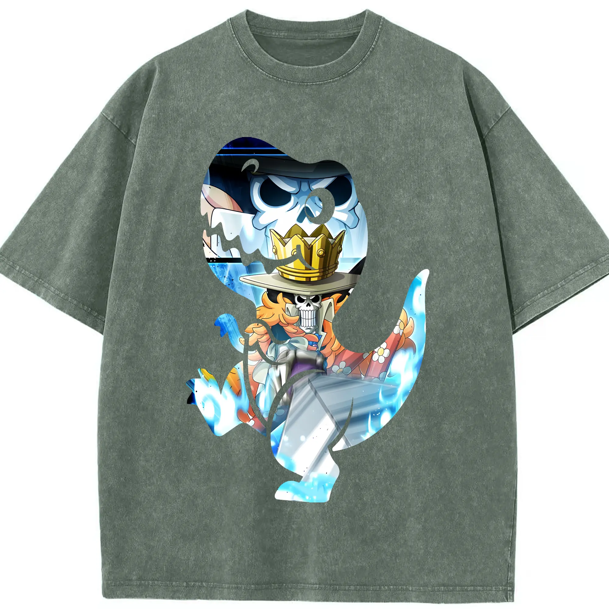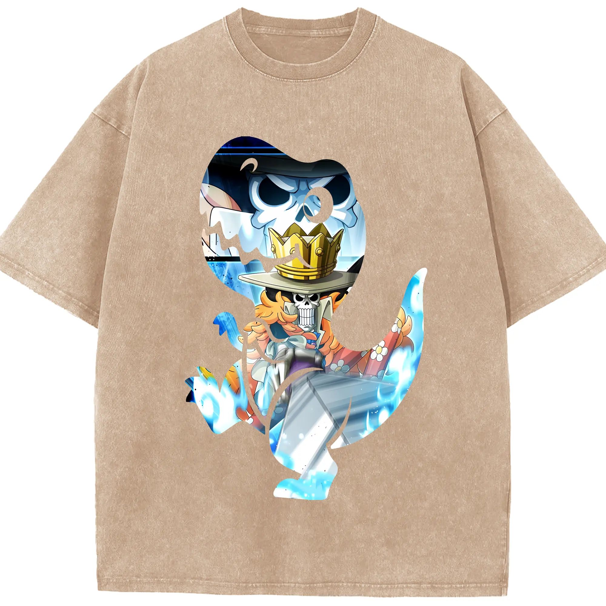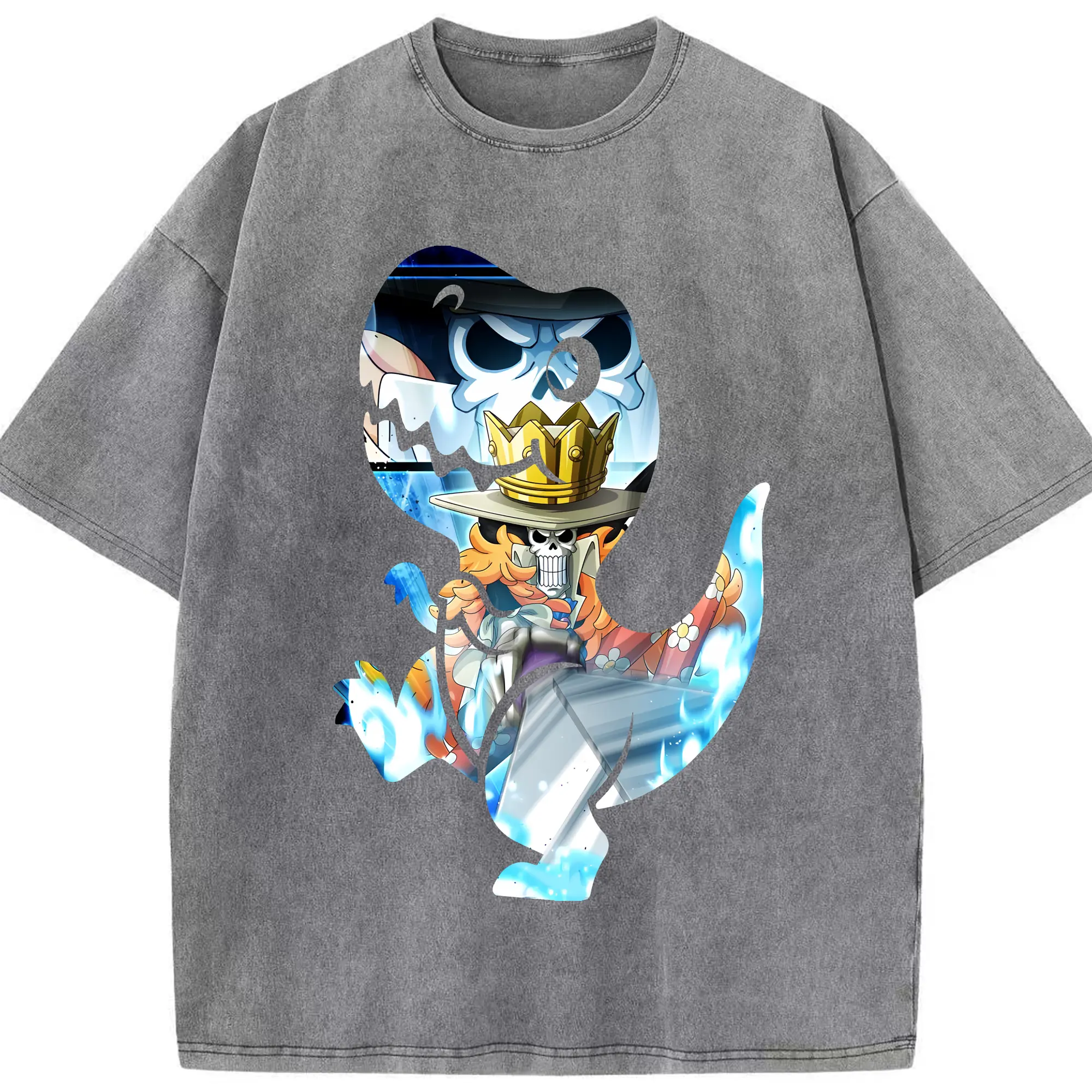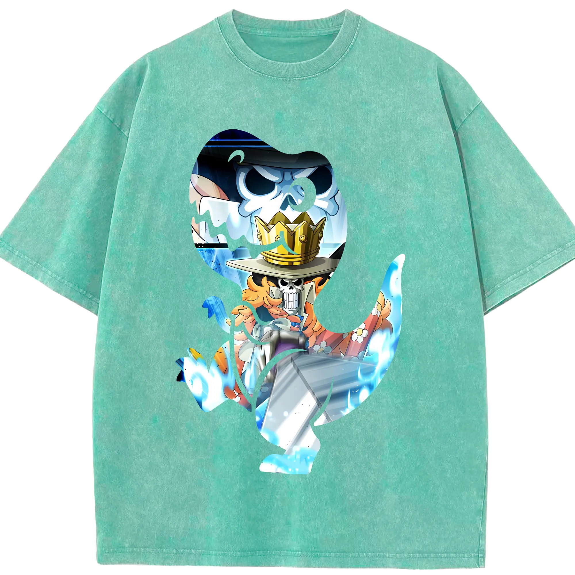 ワンピース グッズ ブルック - 綿100% ヴィンテージ風 半袖Tシャツ ・ 背面プリント ・ 柔らか肌触り ・ 通気性 快適 ・ スポーツ カジュアル 外出用