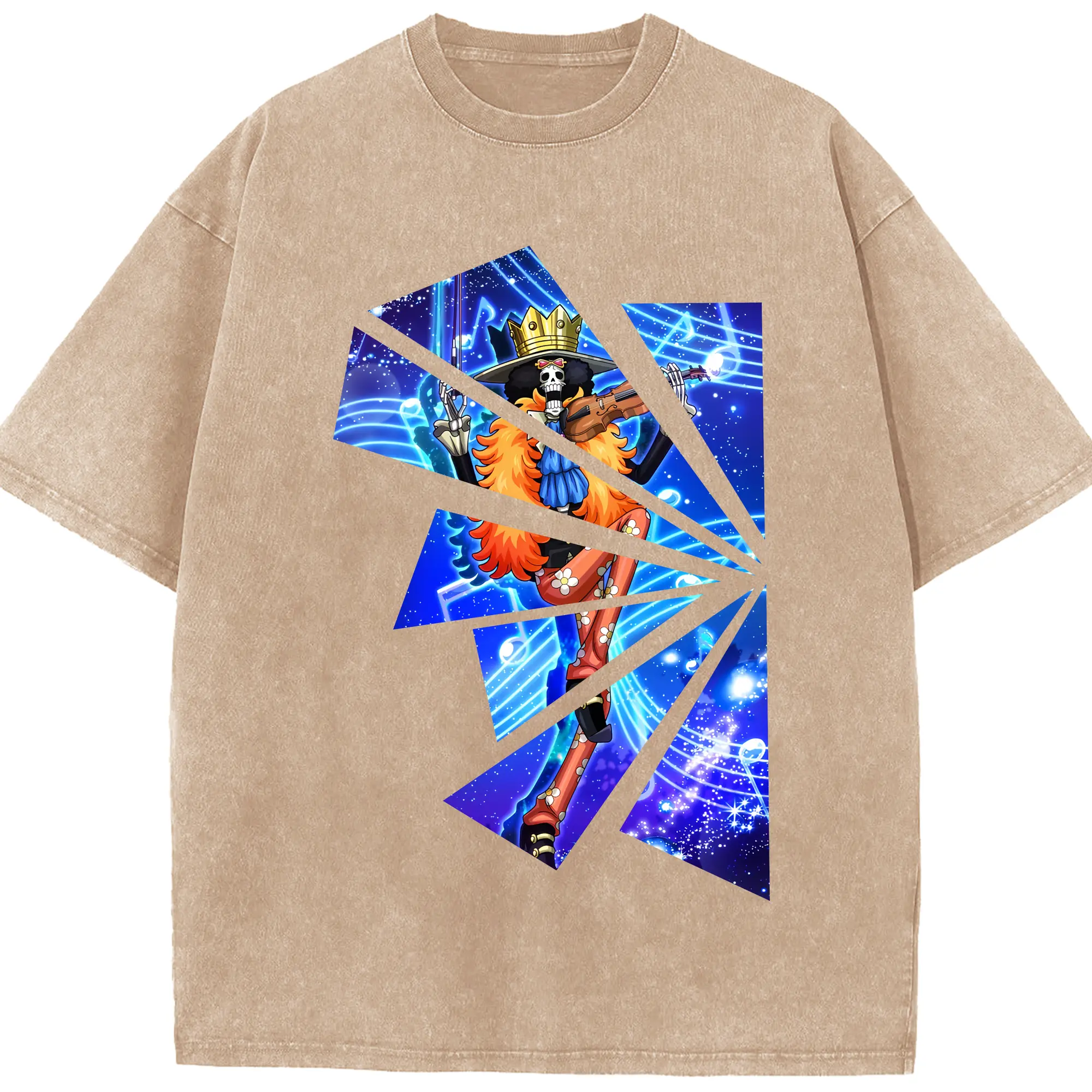 ワンピース グッズ ブルック - 綿100% ヴィンテージ風 半袖Tシャツ ・ 背面プリント ・ 柔らか肌触り ・ 通気性 快適 ・ スポーツ カジュアル 外出用