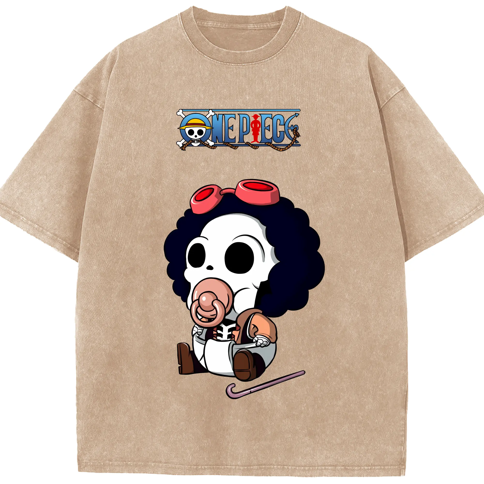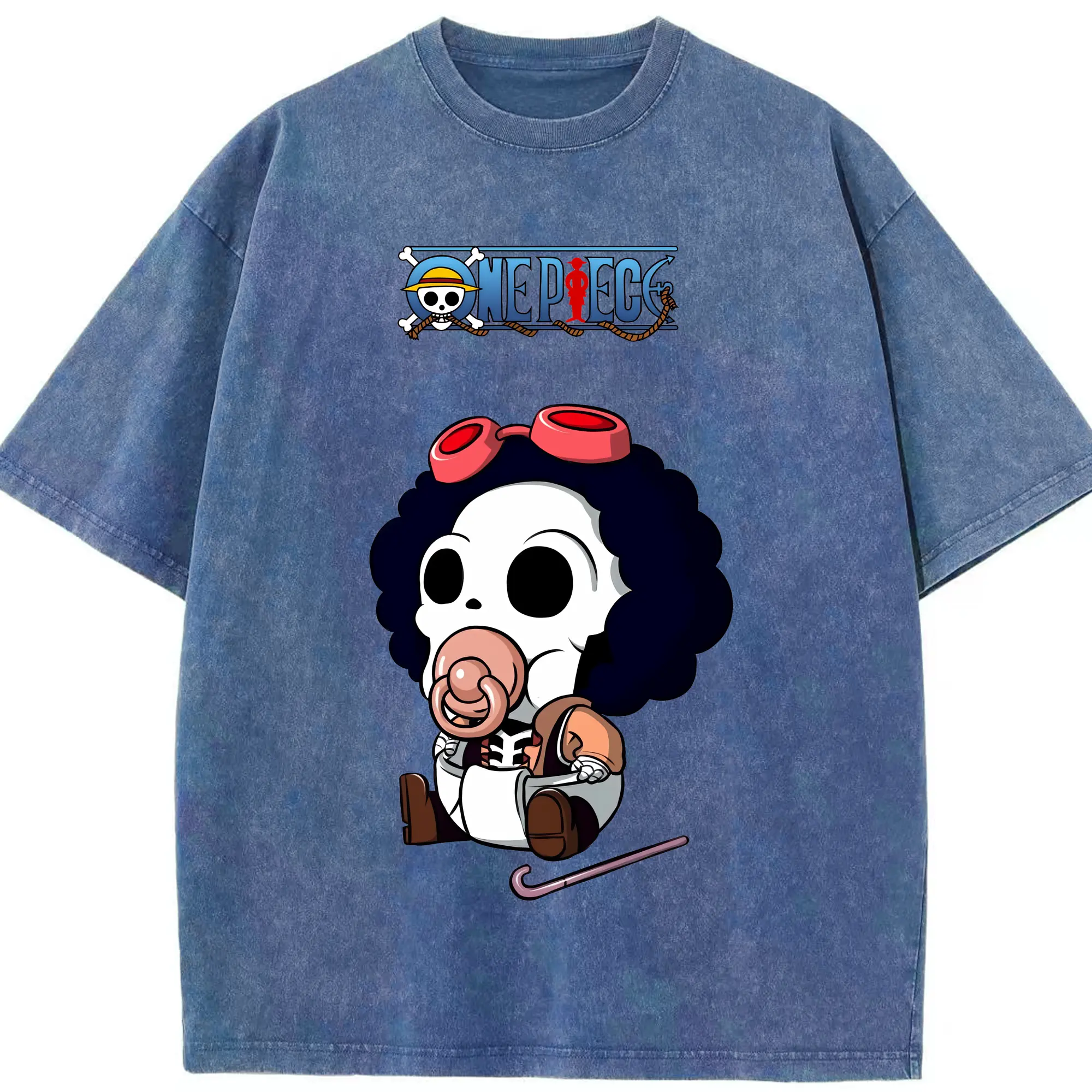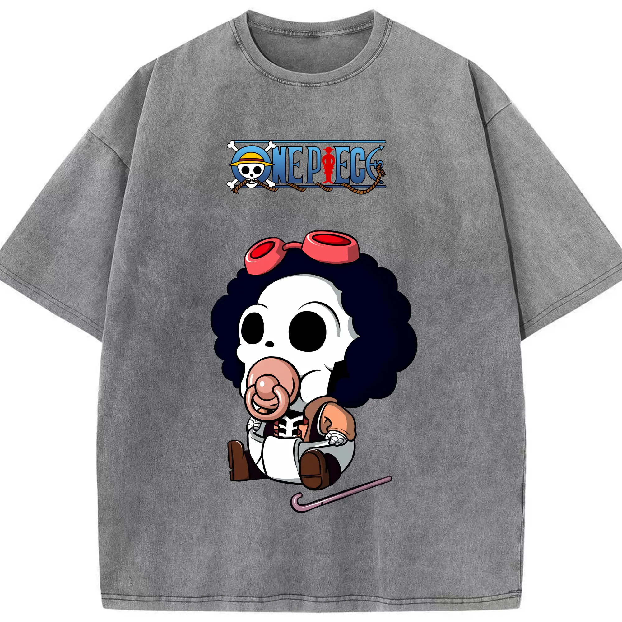ワンピース グッズ ブルック - 綿100% ヴィンテージ風 半袖Tシャツ ・ 背面プリント ・ 柔らか肌触り ・ 通気性 快適 ・ スポーツ カジュアル 外出用