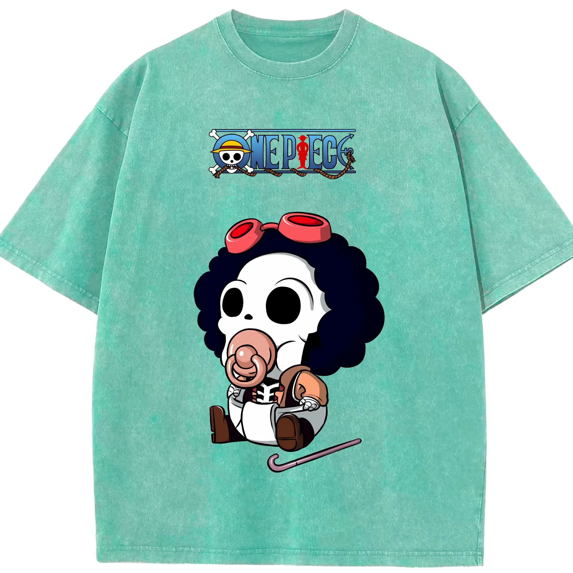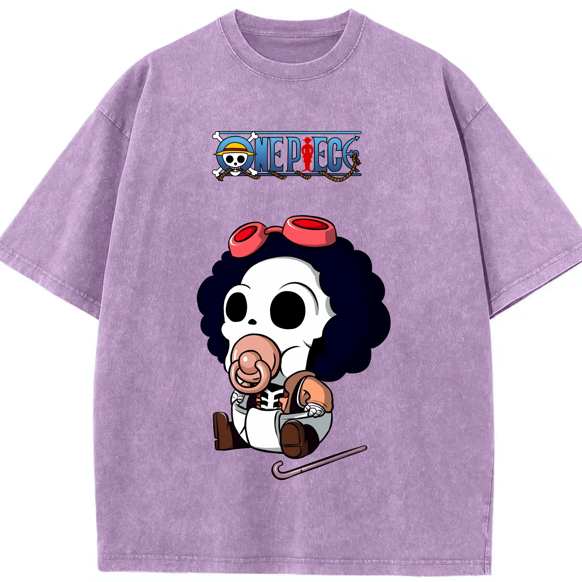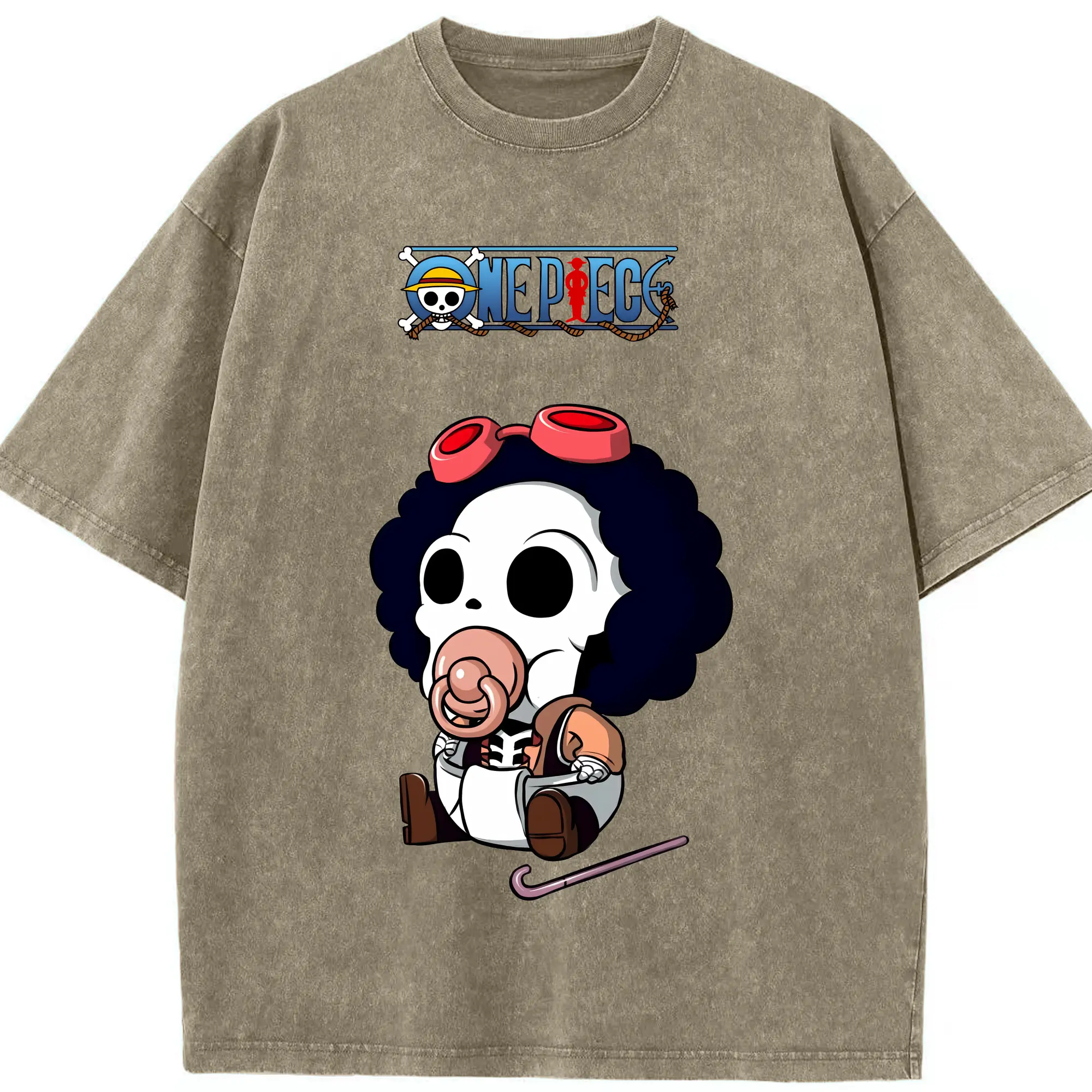 ワンピース グッズ ブルック - 綿100% ヴィンテージ風 半袖Tシャツ ・ 背面プリント ・ 柔らか肌触り ・ 通気性 快適 ・ スポーツ カジュアル 外出用