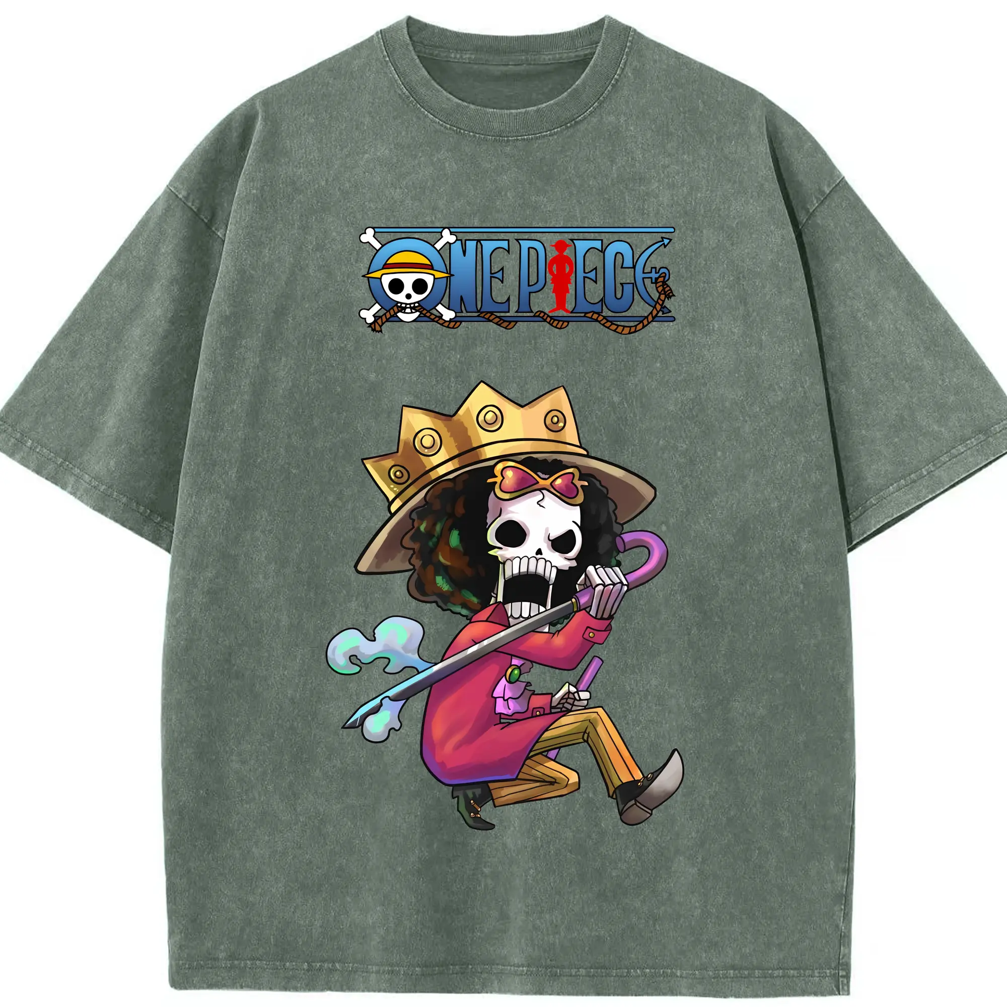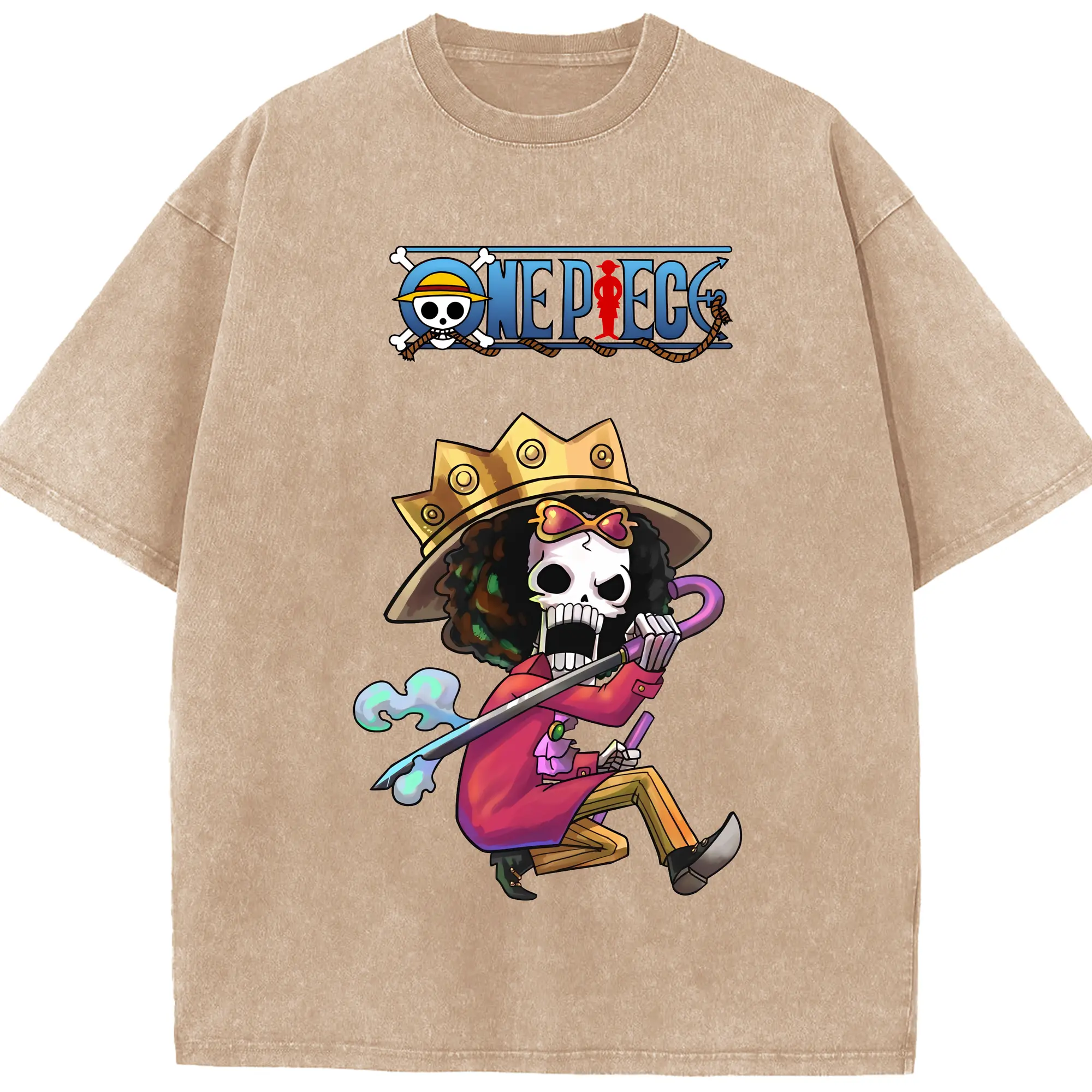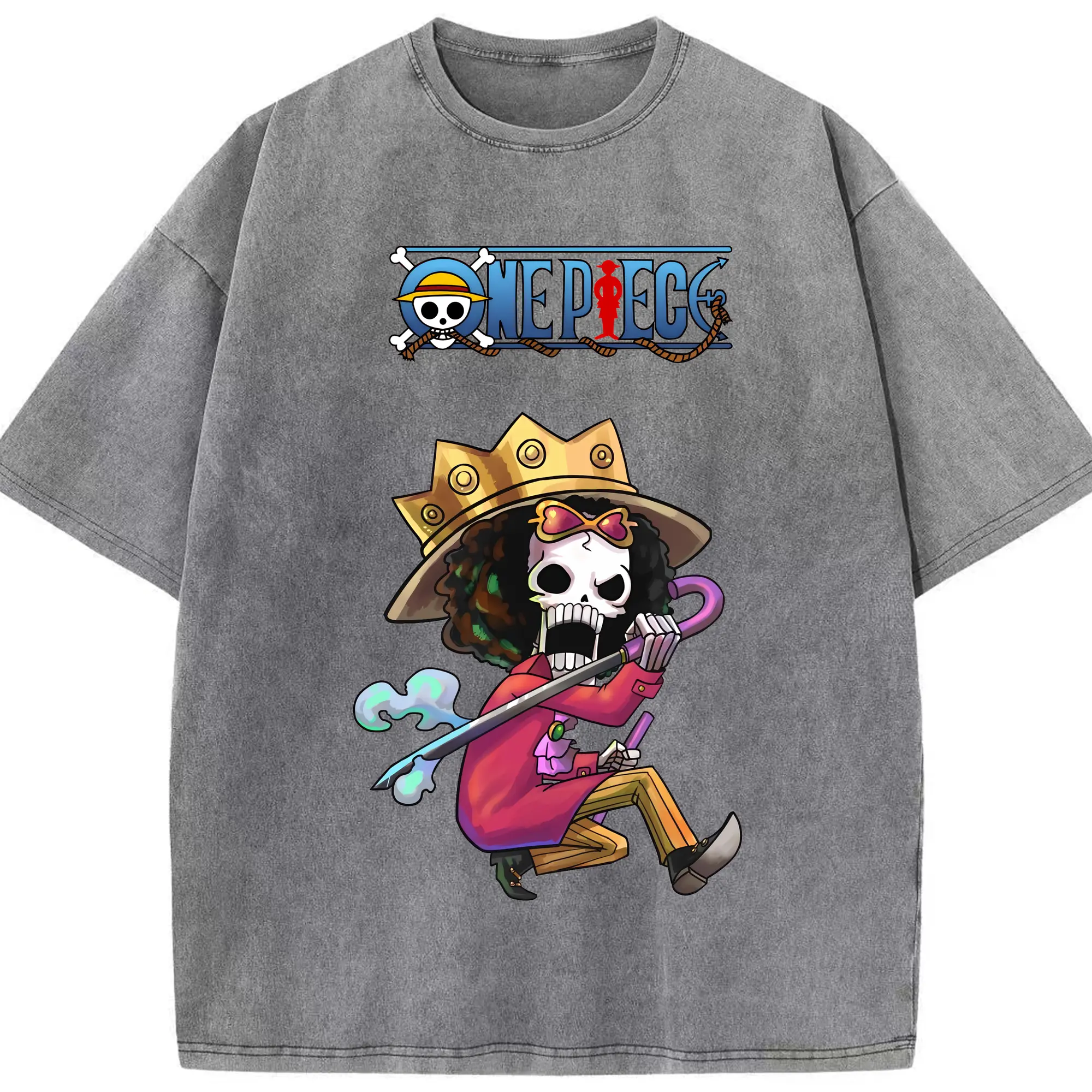 ワンピース グッズ ブルック - 綿100% ヴィンテージ風 半袖Tシャツ ・ 背面プリント ・ 柔らか肌触り ・ 通気性 快適 ・ スポーツ カジュアル 外出用