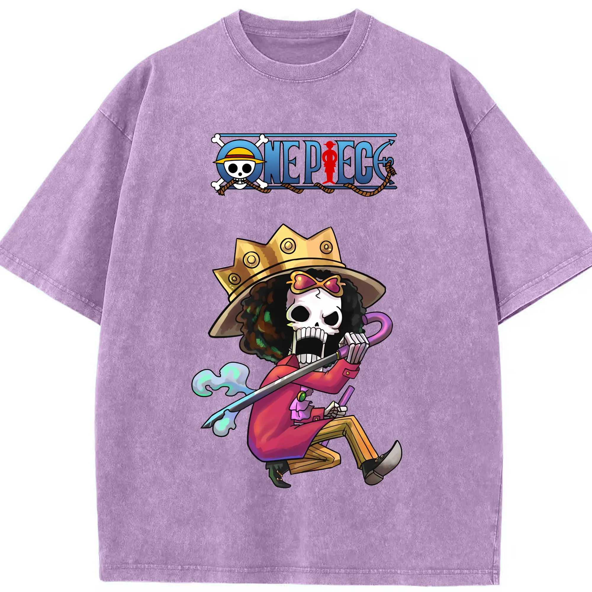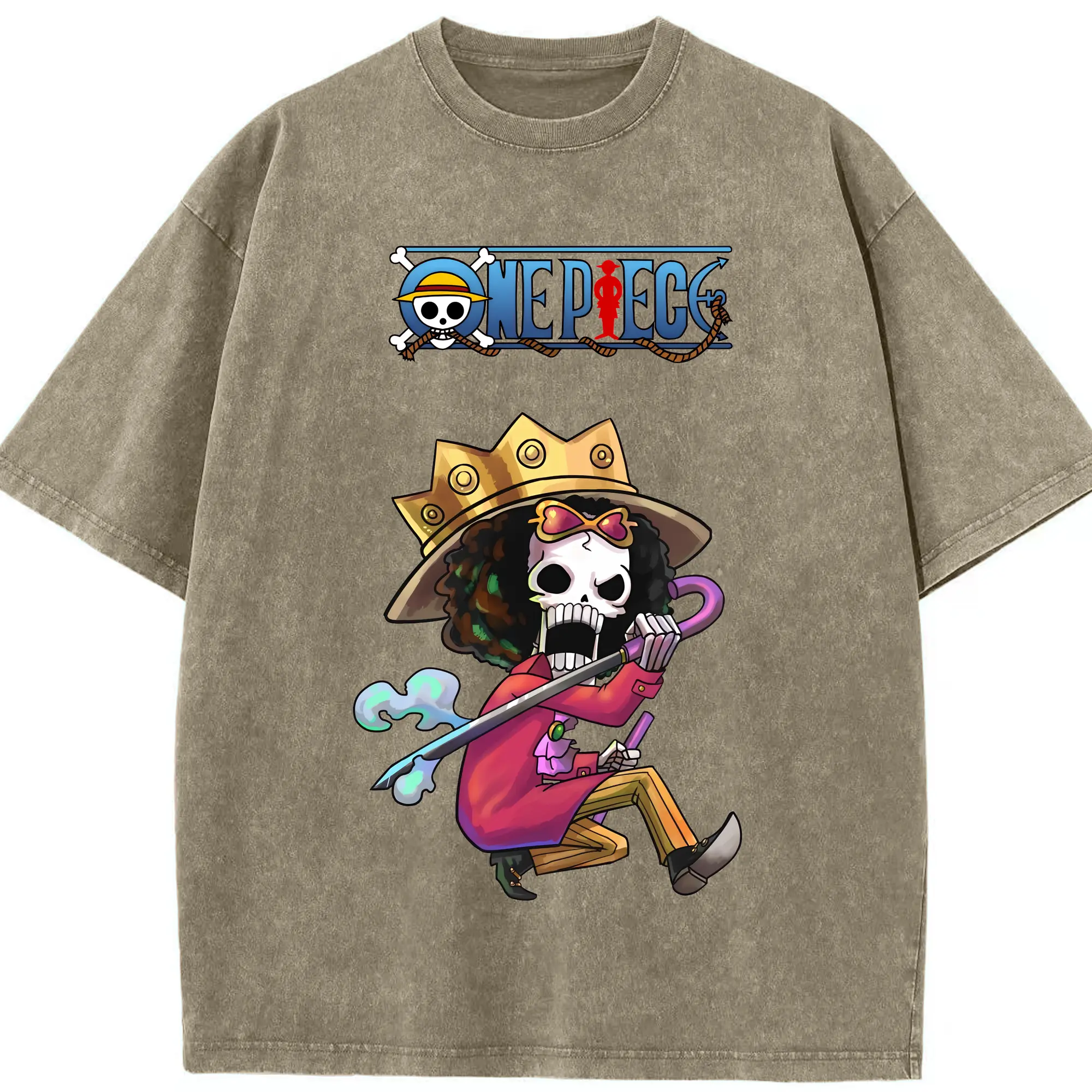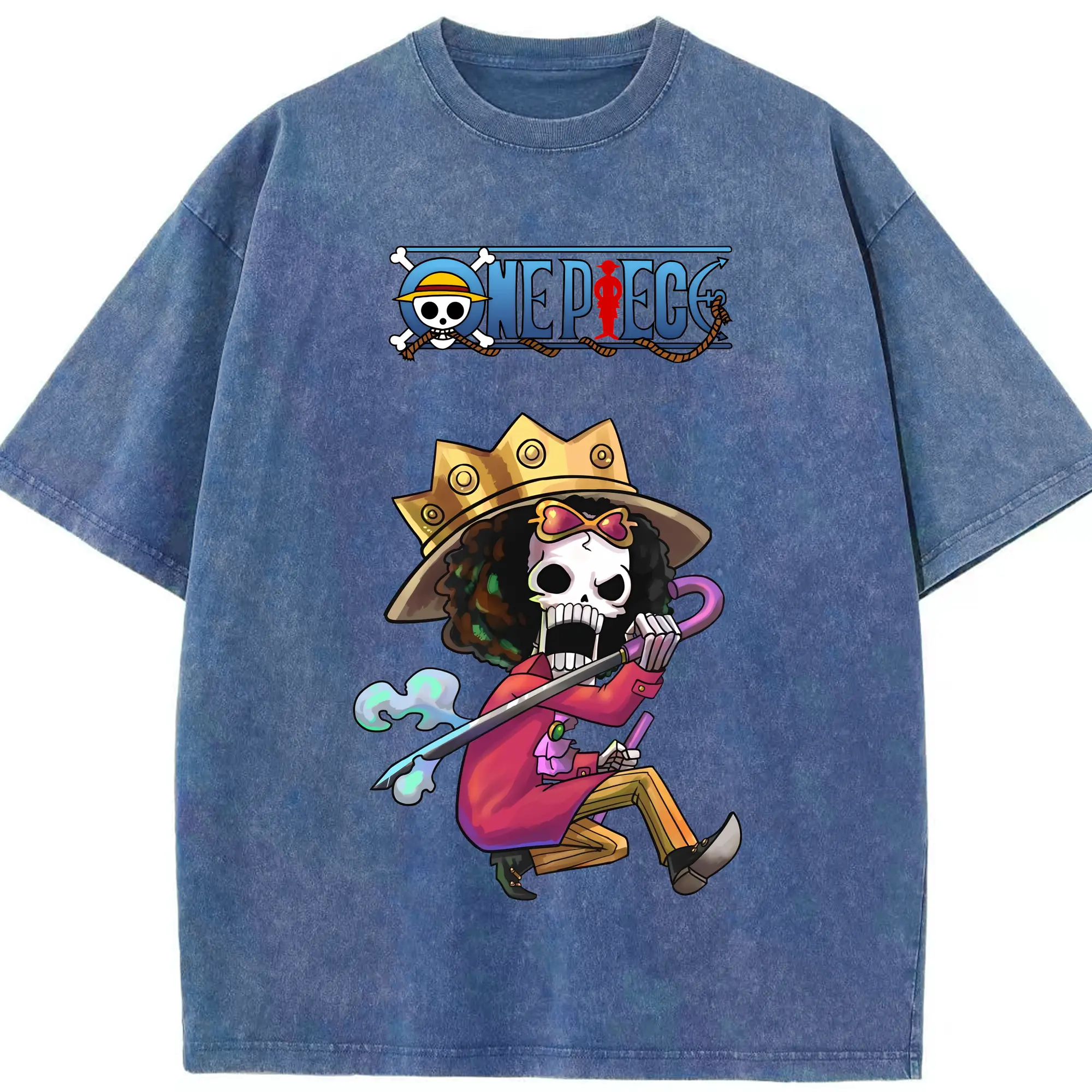 ワンピース グッズ ブルック - 綿100% ヴィンテージ風 半袖Tシャツ ・ 背面プリント ・ 柔らか肌触り ・ 通気性 快適 ・ スポーツ カジュアル 外出用