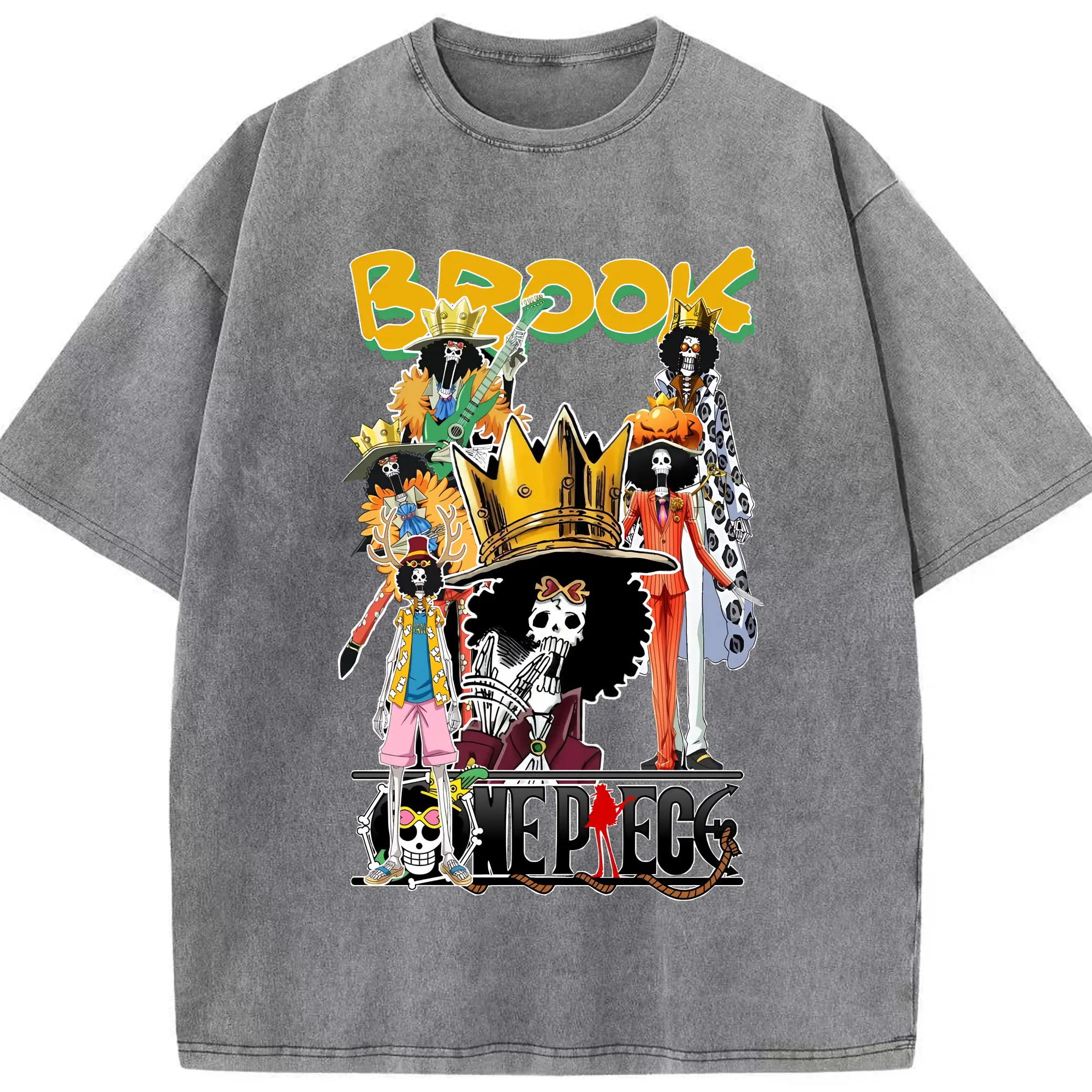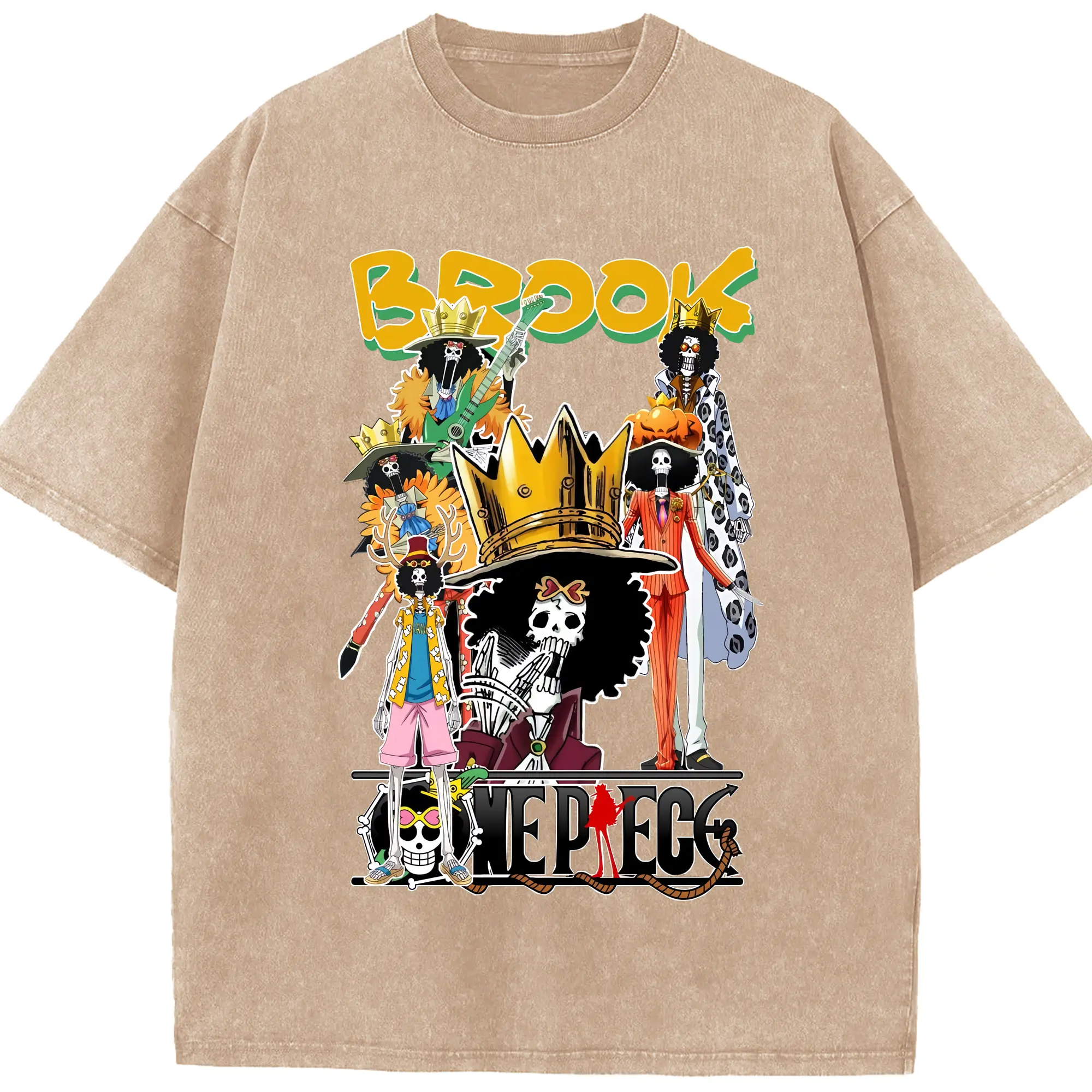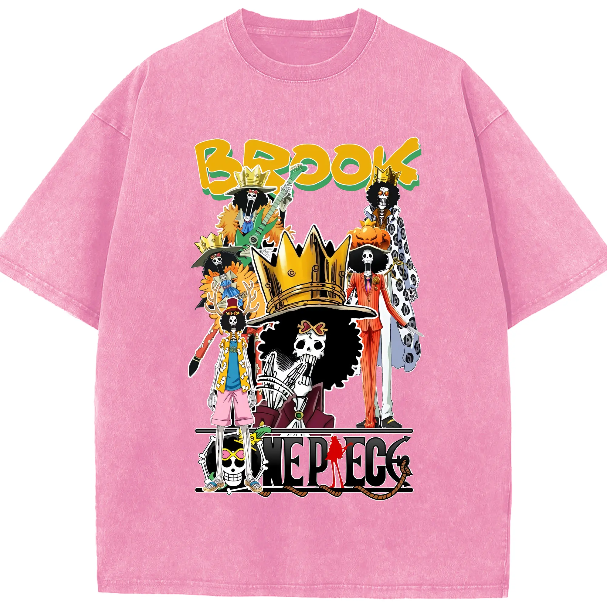 ワンピース グッズ ブルック - 綿100% ヴィンテージ風 半袖Tシャツ ・ 背面プリント ・ 柔らか肌触り ・ 通気性 快適 ・ スポーツ カジュアル 外出用