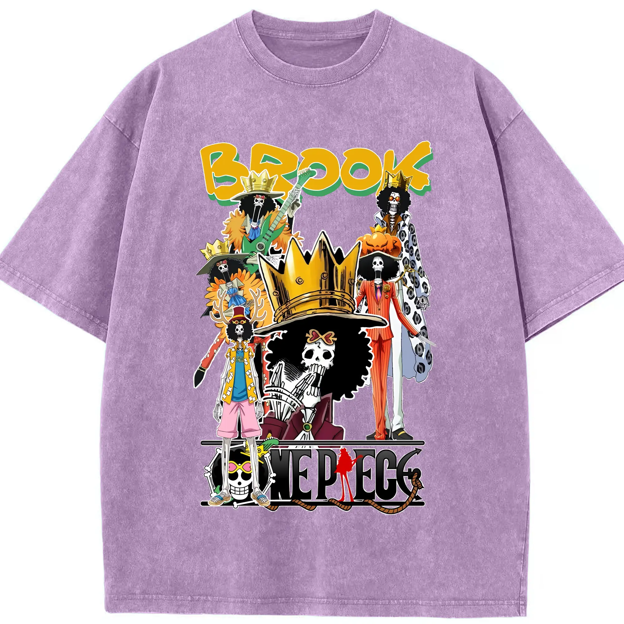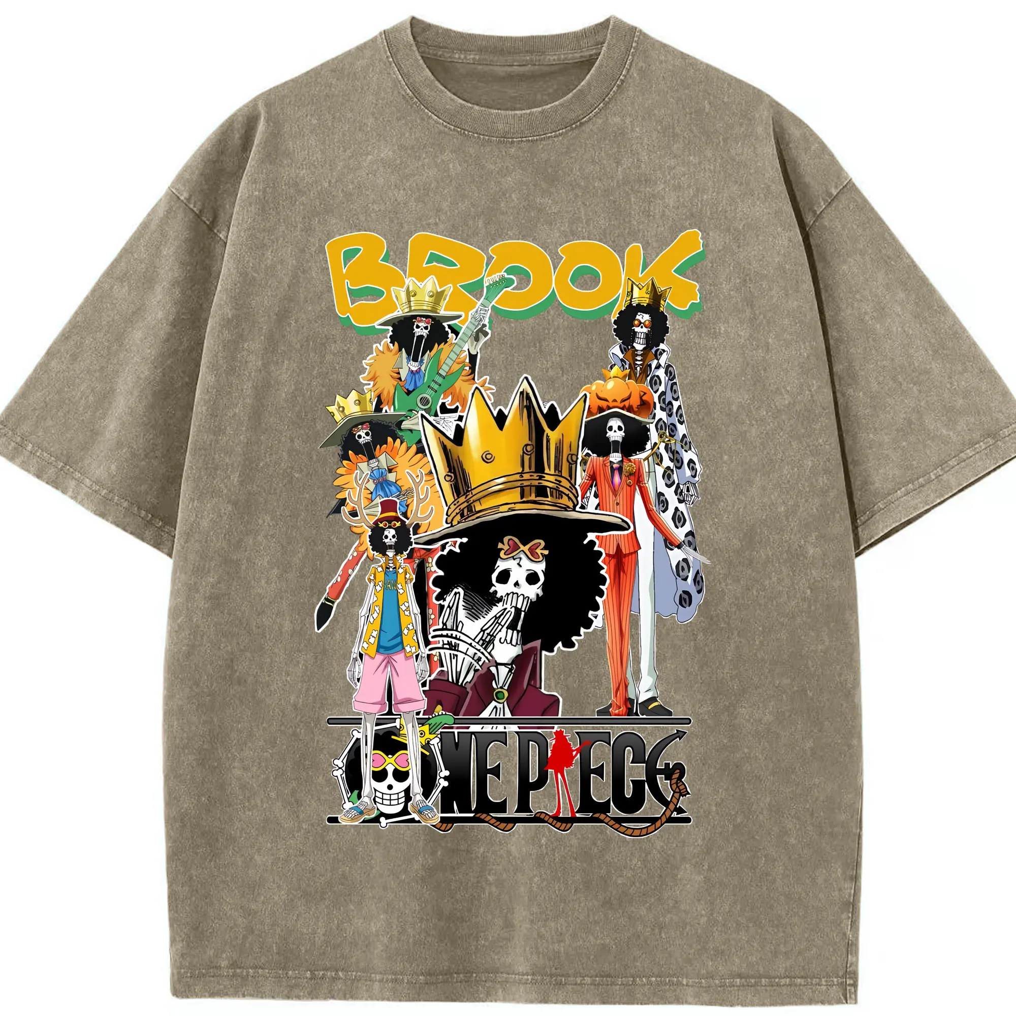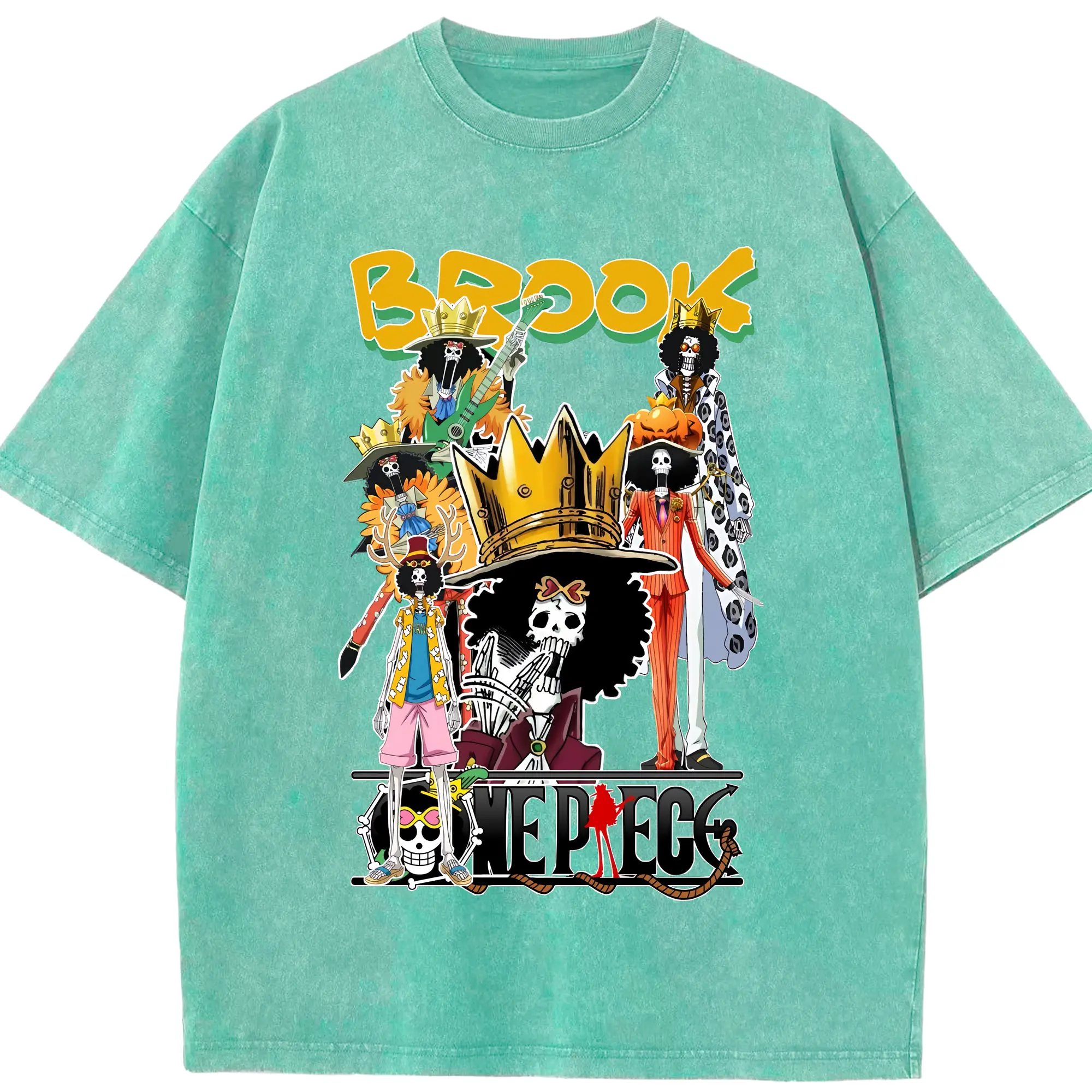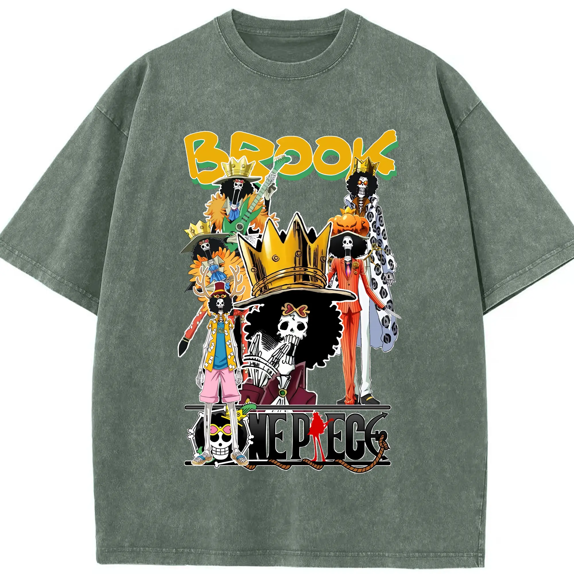 ワンピース グッズ ブルック - 綿100% ヴィンテージ風 半袖Tシャツ ・ 背面プリント ・ 柔らか肌触り ・ 通気性 快適 ・ スポーツ カジュアル 外出用