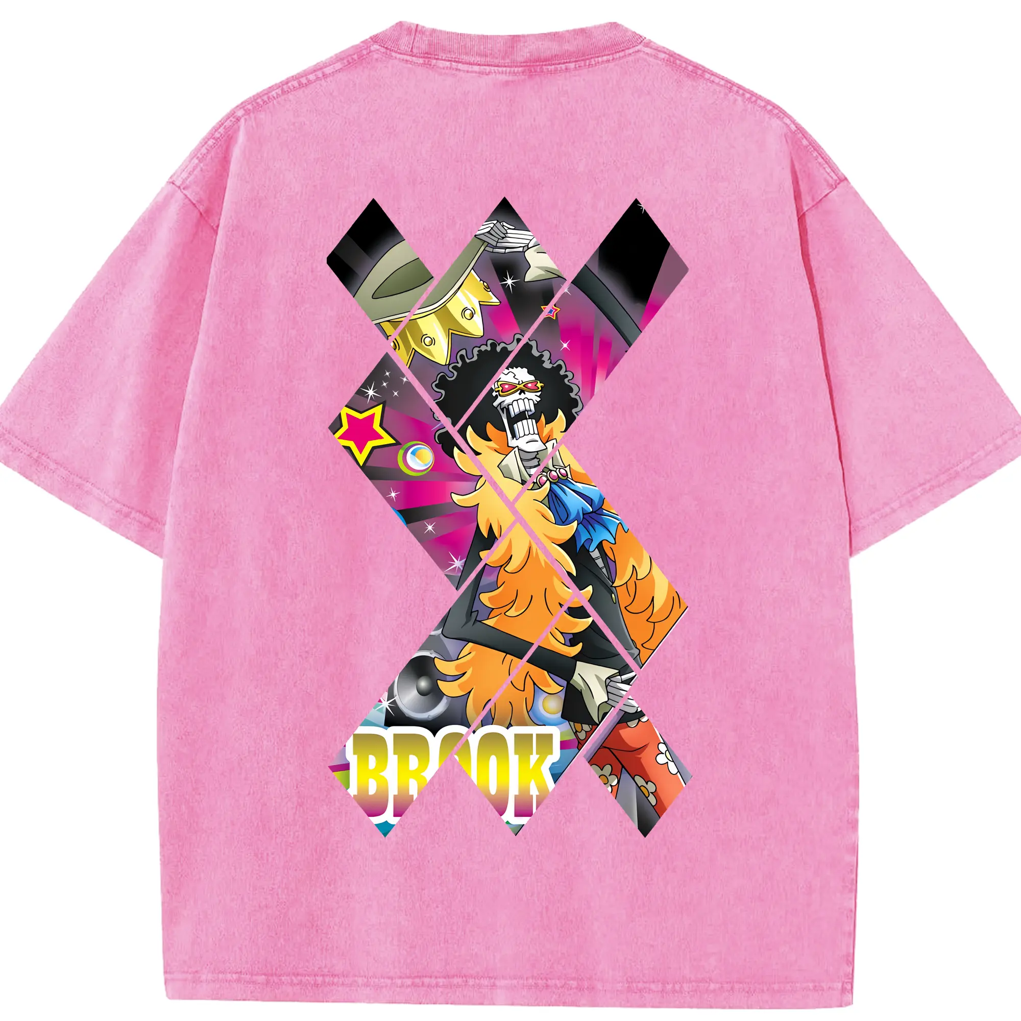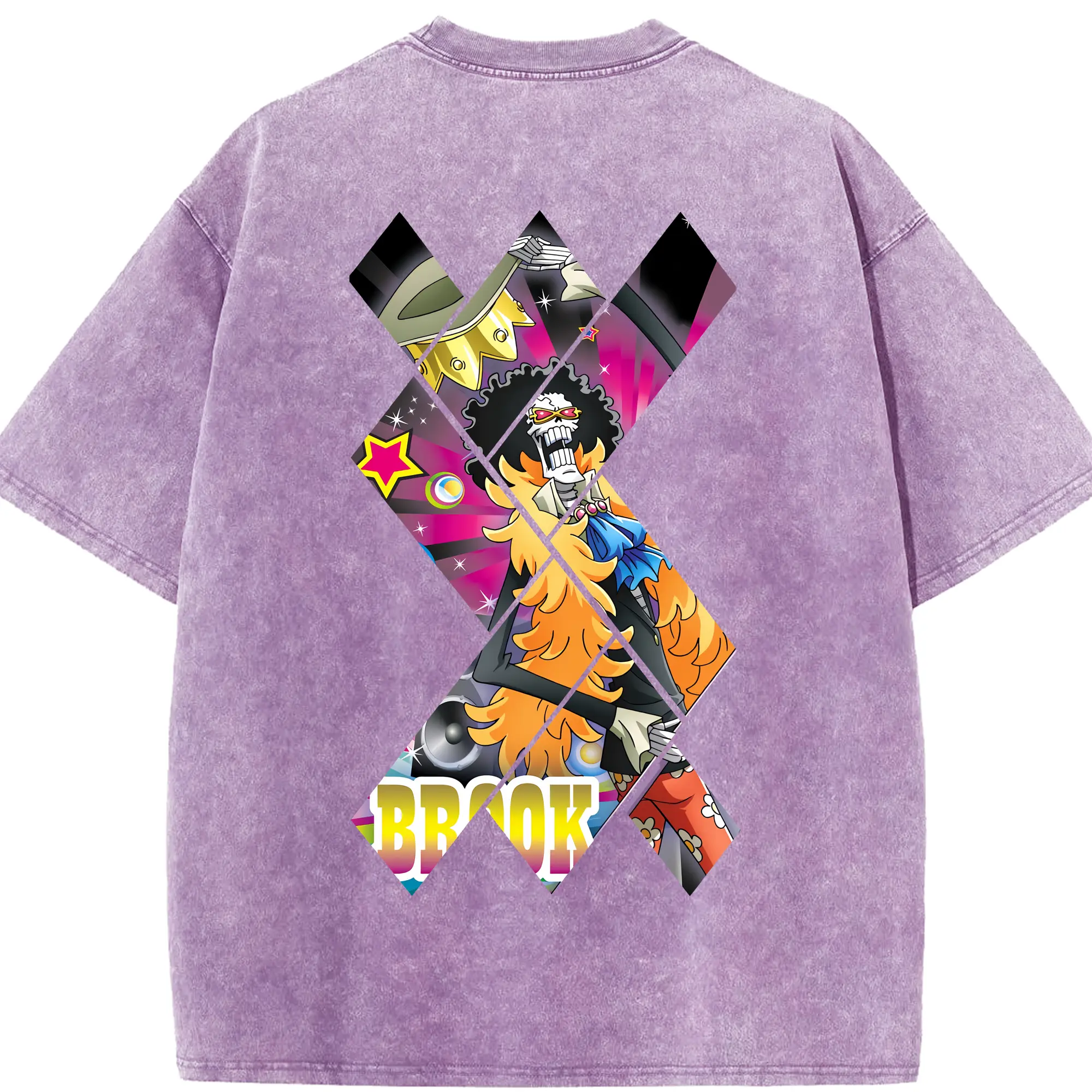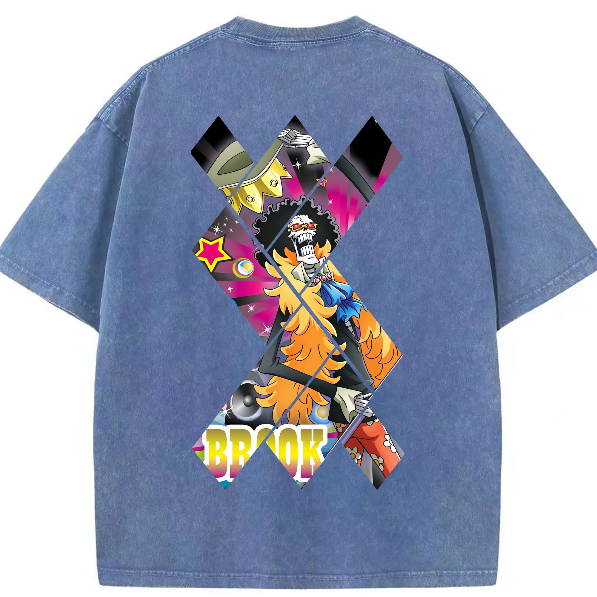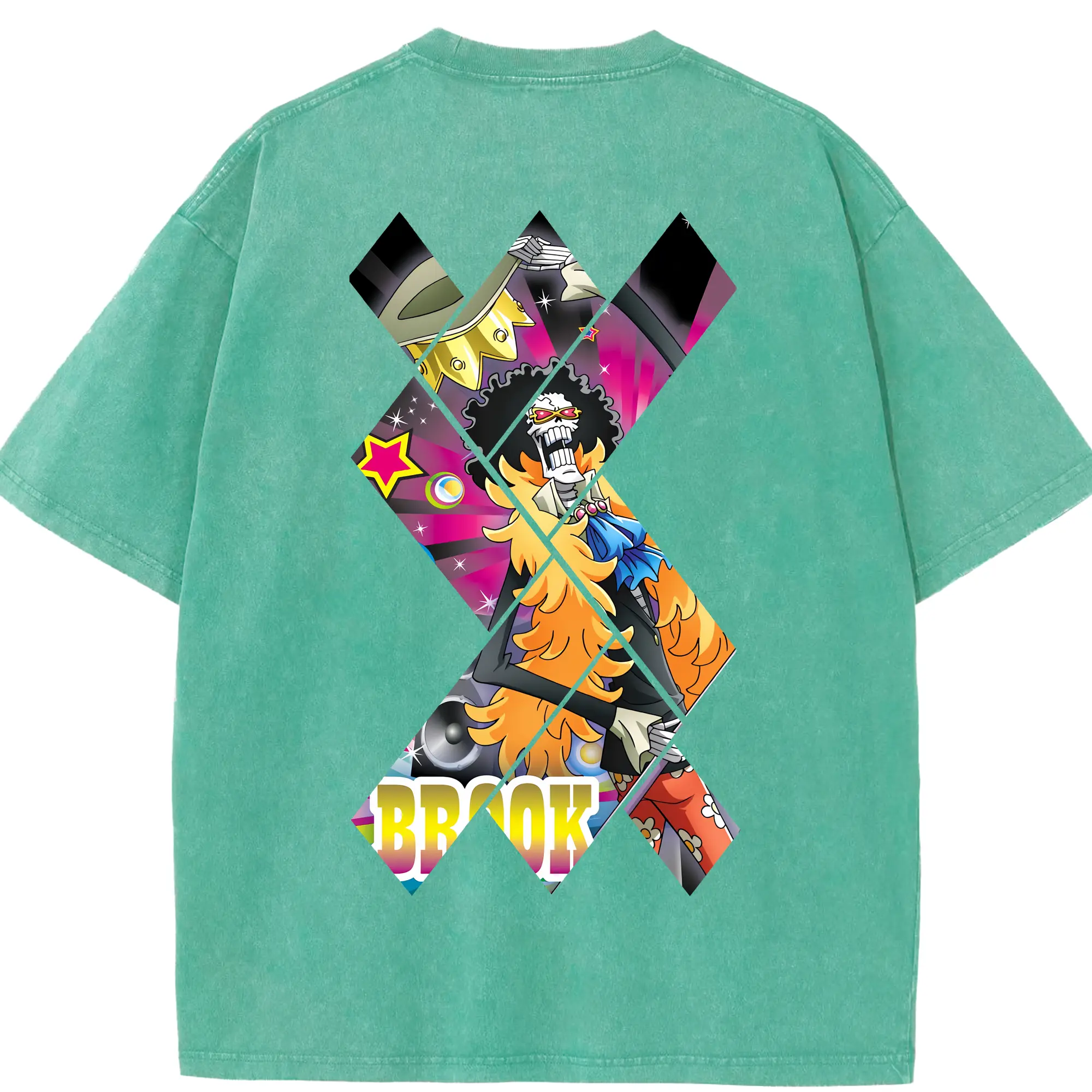 ワンピース グッズ ブルック - 綿100% ヴィンテージ風 半袖Tシャツ ・ フロントプリント ・ 柔らか肌触り ・ 通気性 快適 ・ スポーツ カジュアル 外出用