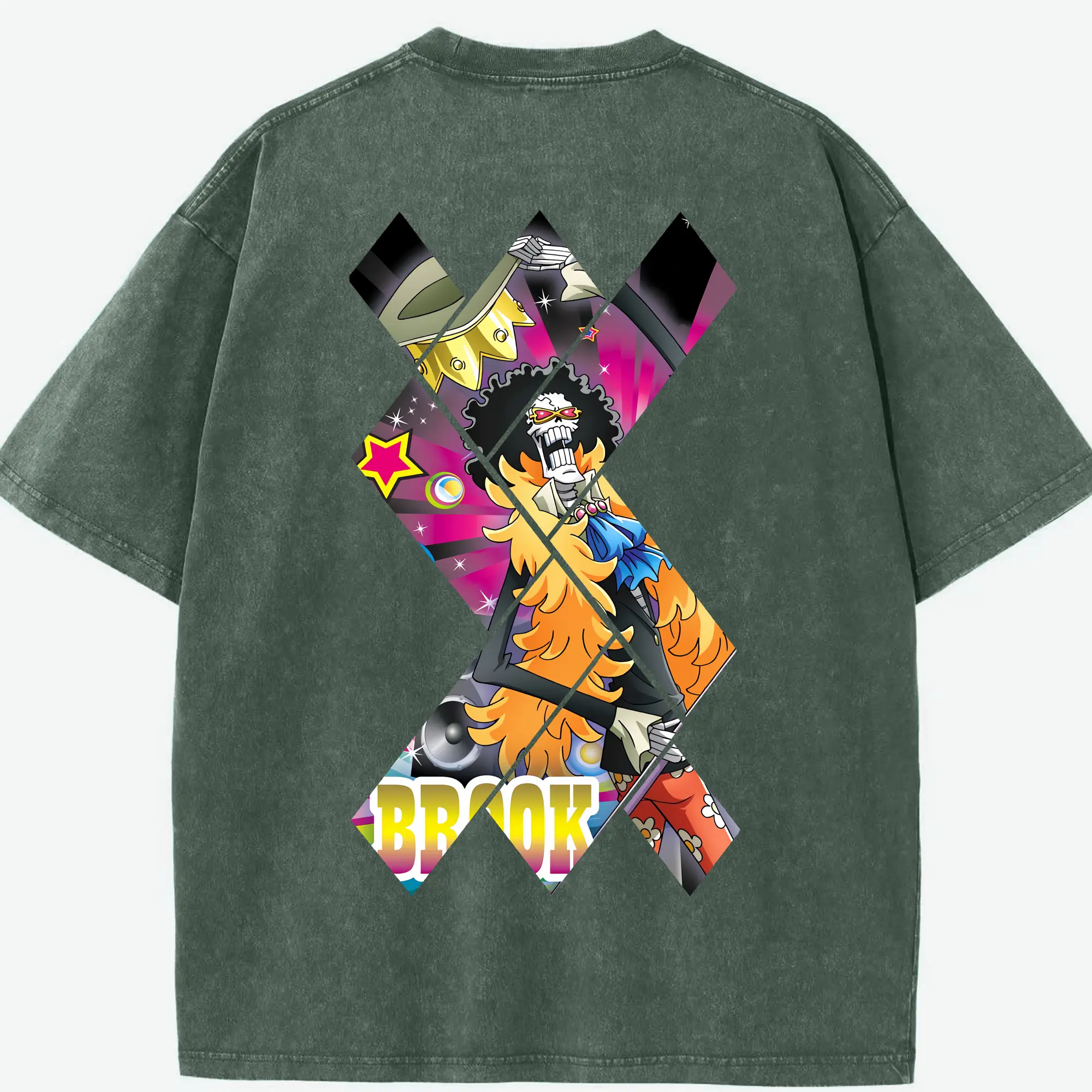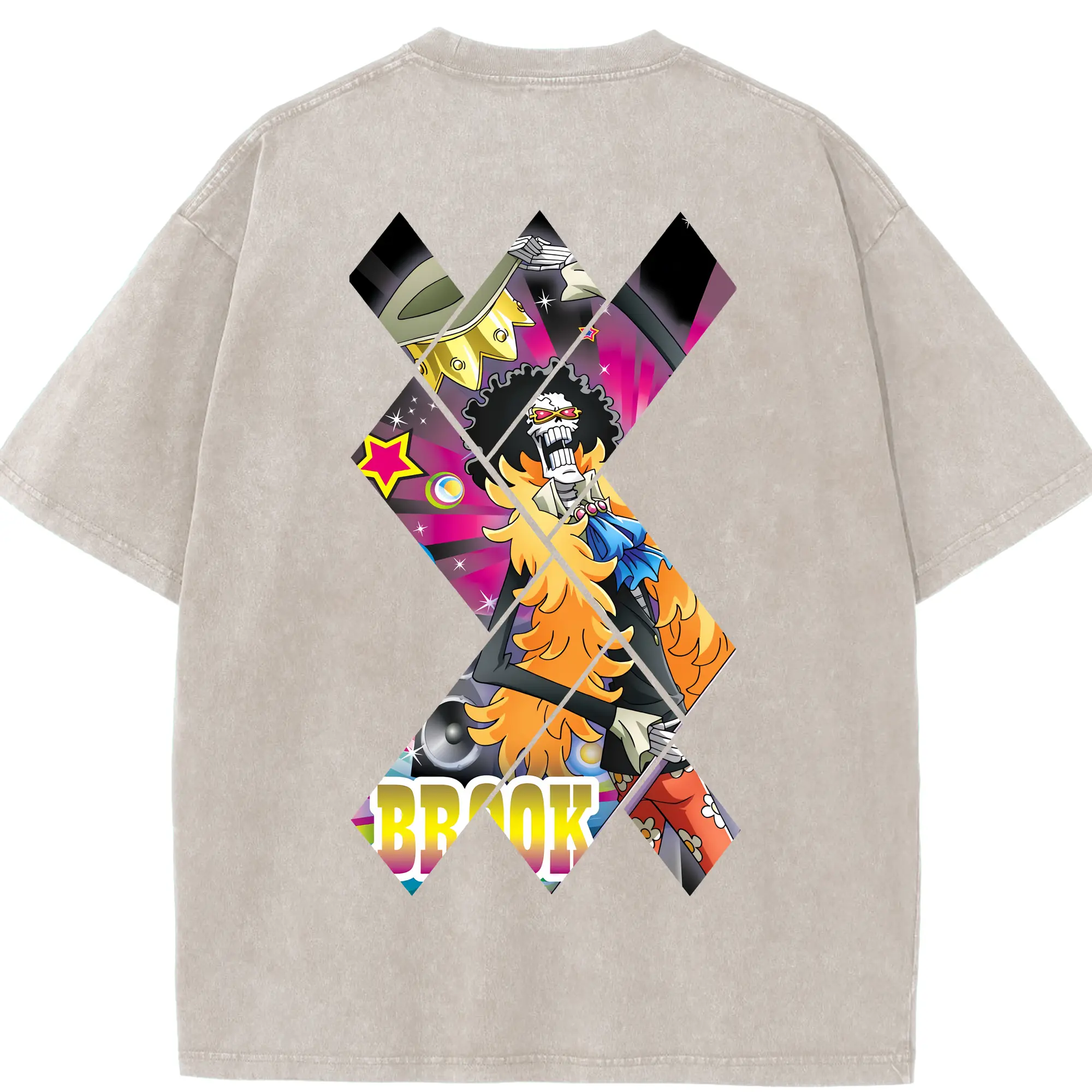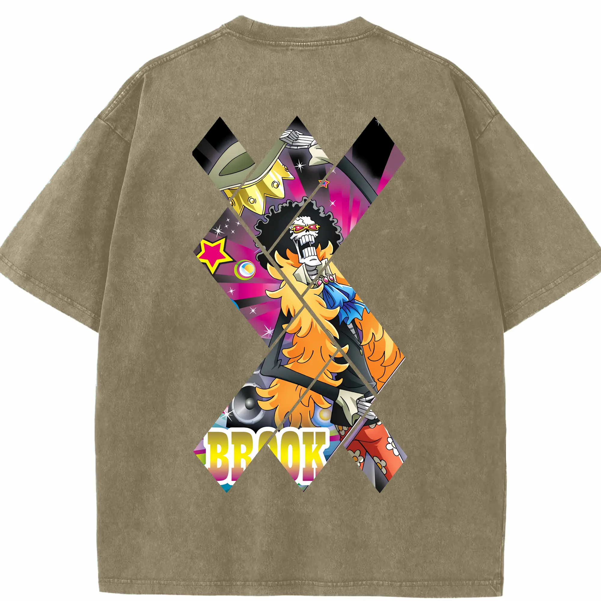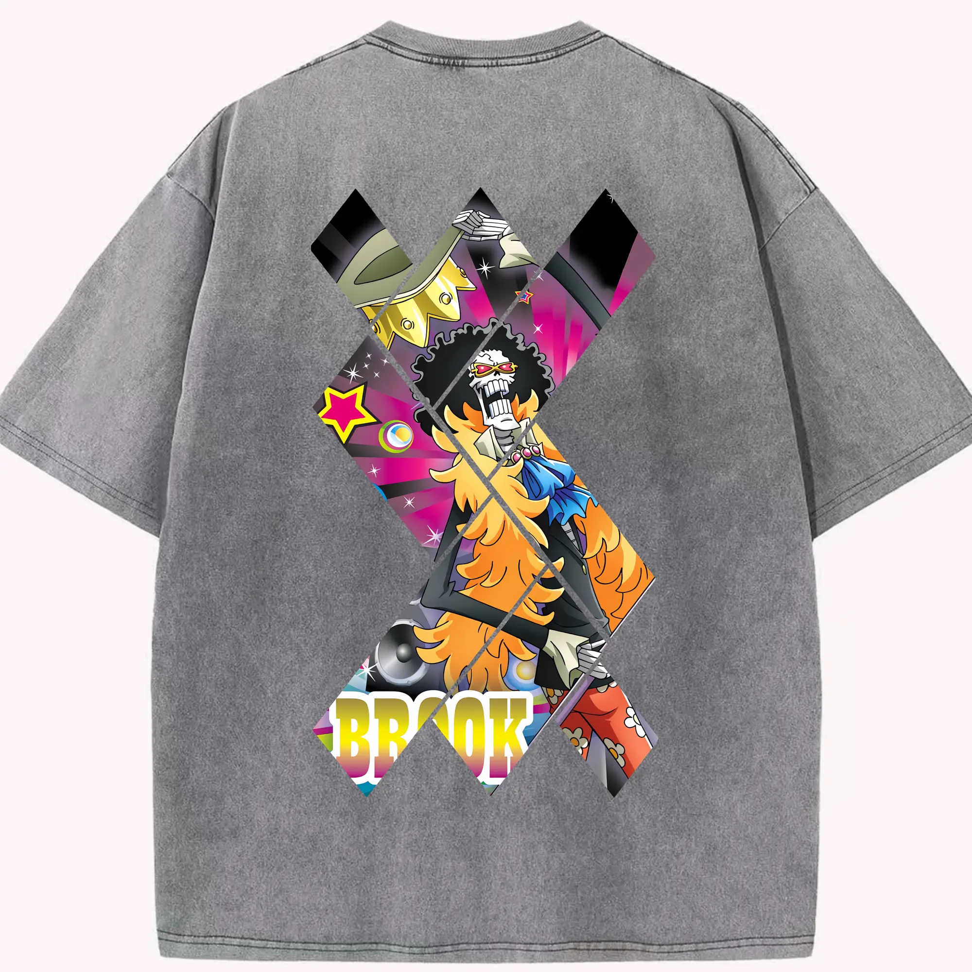 ワンピース グッズ ブルック - 綿100% ヴィンテージ風 半袖Tシャツ ・ フロントプリント ・ 柔らか肌触り ・ 通気性 快適 ・ スポーツ カジュアル 外出用