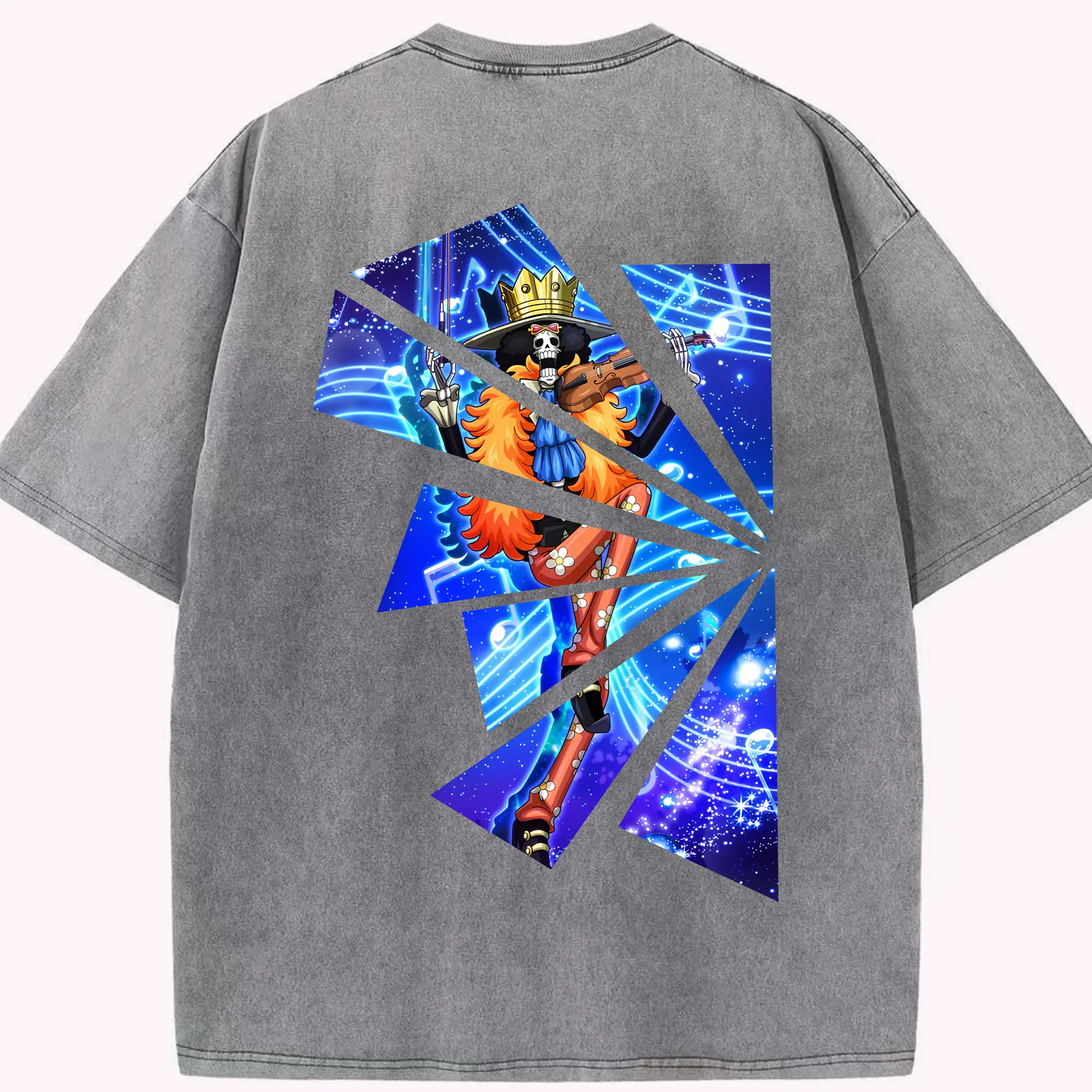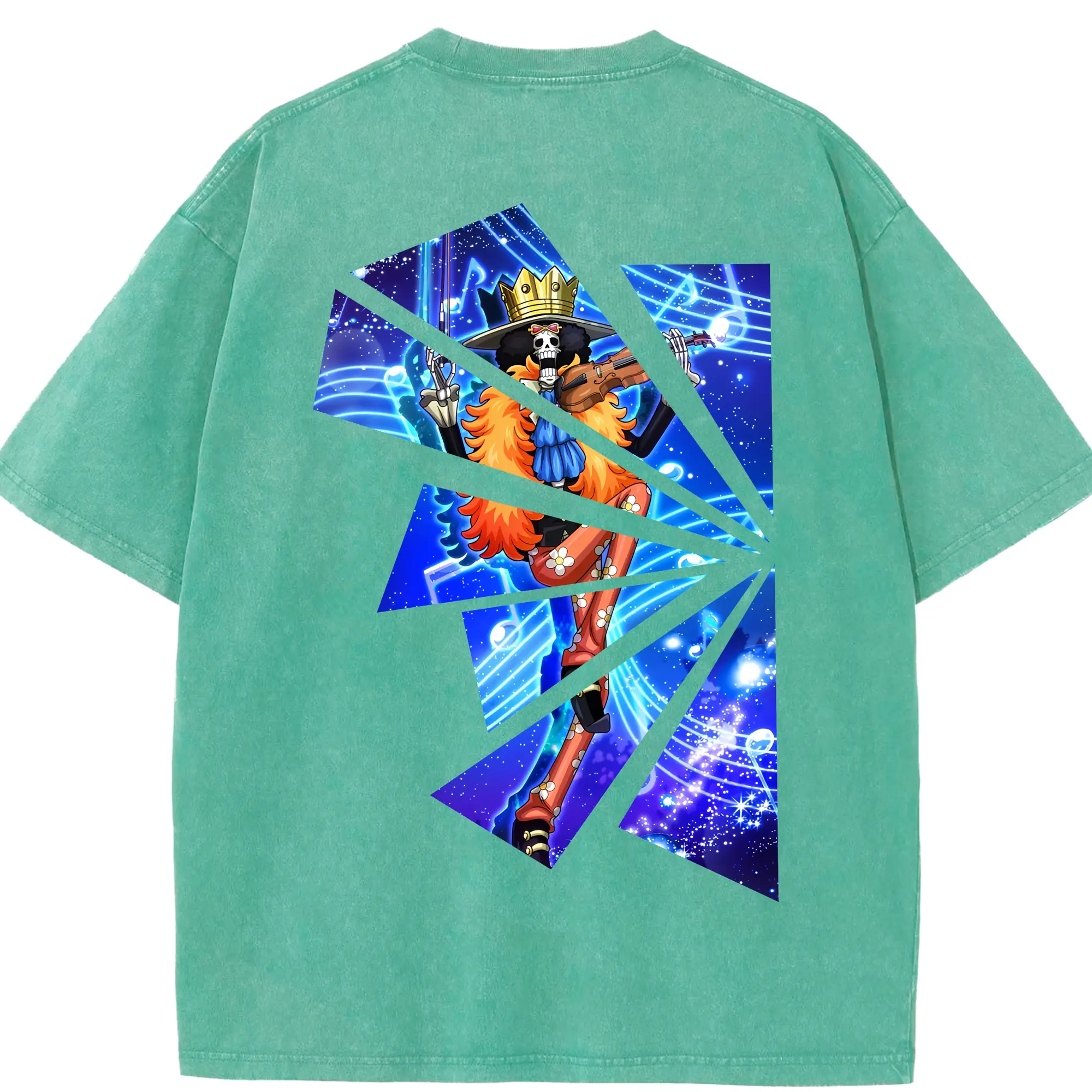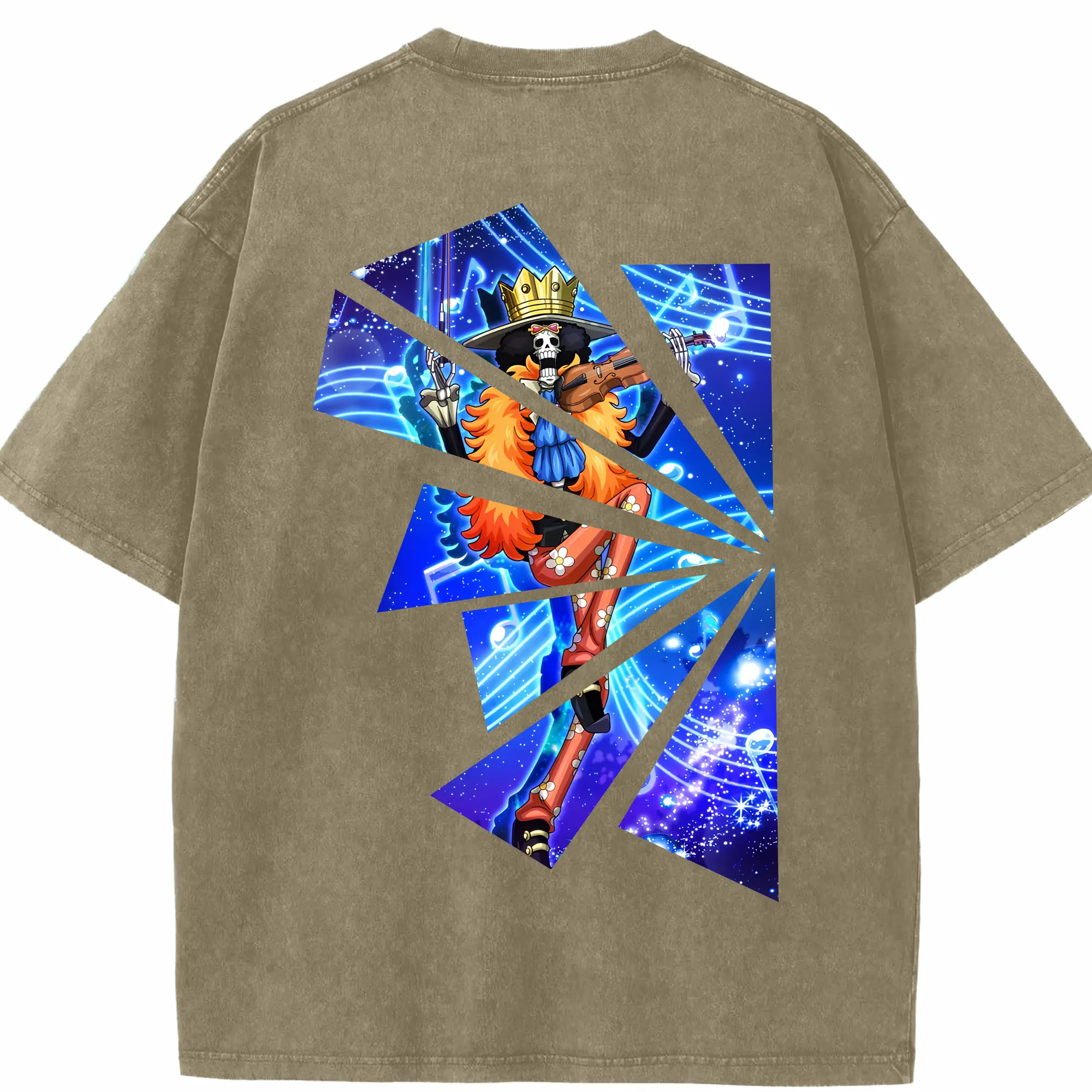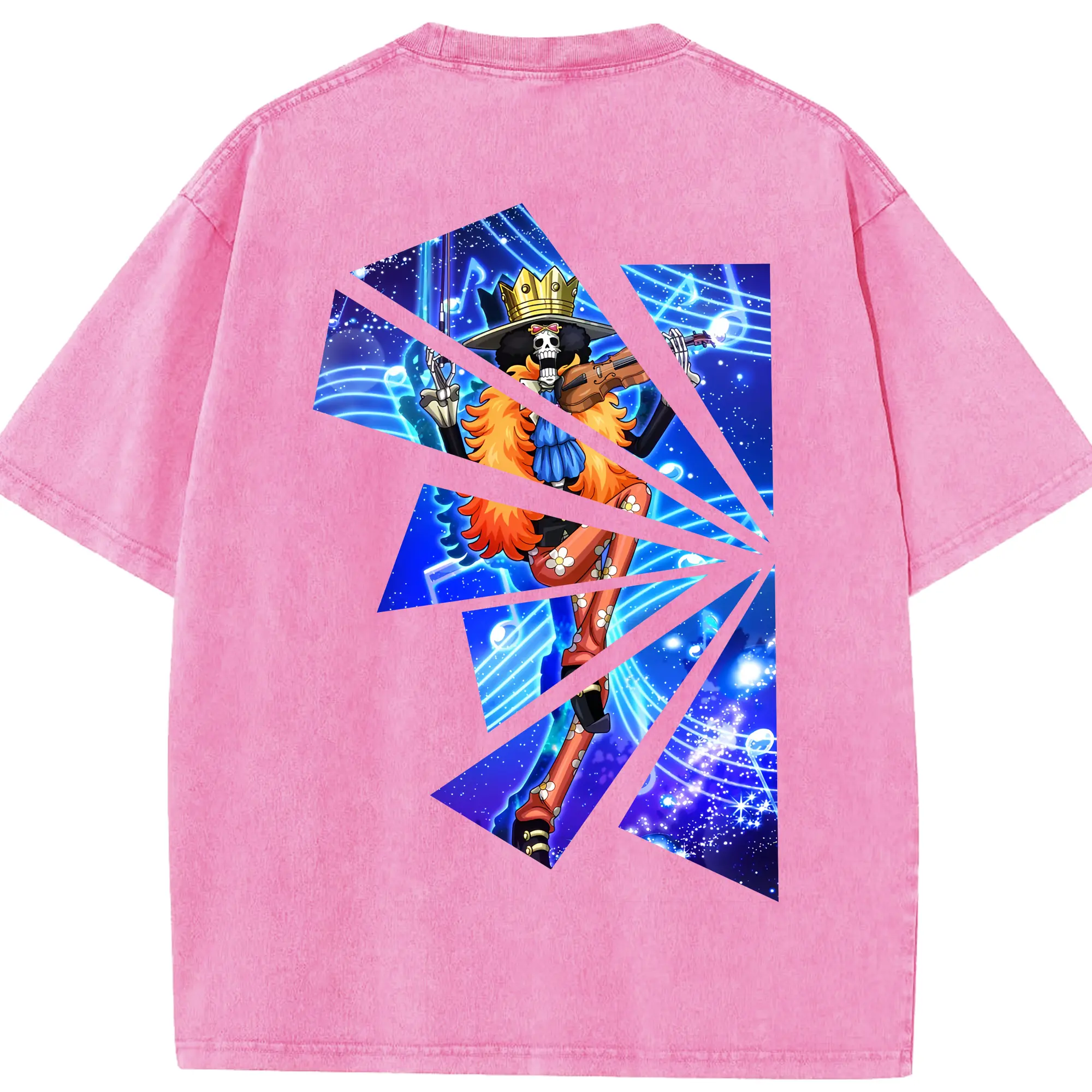 ワンピース グッズ ブルック - 綿100% ヴィンテージ風 半袖Tシャツ ・ フロントプリント ・ 柔らか肌触り ・ 通気性 快適 ・ スポーツ カジュアル 外出用