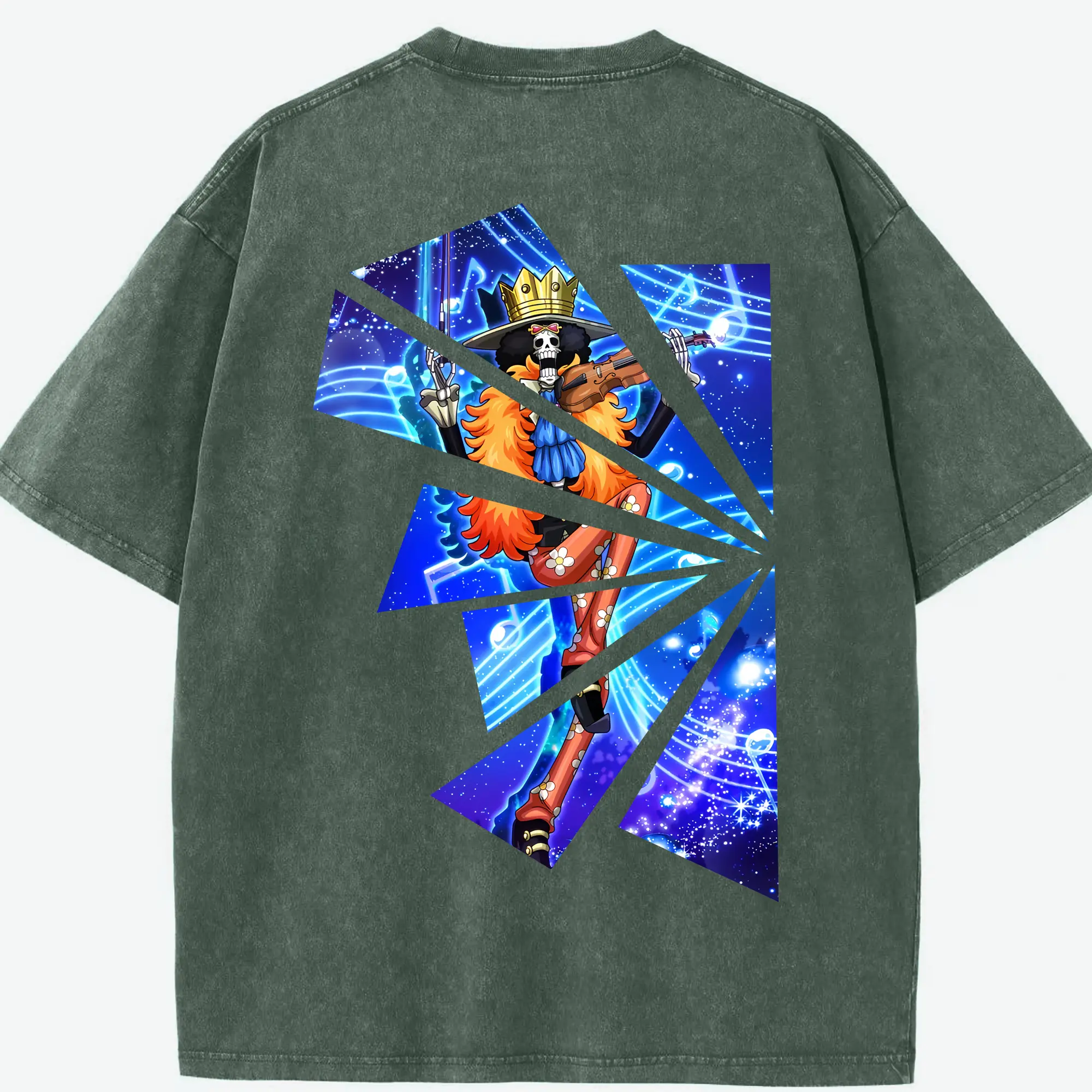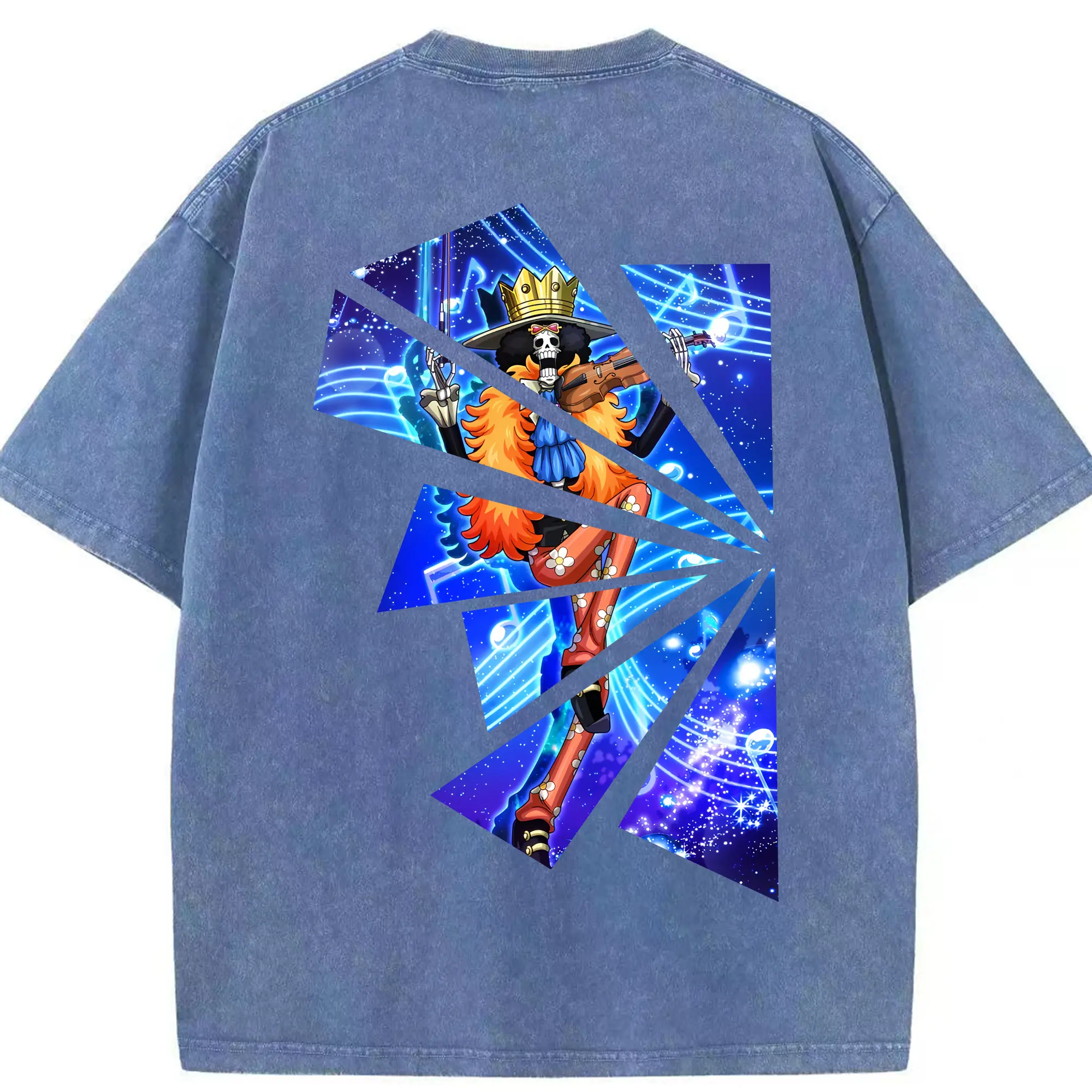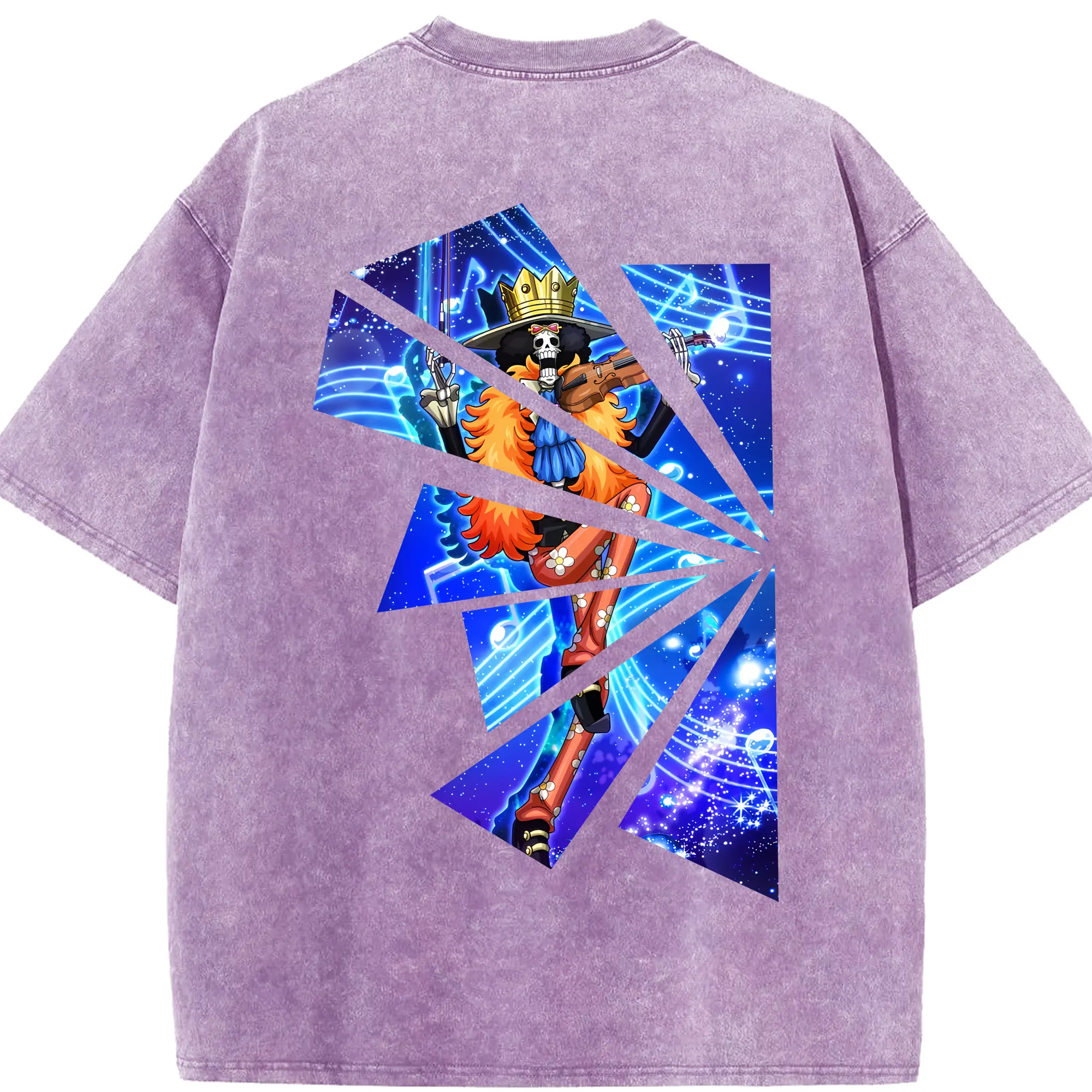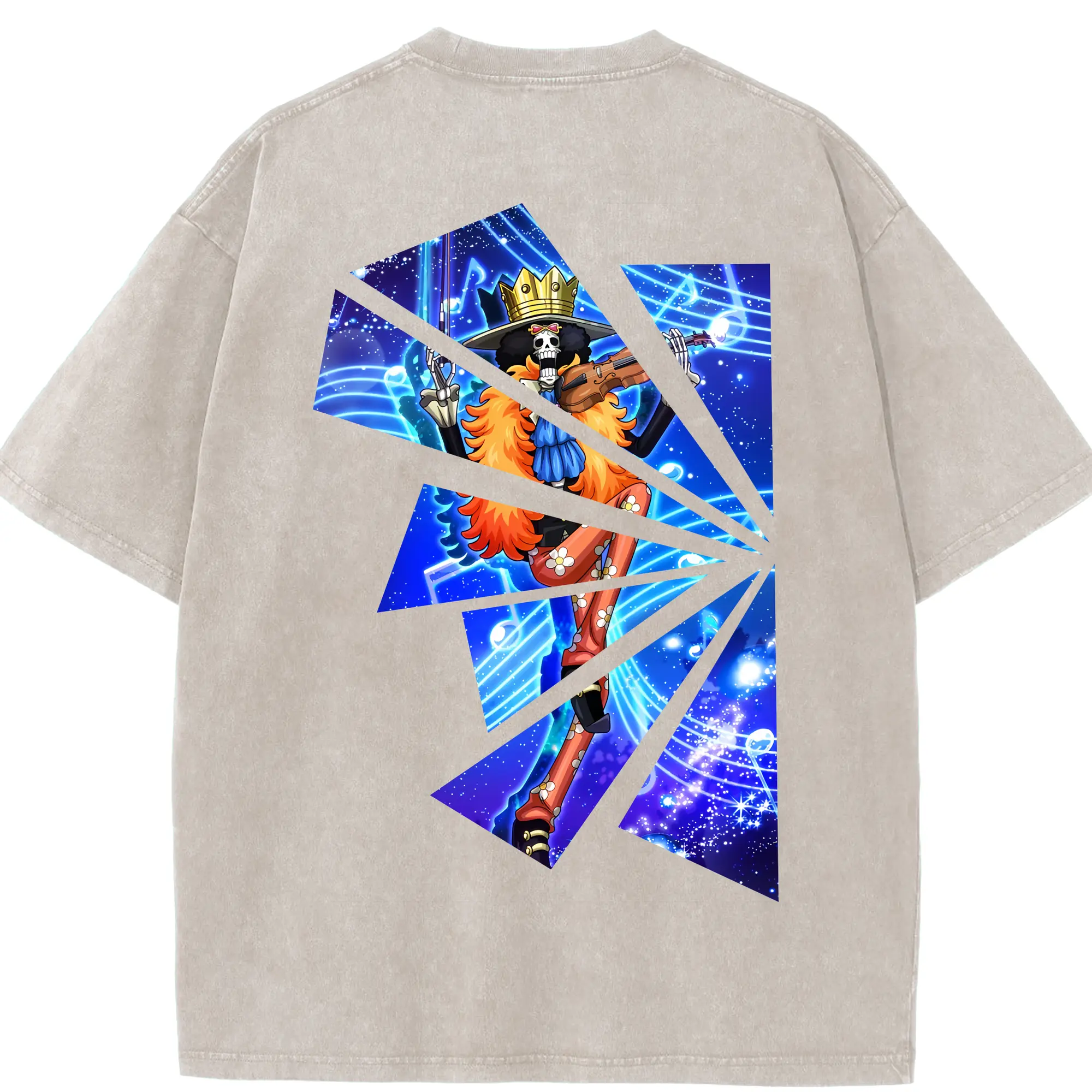 ワンピース グッズ ブルック - 綿100% ヴィンテージ風 半袖Tシャツ ・ フロントプリント ・ 柔らか肌触り ・ 通気性 快適 ・ スポーツ カジュアル 外出用