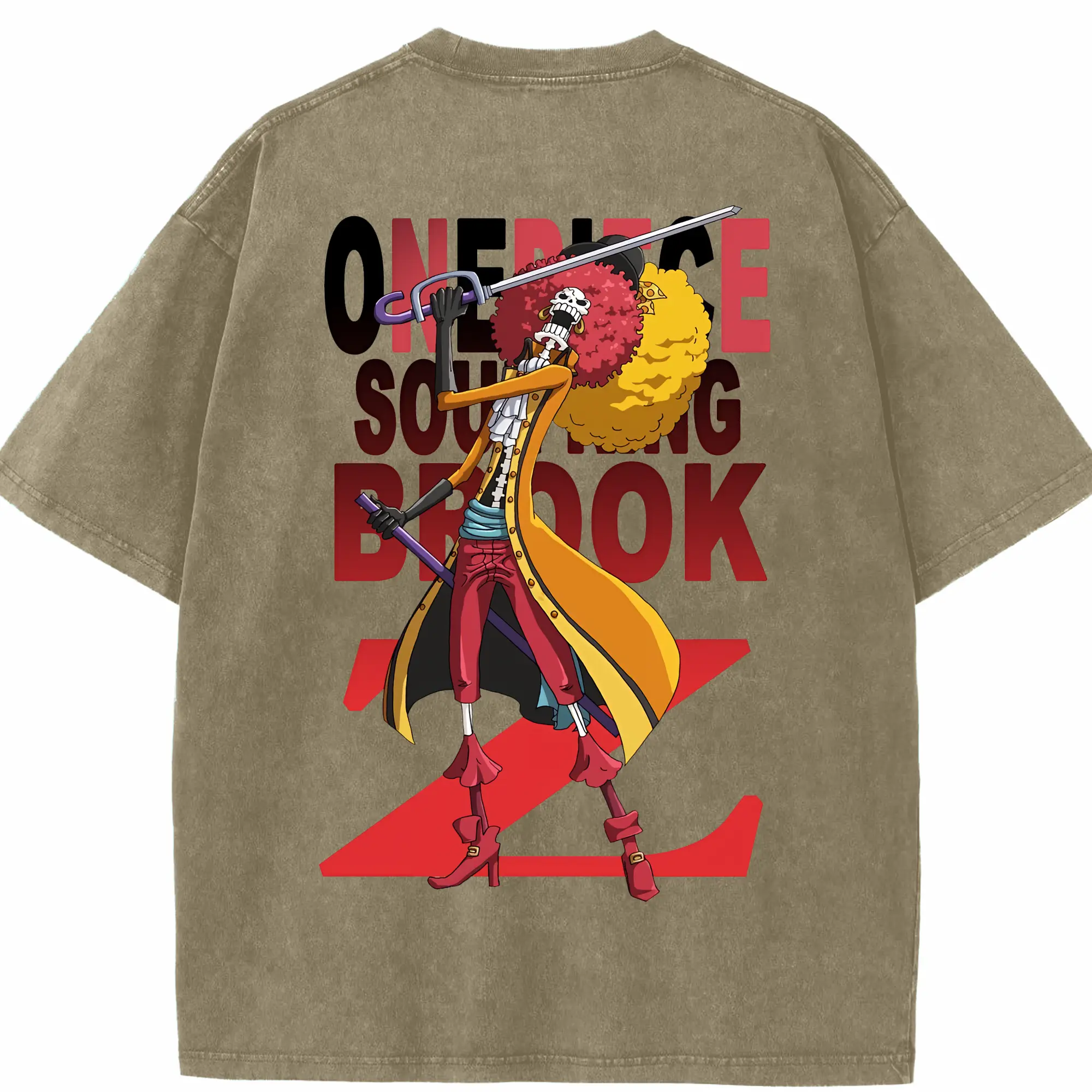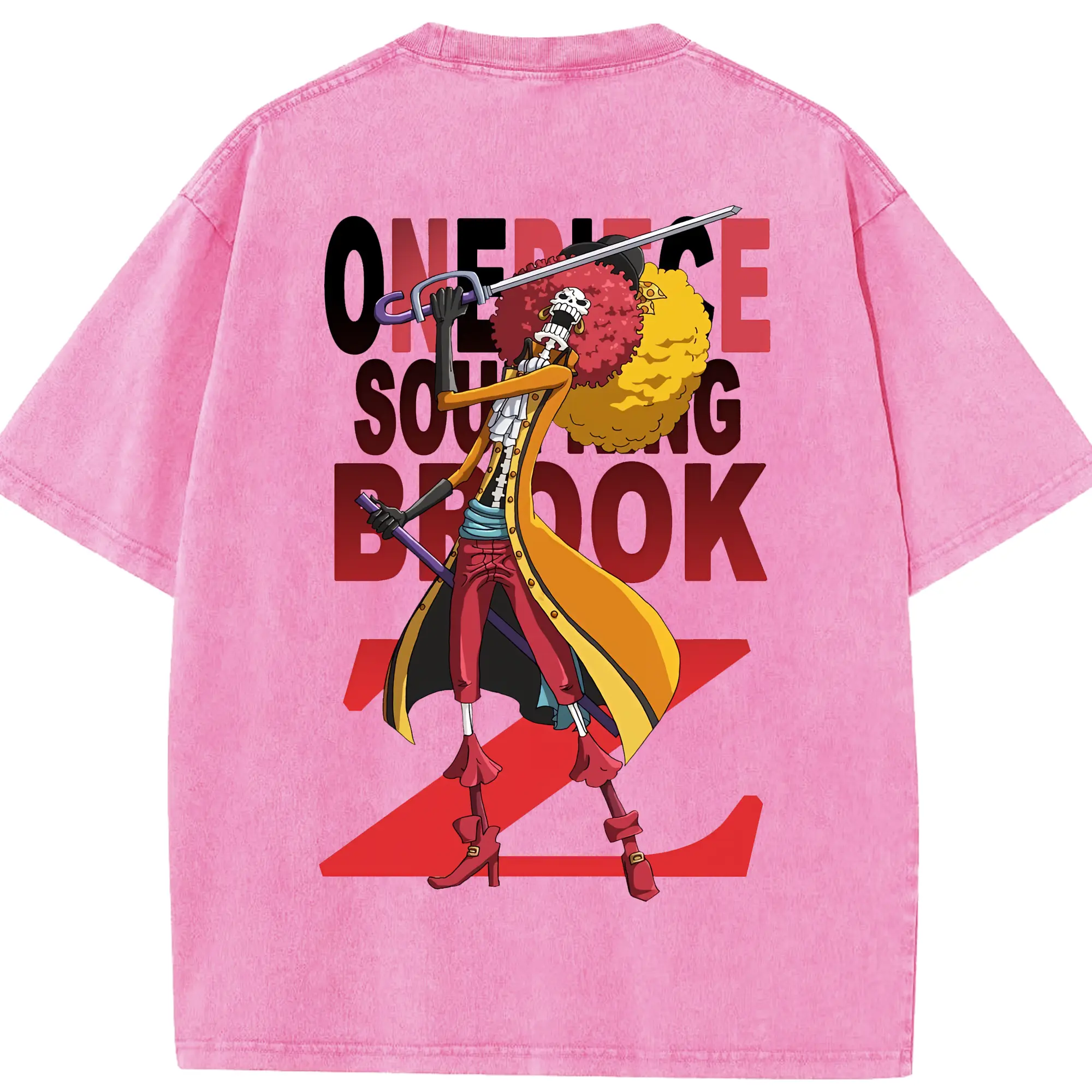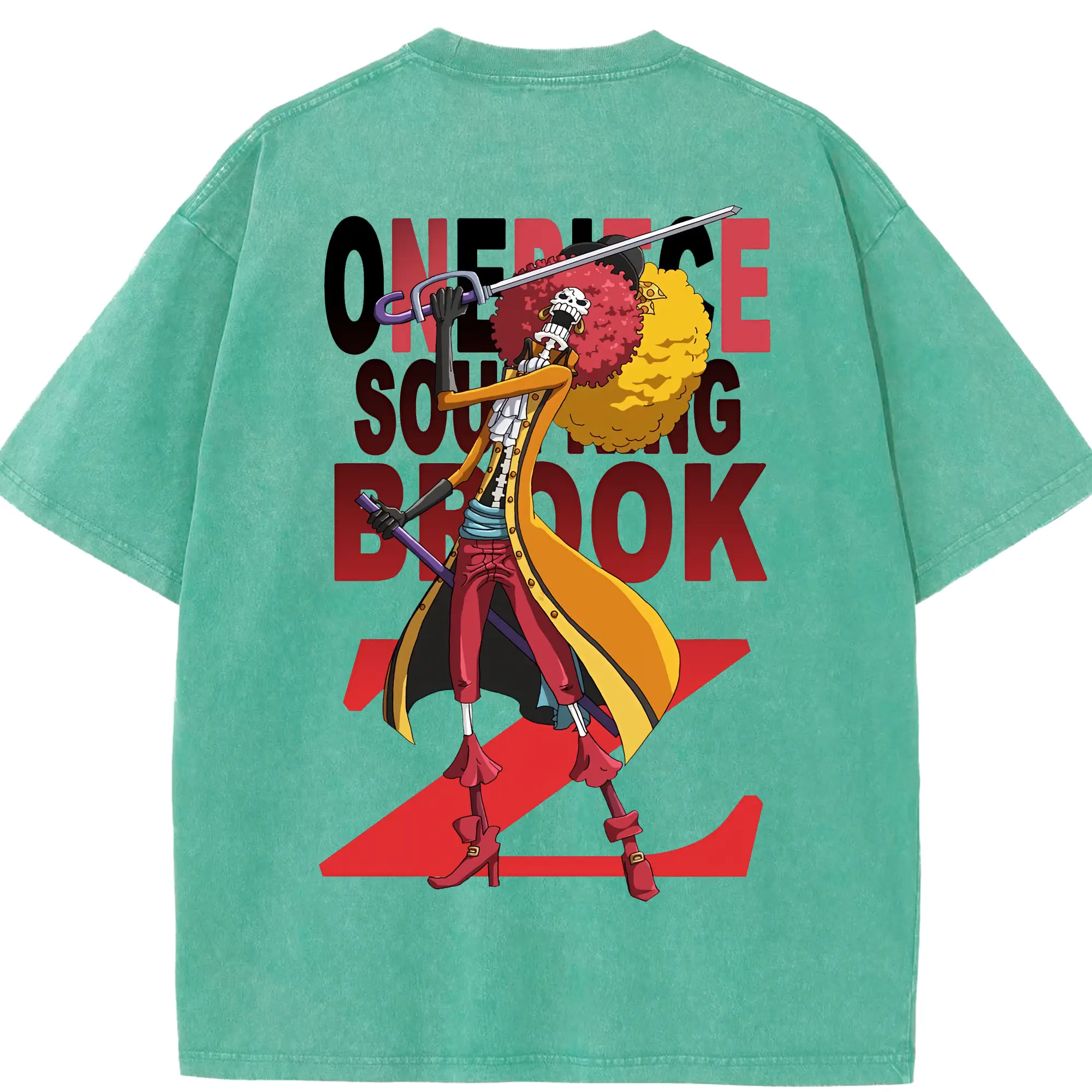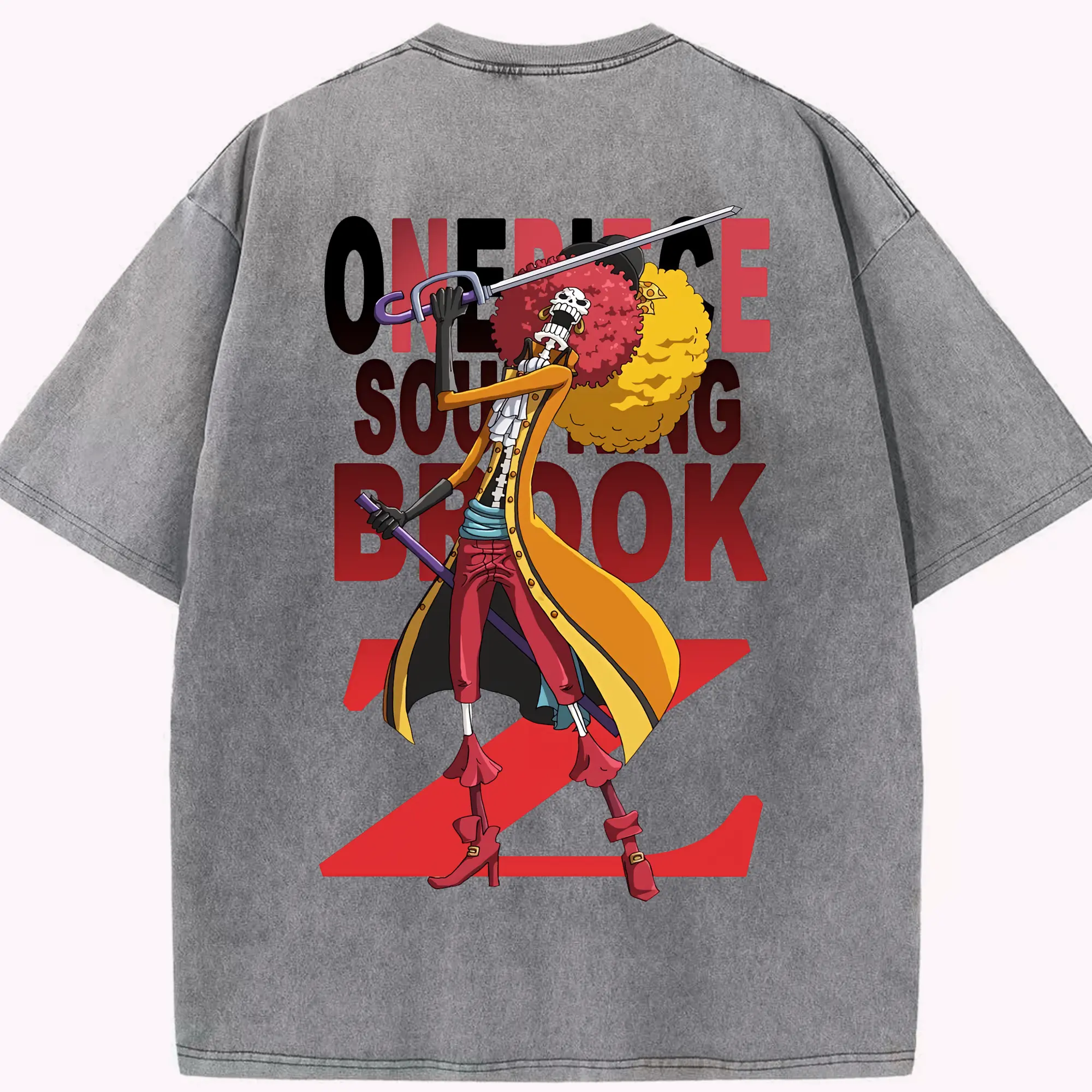 ワンピース グッズ ブルック - 綿100% ヴィンテージ風 半袖Tシャツ ・ フロントプリント ・ 柔らか肌触り ・ 通気性 快適 ・ スポーツ カジュアル 外出用