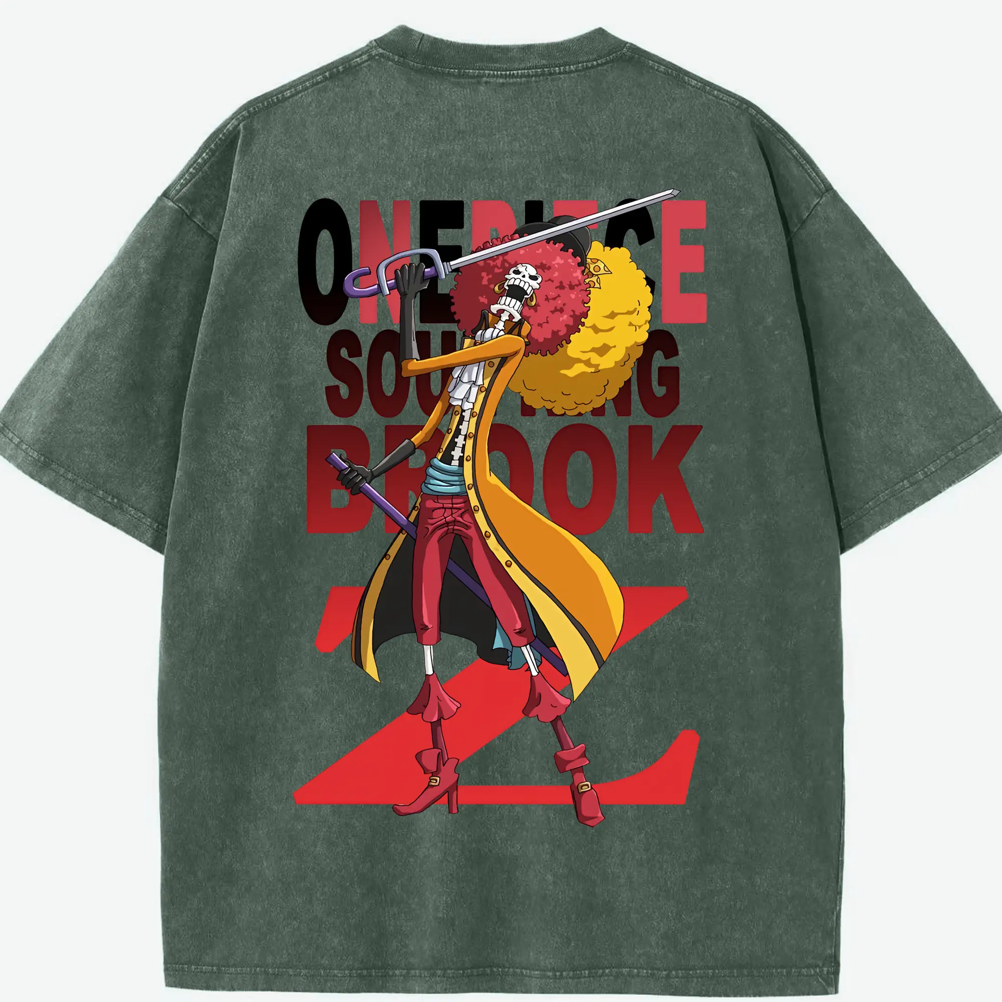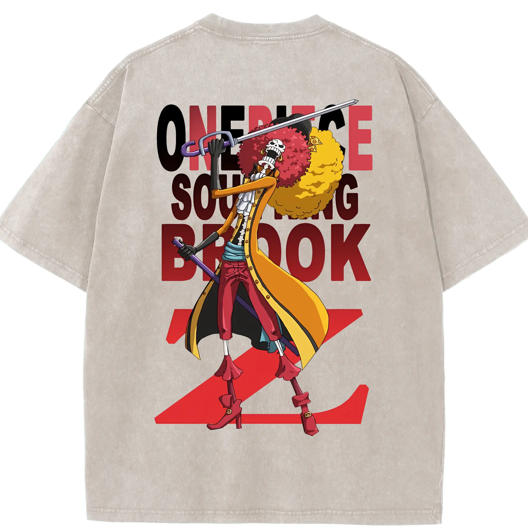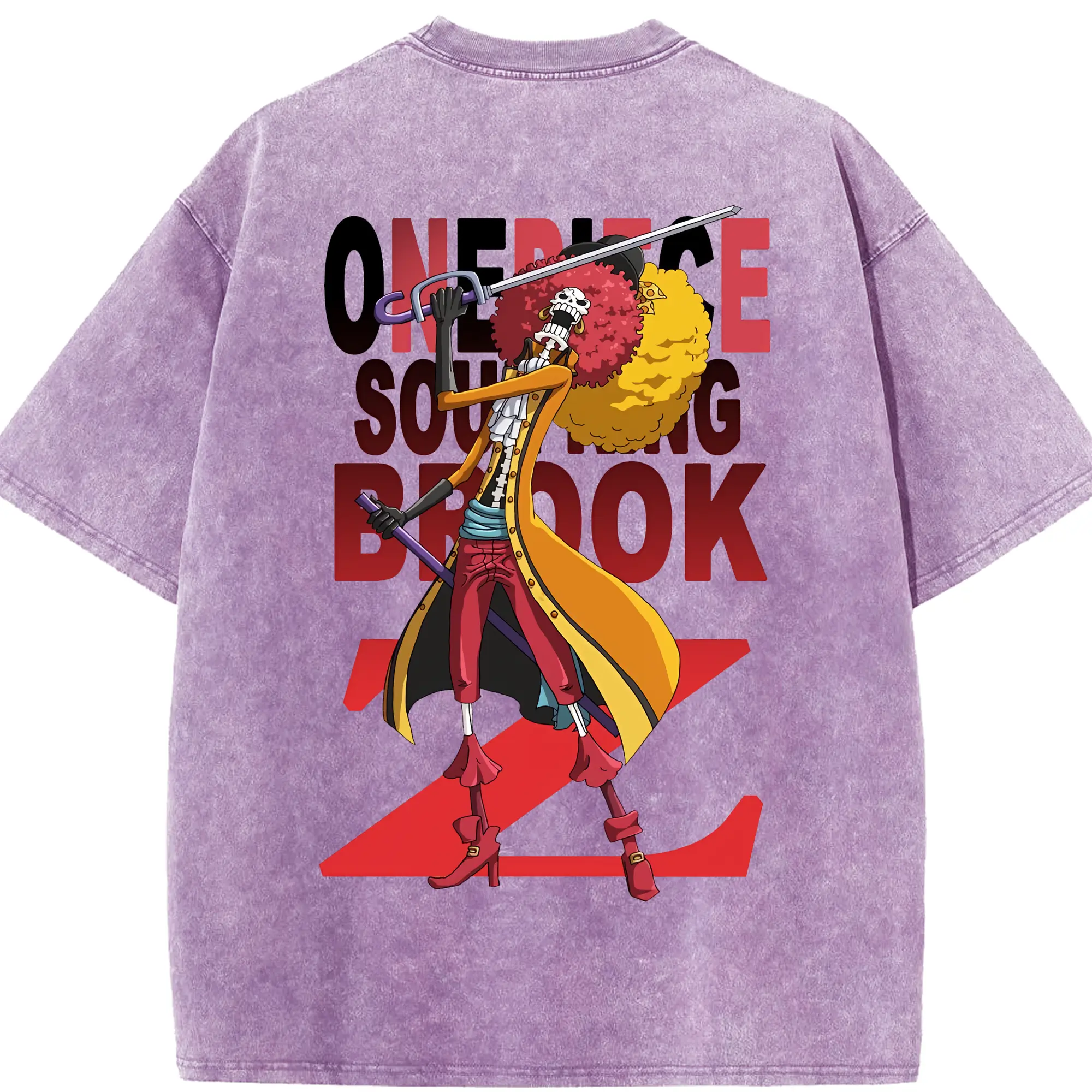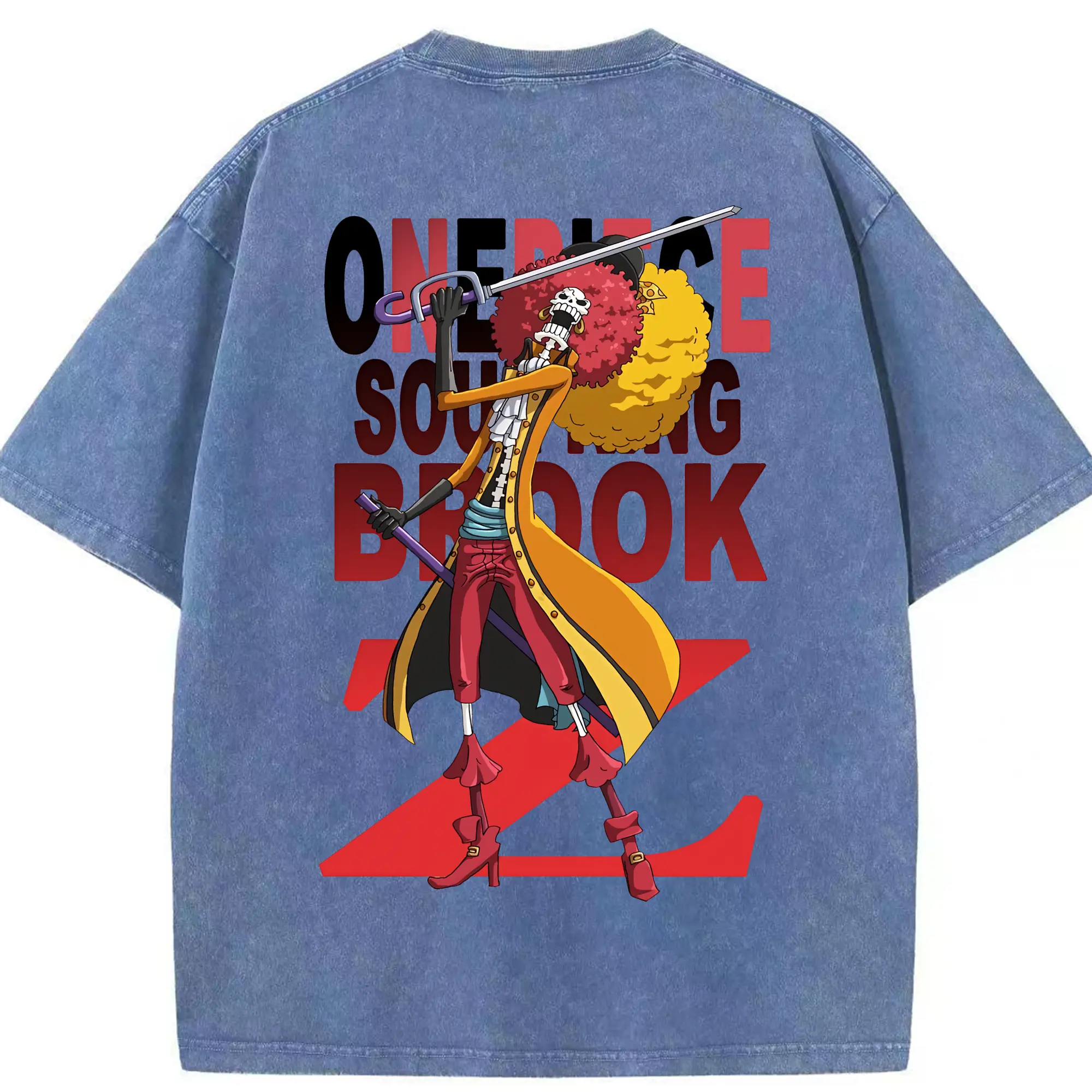 ワンピース グッズ ブルック - 綿100% ヴィンテージ風 半袖Tシャツ ・ フロントプリント ・ 柔らか肌触り ・ 通気性 快適 ・ スポーツ カジュアル 外出用