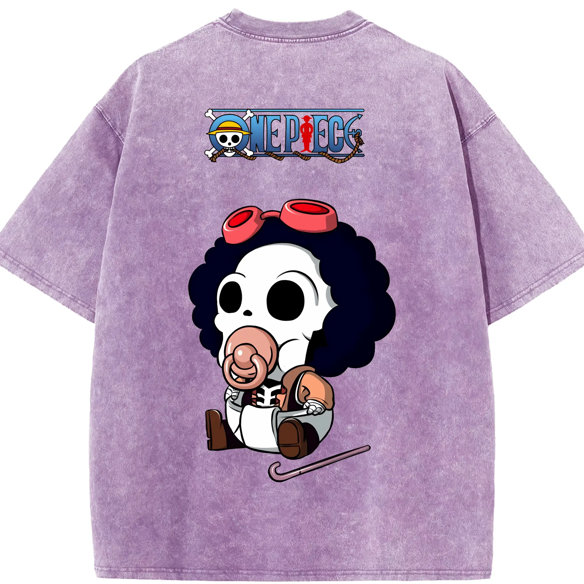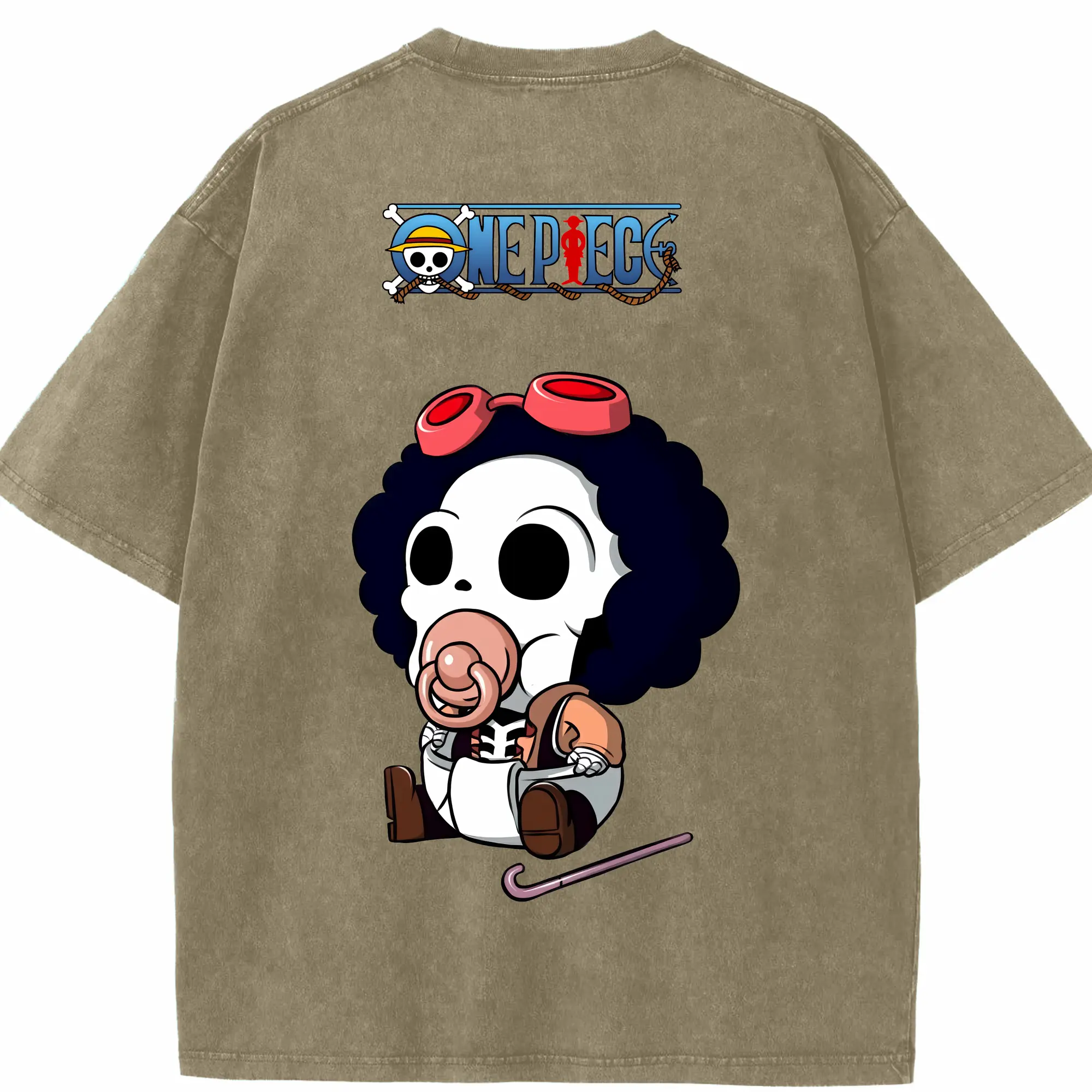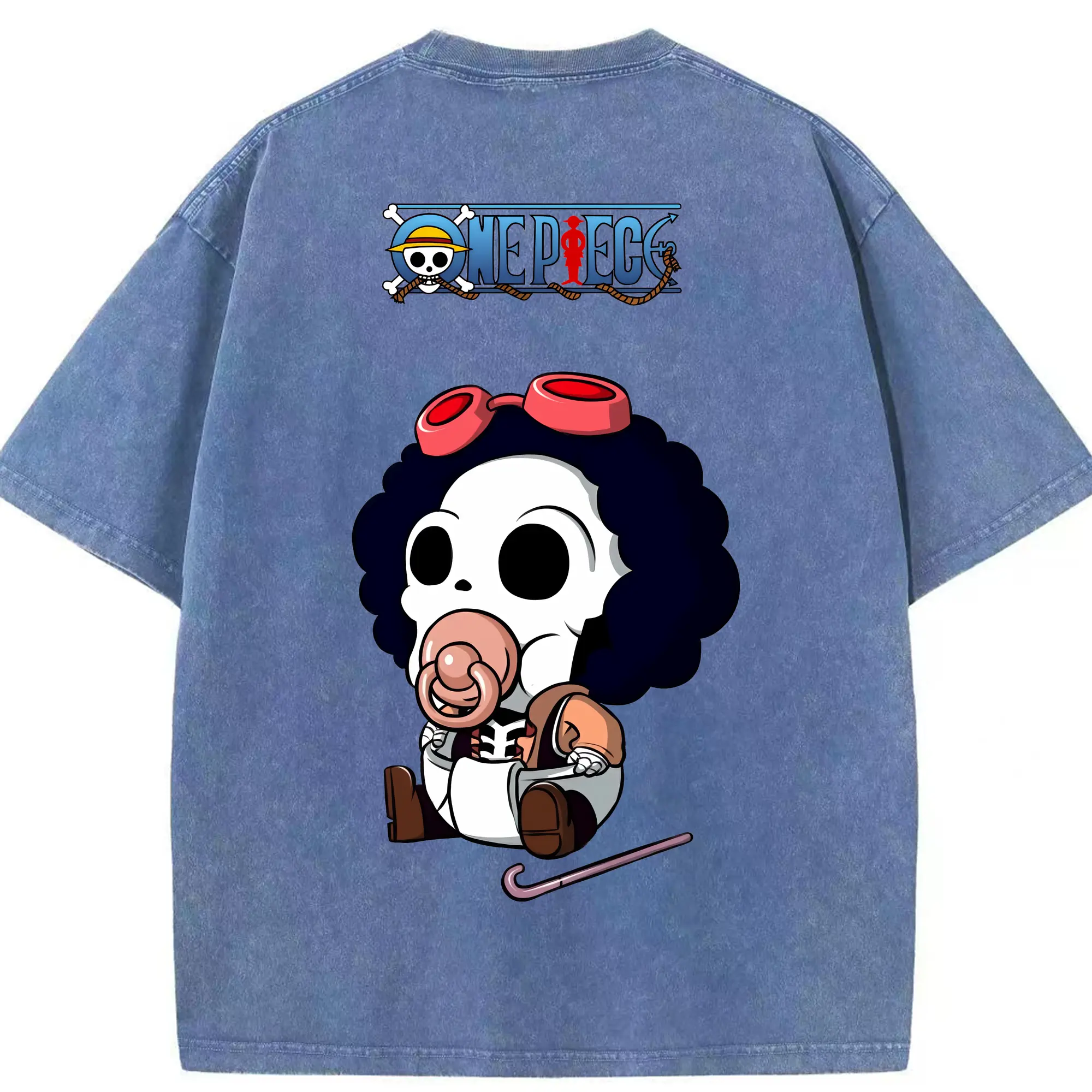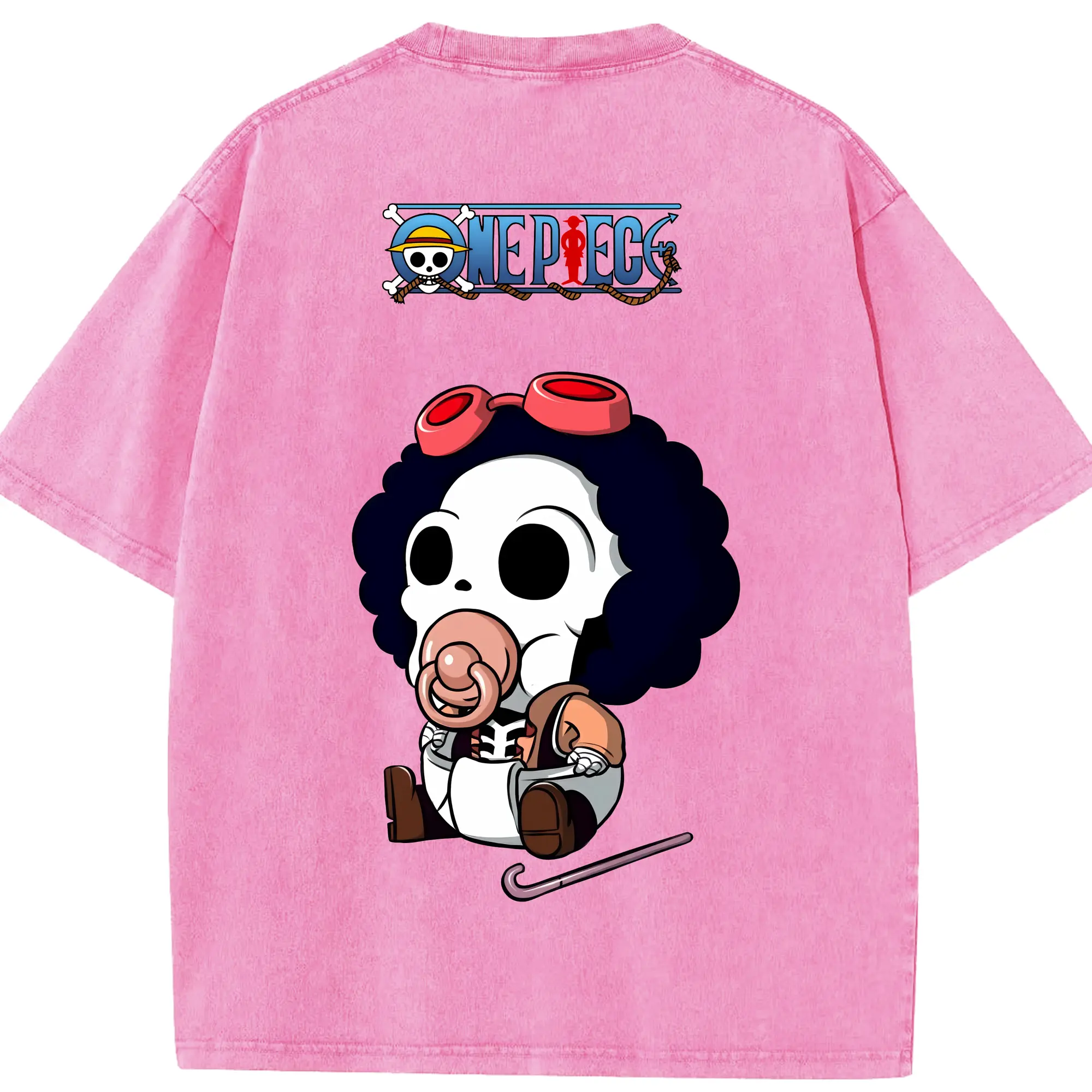 ワンピース グッズ ブルック - 綿100% ヴィンテージ風 半袖Tシャツ ・ フロントプリント ・ 柔らか肌触り ・ 通気性 快適 ・ スポーツ カジュアル 外出用