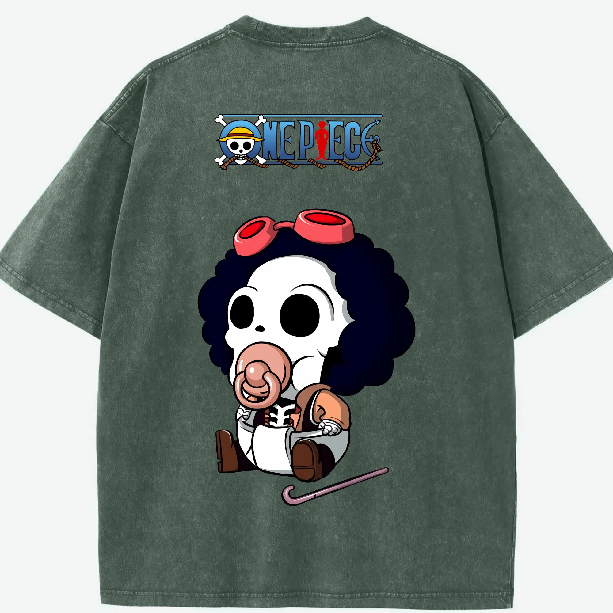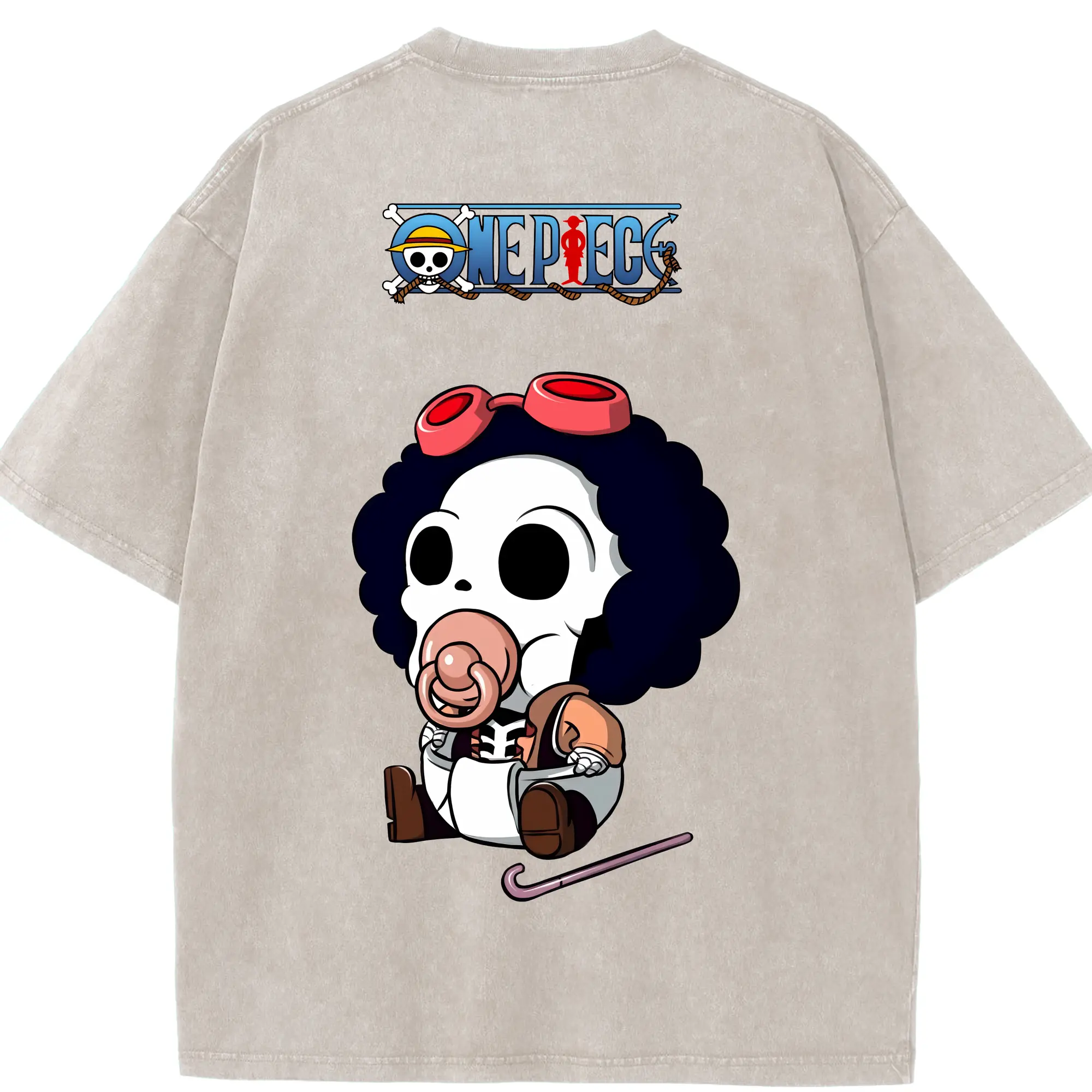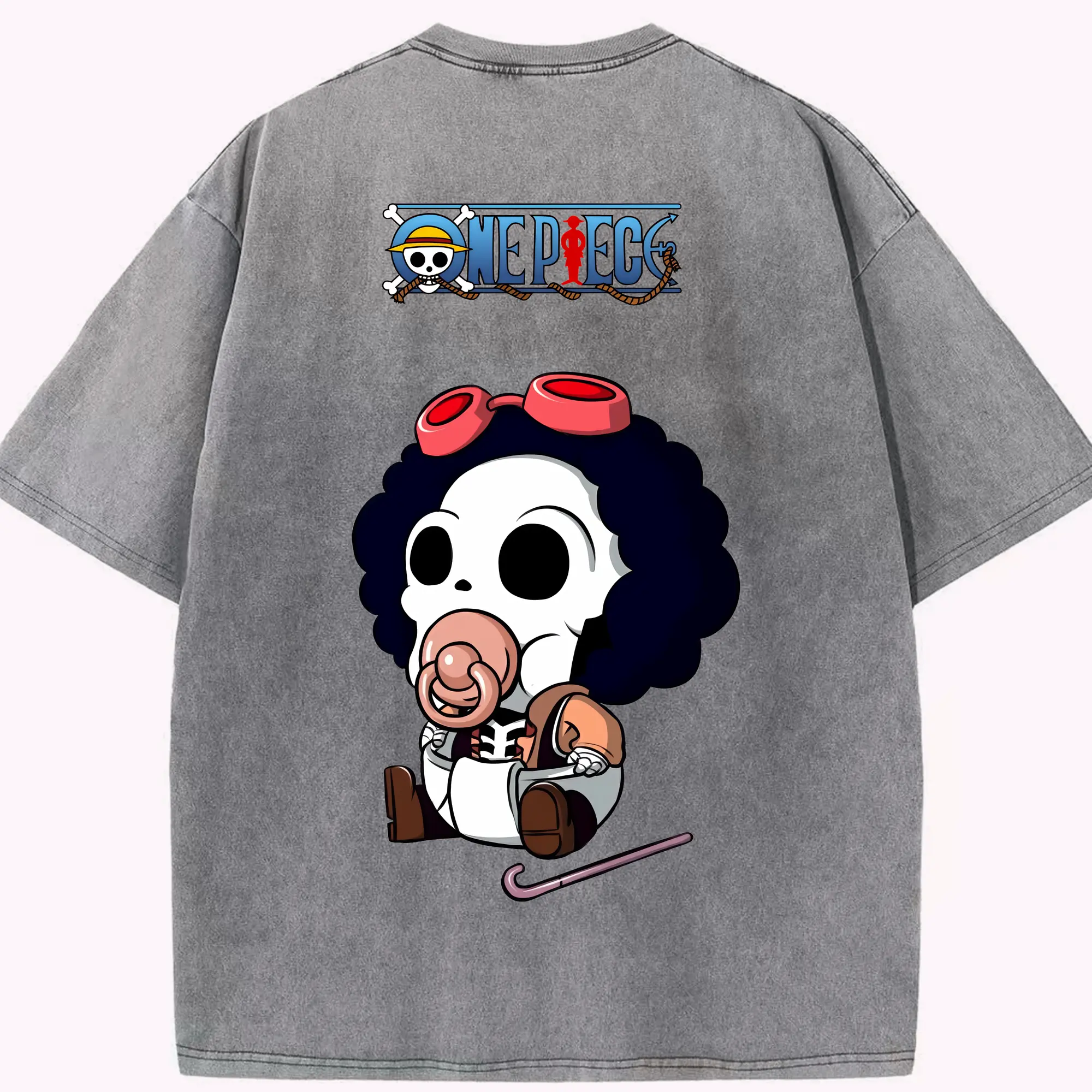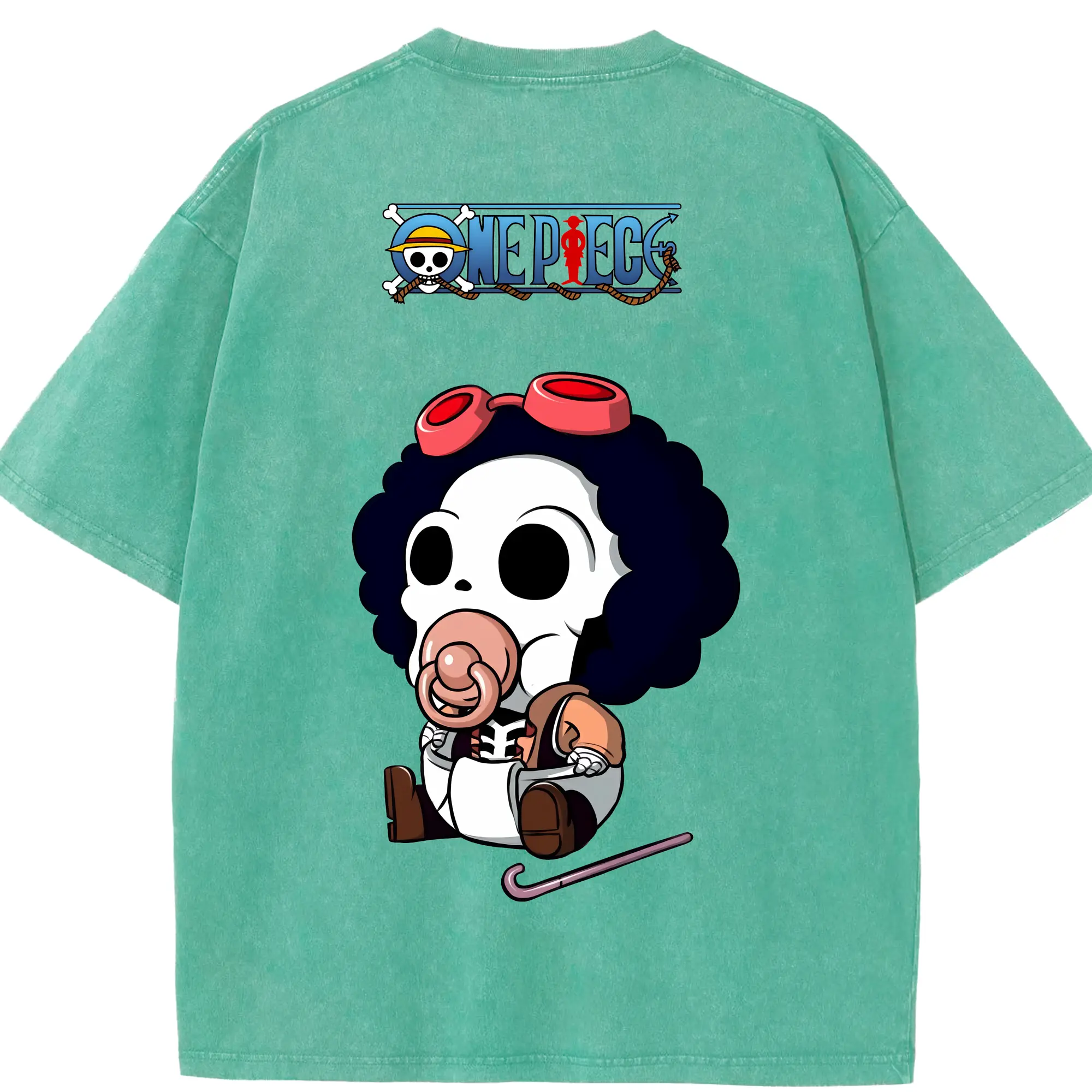 ワンピース グッズ ブルック - 綿100% ヴィンテージ風 半袖Tシャツ ・ フロントプリント ・ 柔らか肌触り ・ 通気性 快適 ・ スポーツ カジュアル 外出用