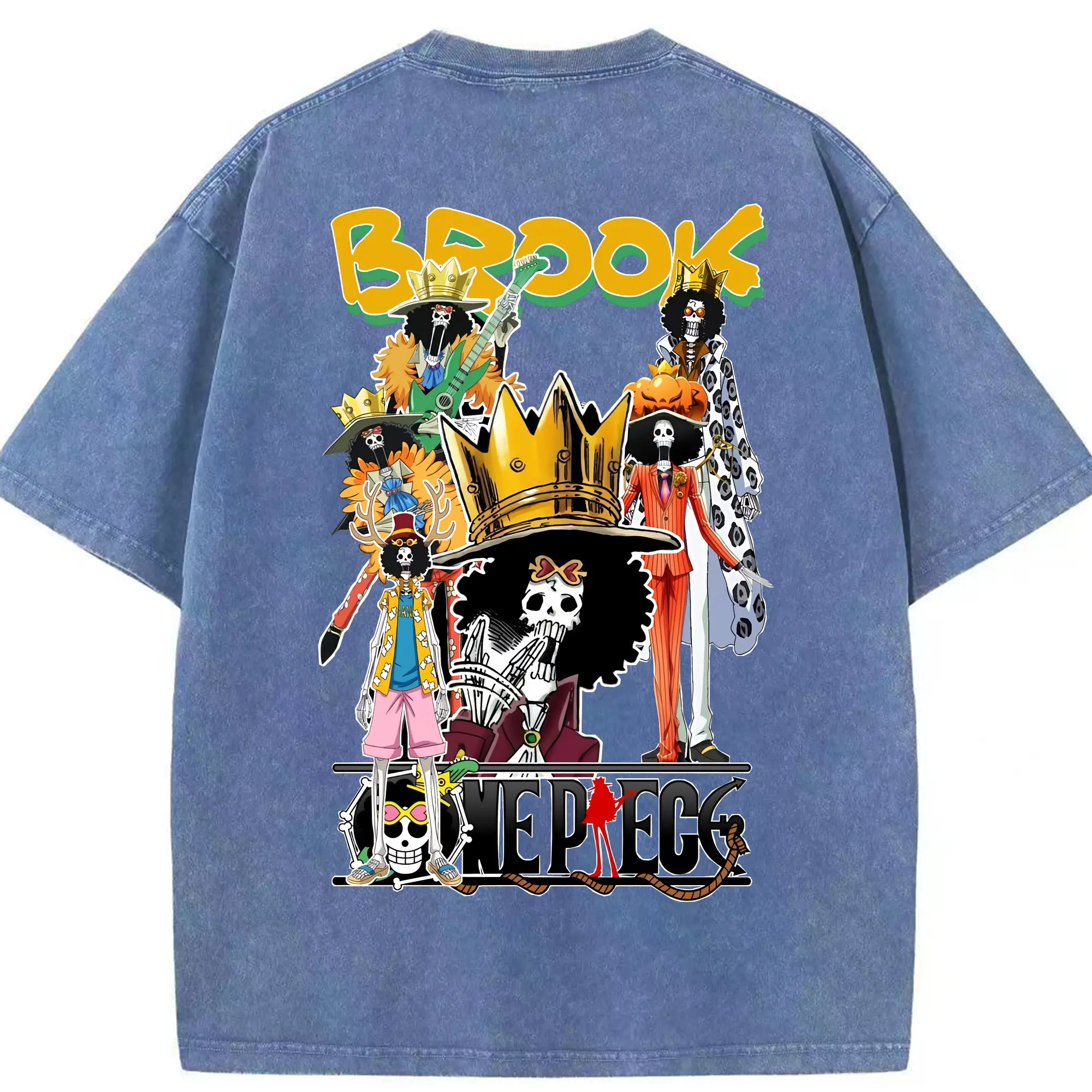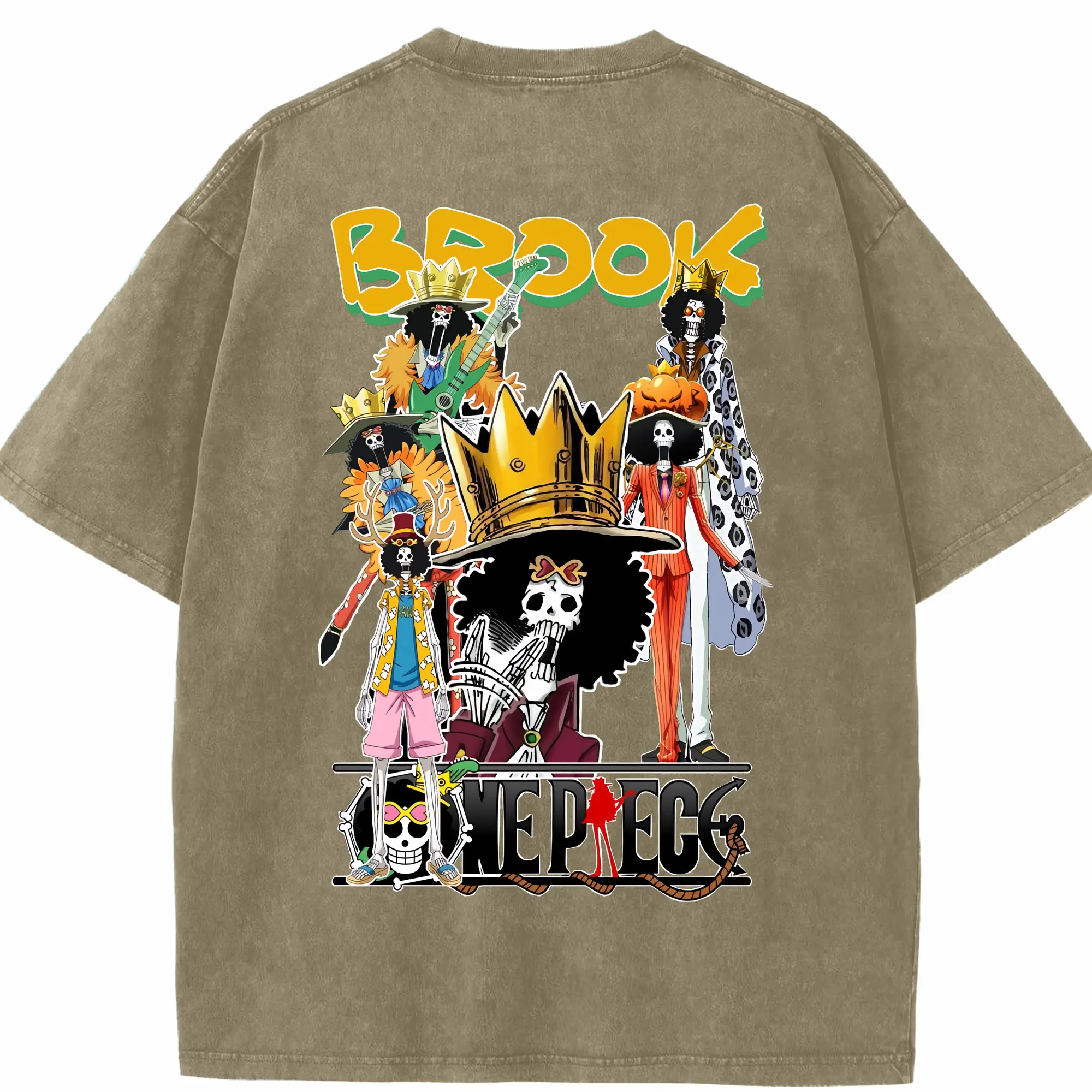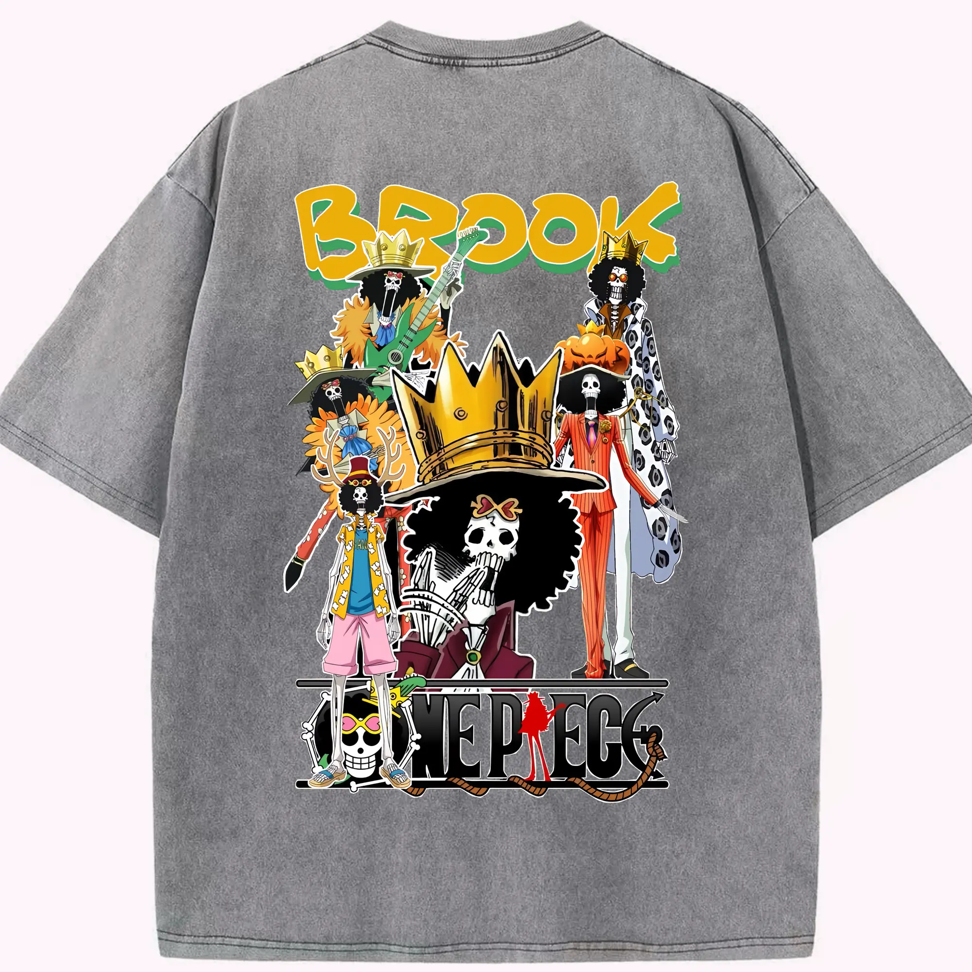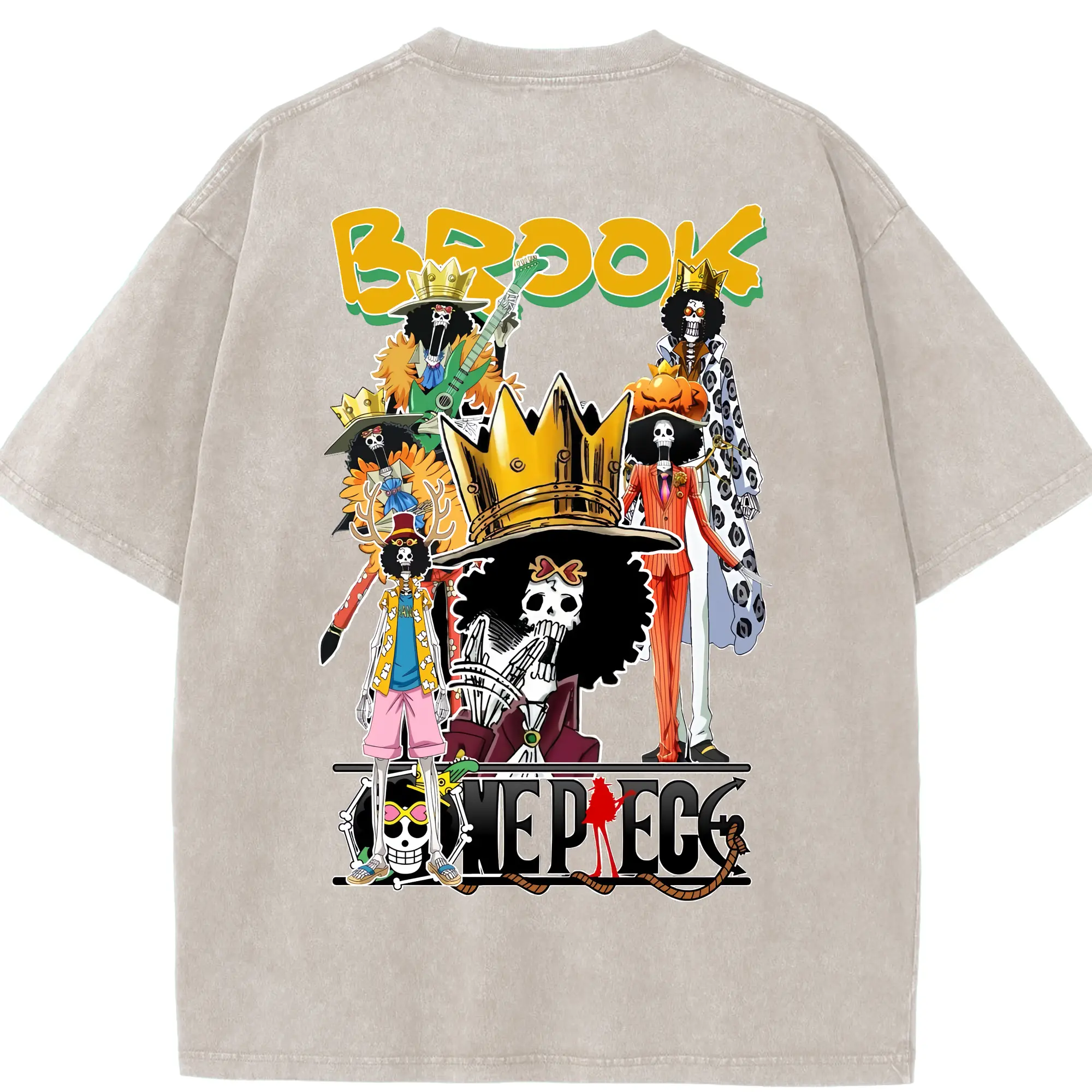 ワンピース グッズ ブルック - 綿100% ヴィンテージ風 半袖Tシャツ ・ フロントプリント ・ 柔らか肌触り ・ 通気性 快適 ・ スポーツ カジュアル 外出用