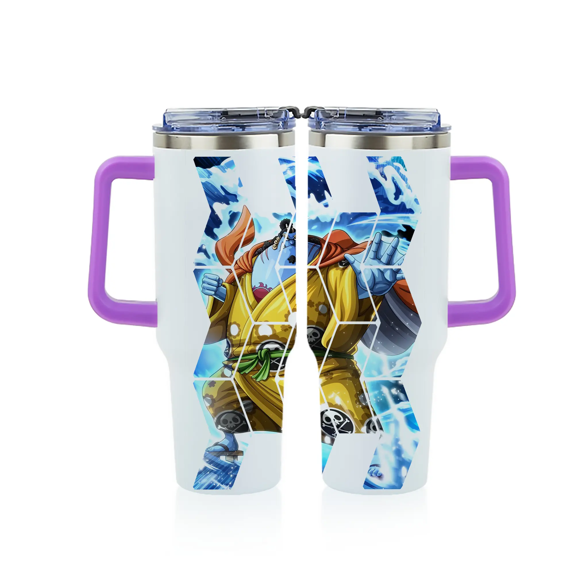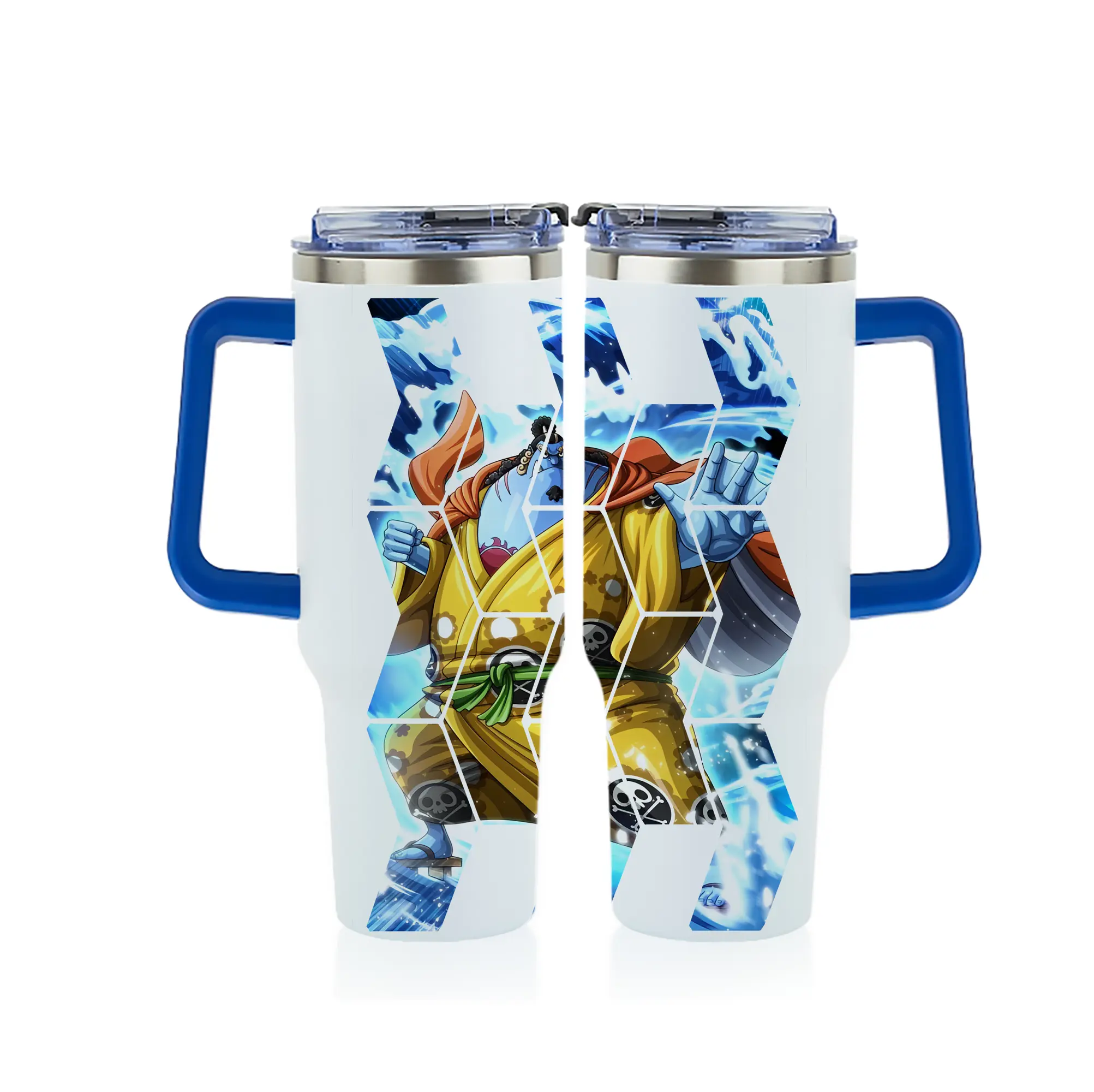 ワンピース グッズ ジンベエ - 1200mL フルプリント車用タンブラー ・ 304ステンレス 内側 ・ 201ステンレス 外側 ・ 保温 保冷 ・ 通勤 ドライブ アウトドア用