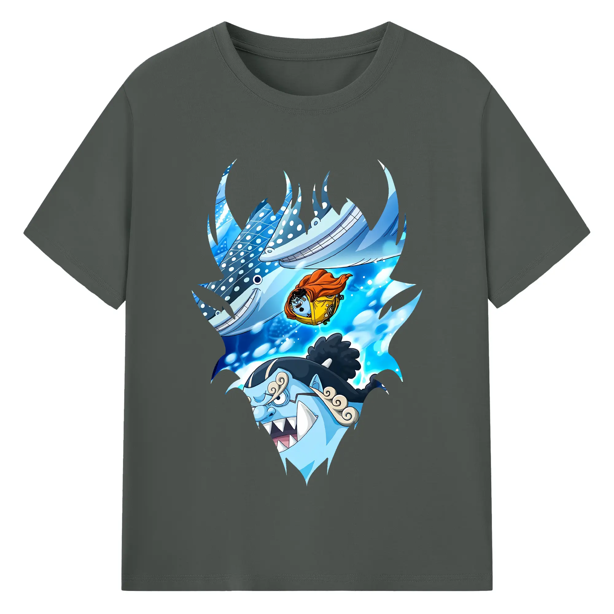 ワンピース グッズ ジンベエ - 綿100% 半袖Tシャツ ・ バックプリント ・ 快適 通気性 ・ 日常使い 散歩 スポーツ用