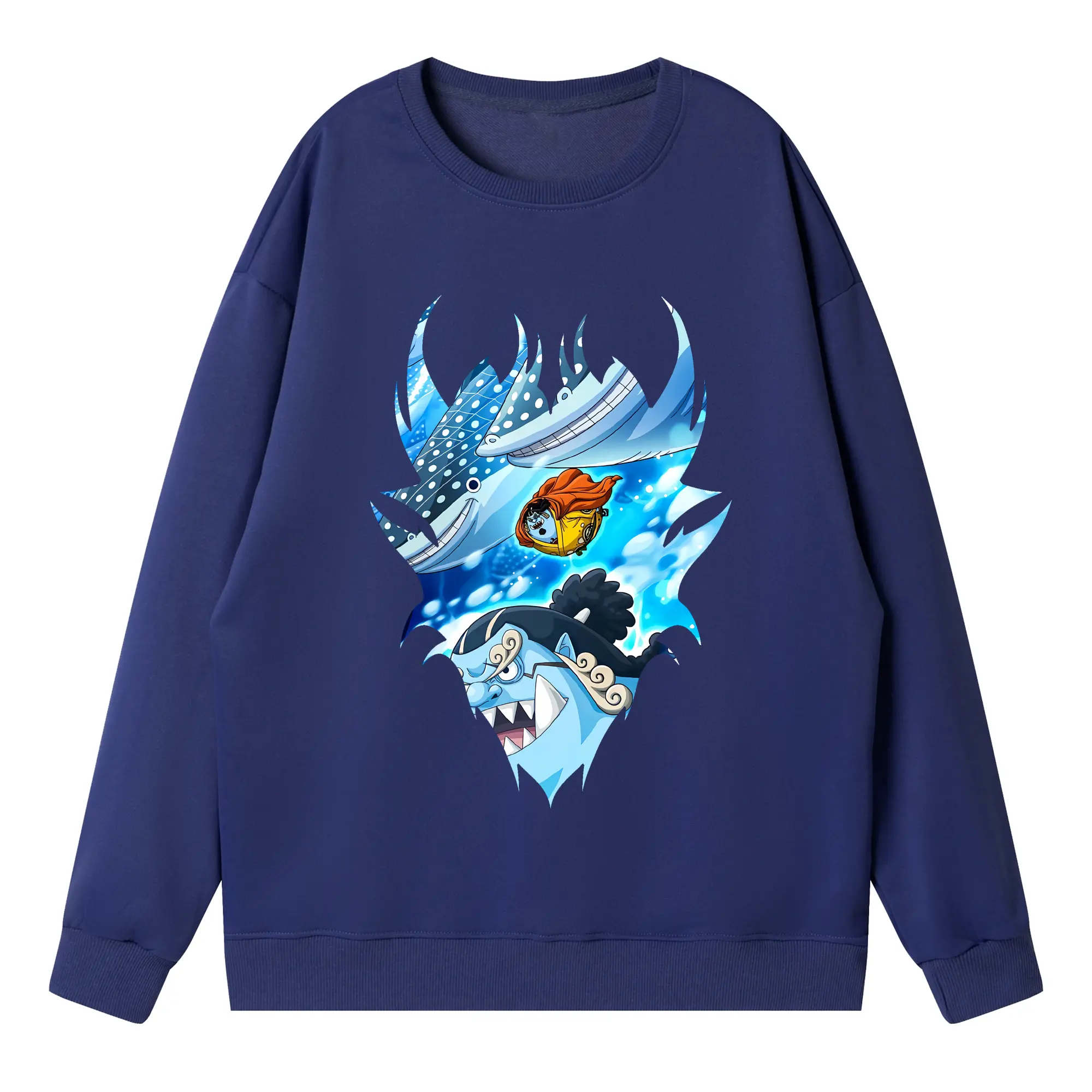 ワンピース グッズ ジンベエ - 高品質 クルーネック スウェット ・ コットン59% ポリエステル41% ・ ユニセックス 長袖 トレーナー ・ カジュアル デイリー スポーツ 散歩用