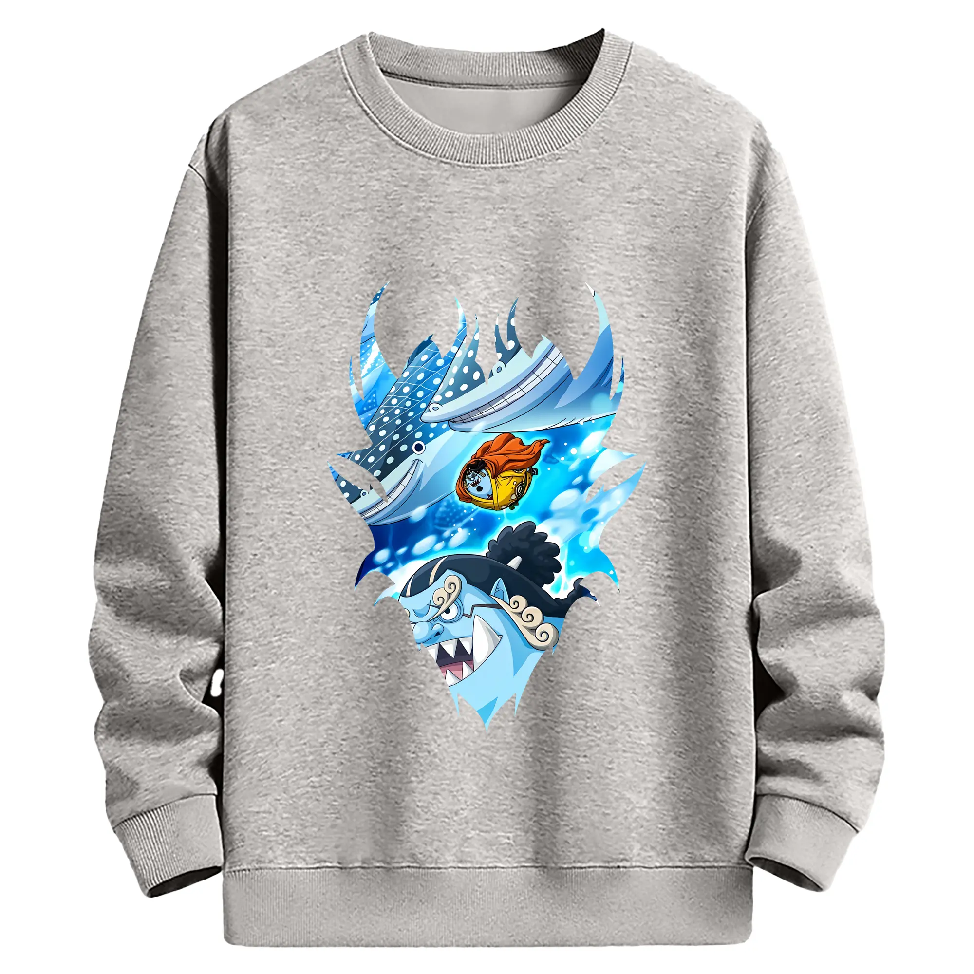 ワンピース グッズ ジンベエ - 高品質 クルーネック スウェット ・ コットン59% ポリエステル41% ・ ユニセックス 長袖 トレーナー ・ カジュアル デイリー スポーツ 散歩用