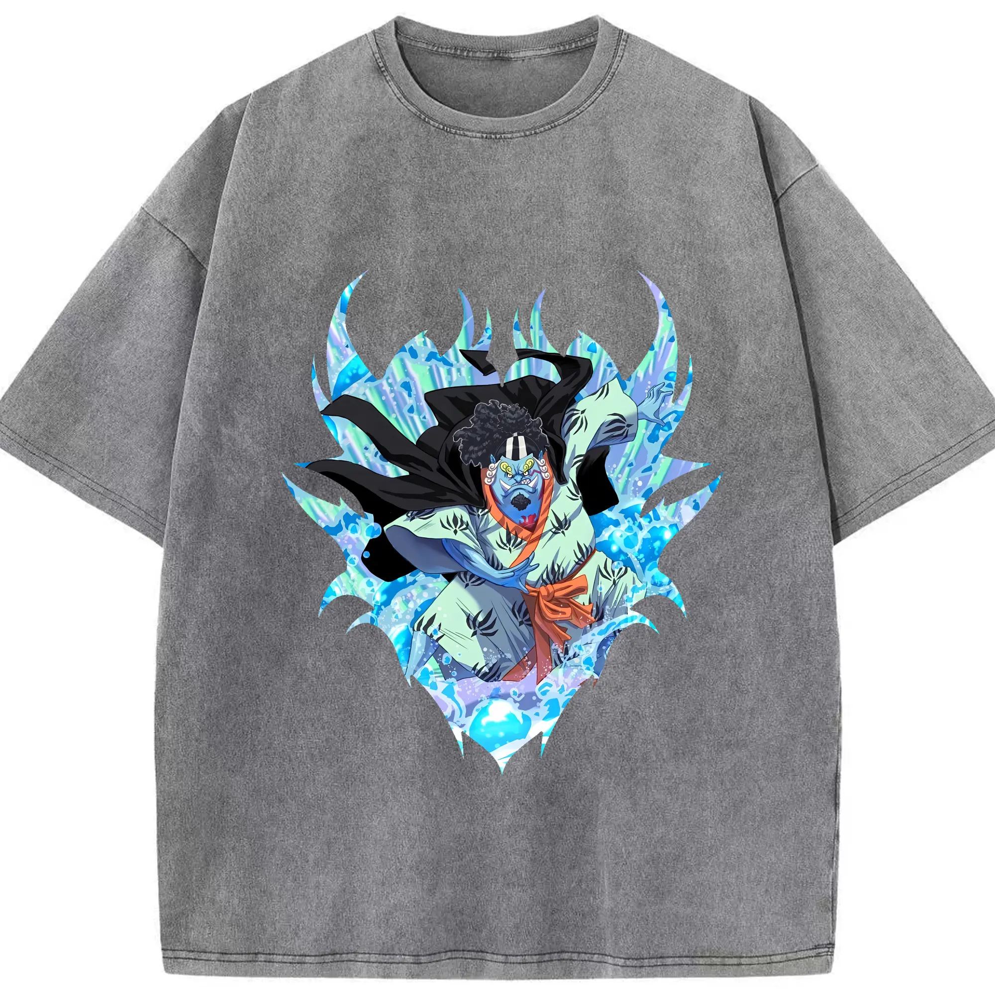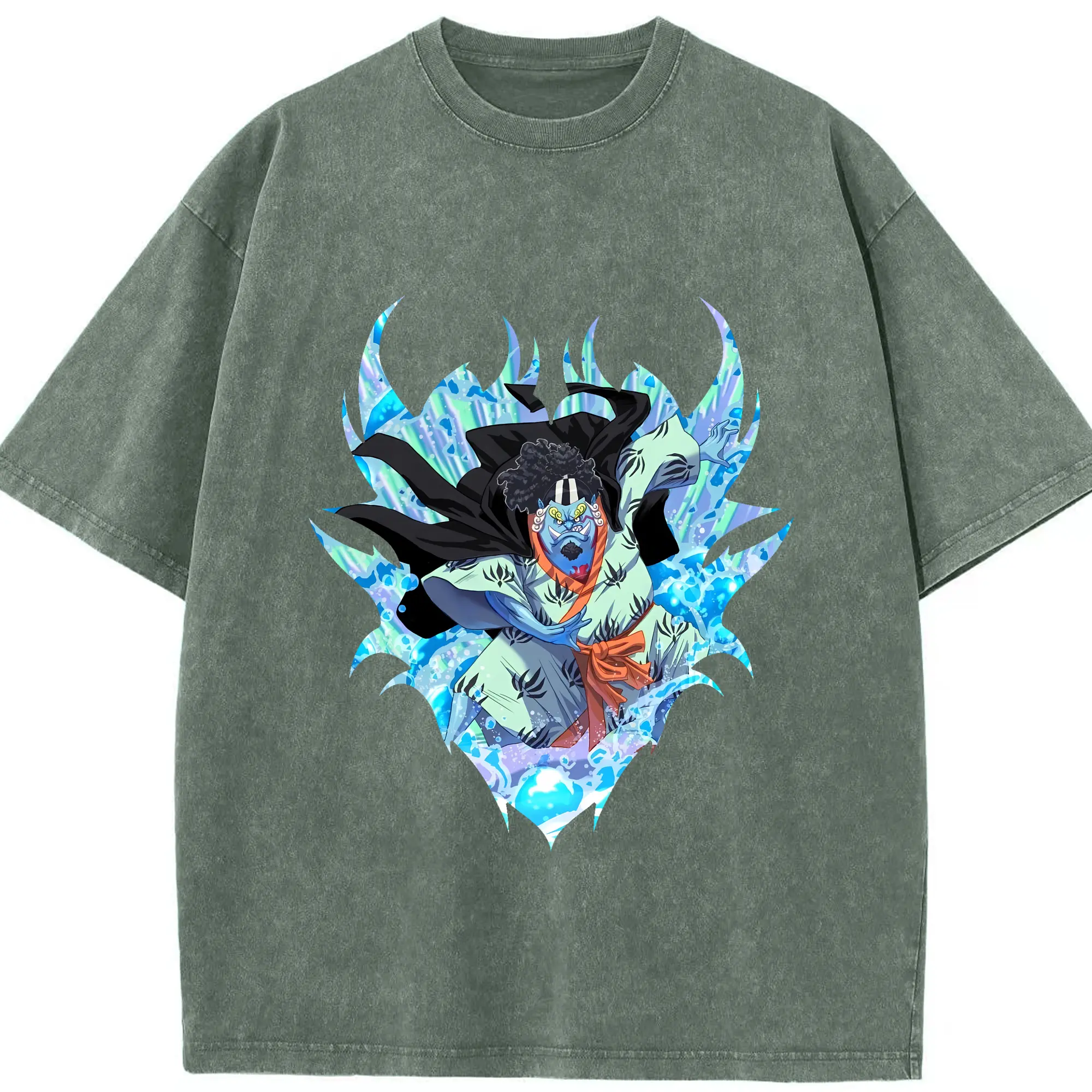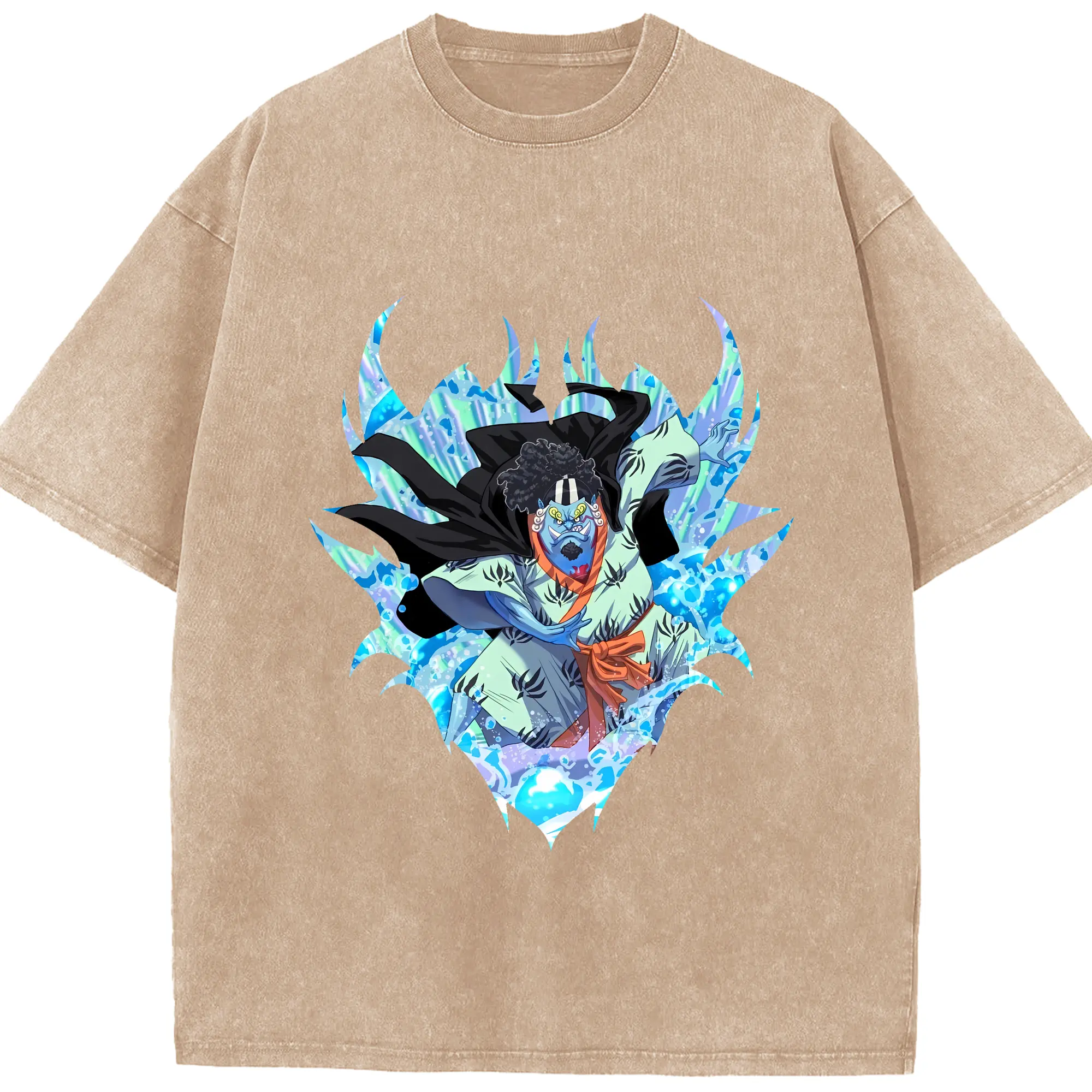 ワンピース グッズ ジンベエ - 綿100% ヴィンテージ風 半袖Tシャツ ・ 背面プリント ・ 柔らか肌触り ・ 通気性 快適 ・ スポーツ カジュアル 外出用